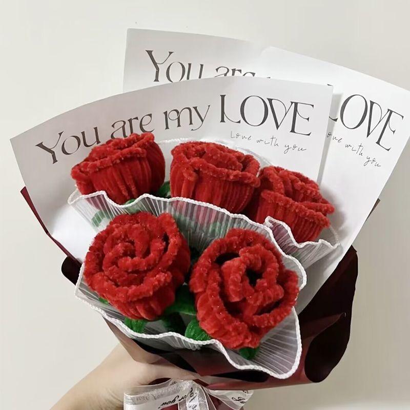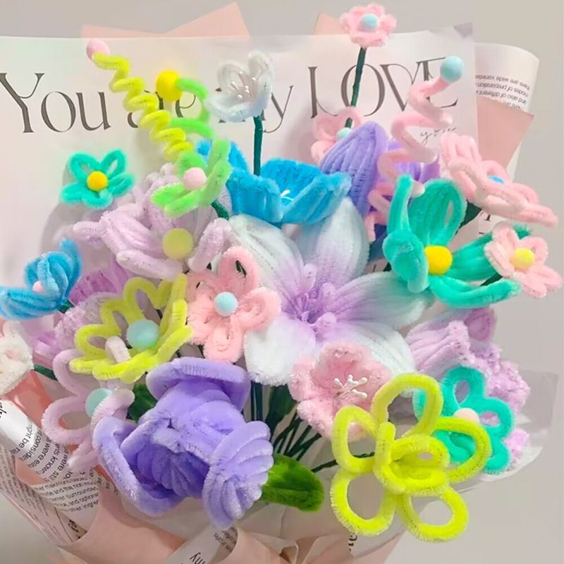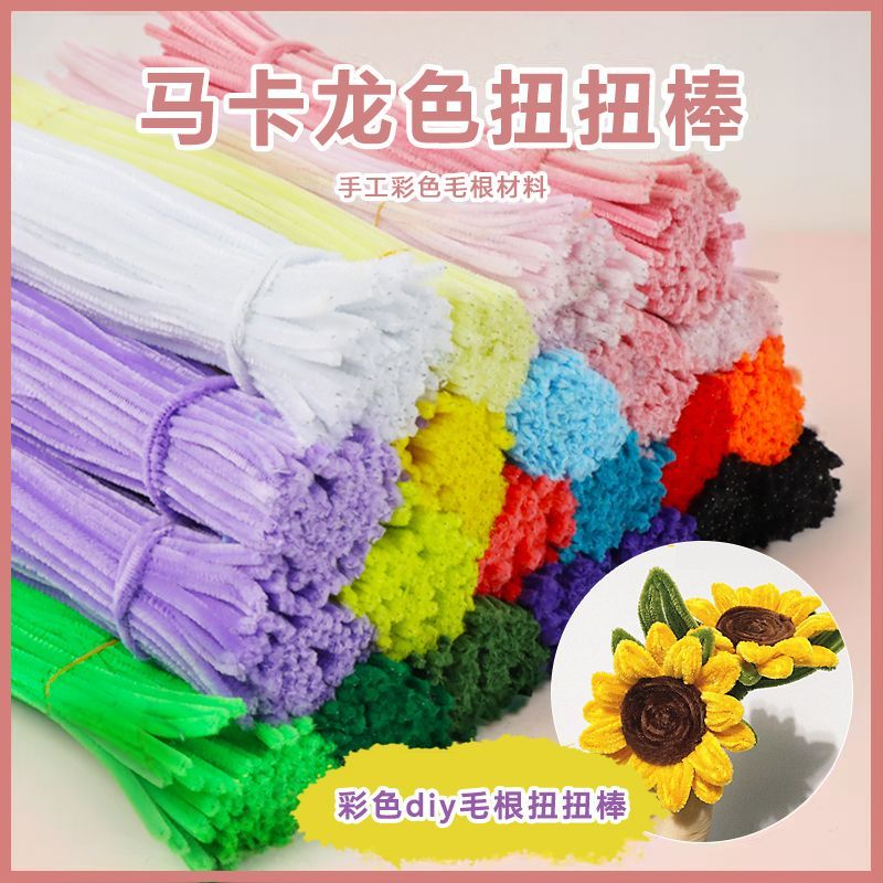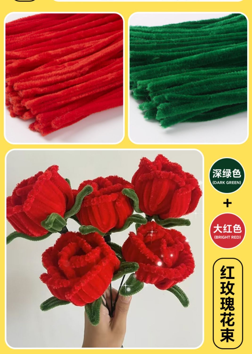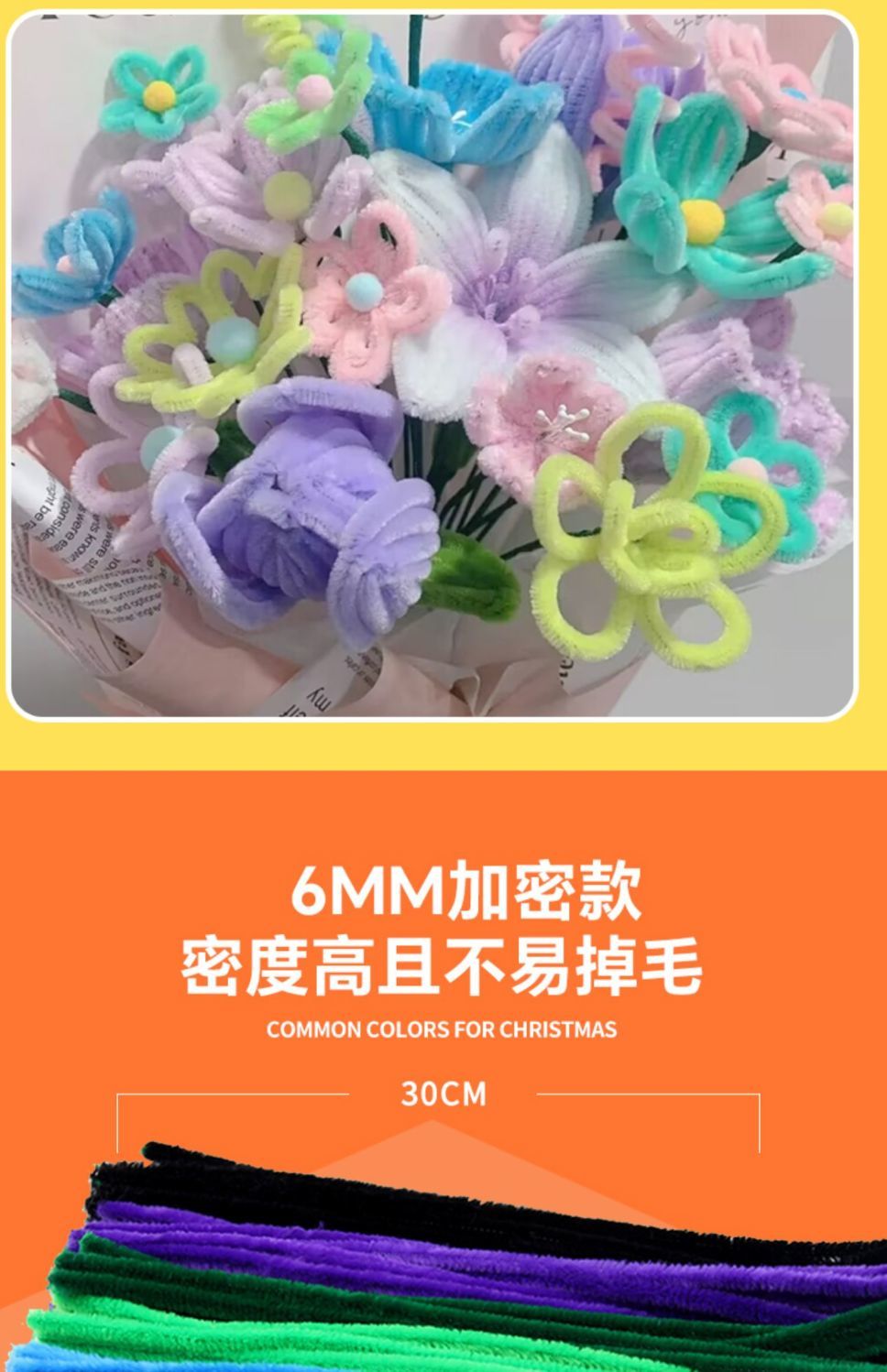 扭扭棒花束手工diy郁金香玫瑰材料包加密毛根毛条绿色超密妞妞棒