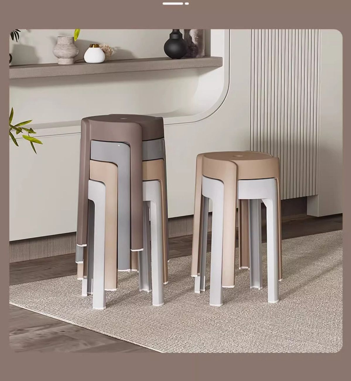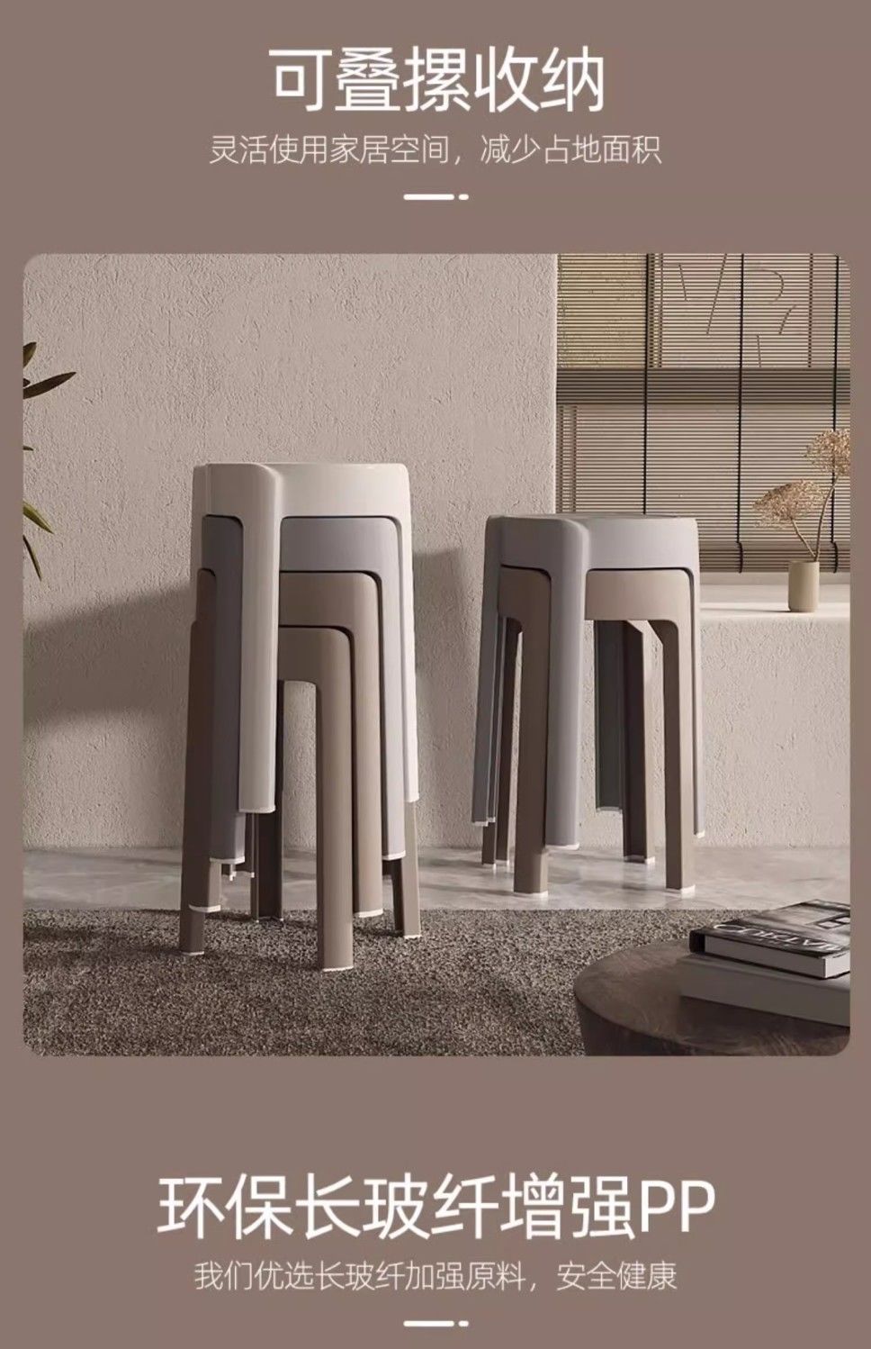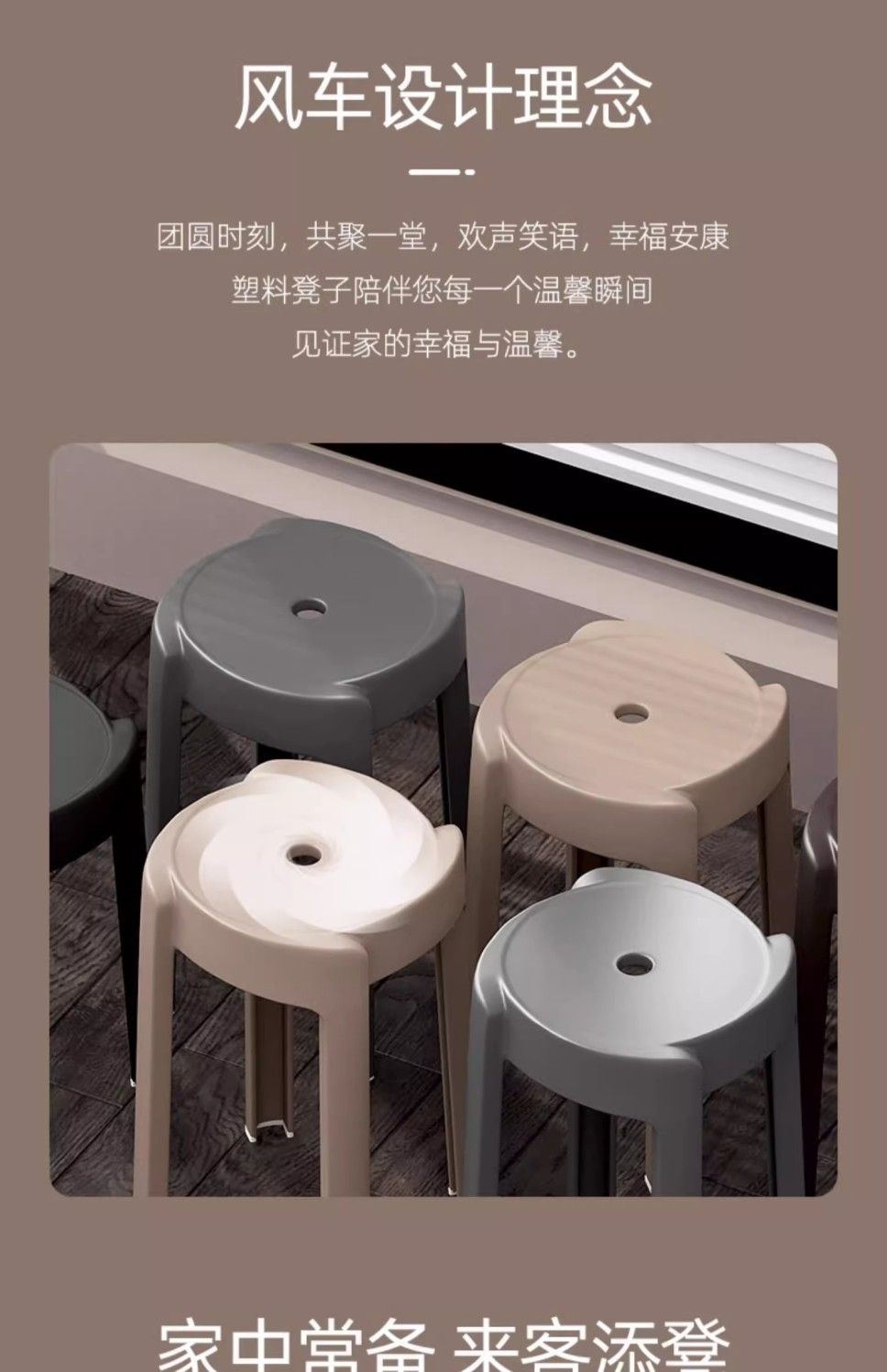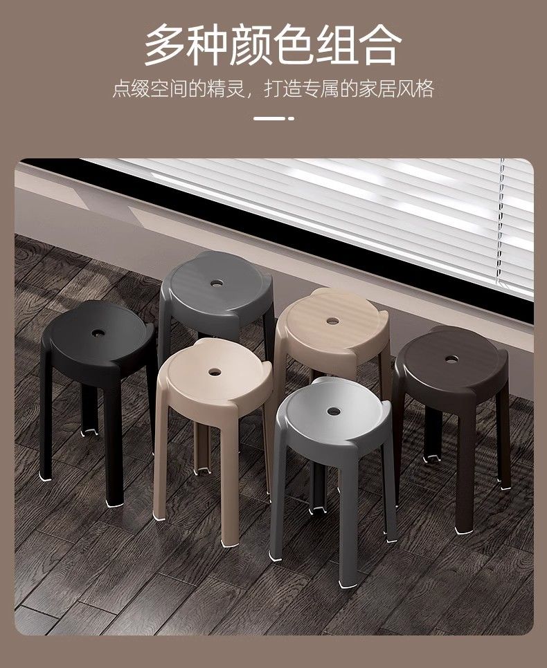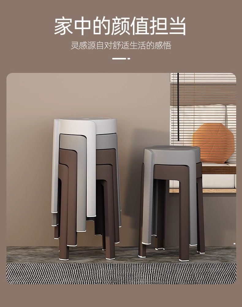 塑料凳子家用加厚圆凳北欧简约椅子客厅餐桌高凳可叠放熟胶板凳