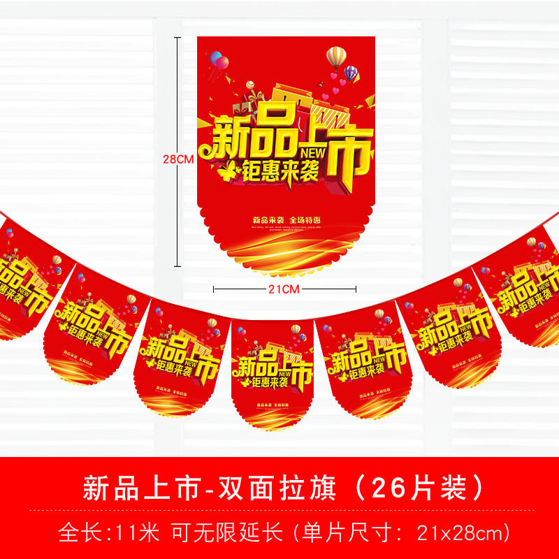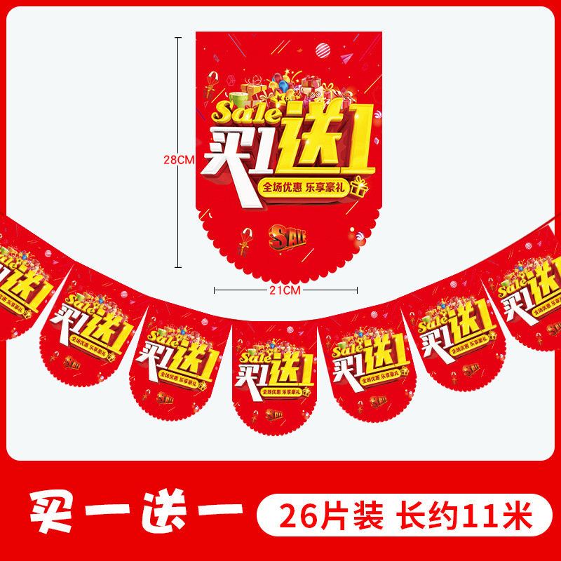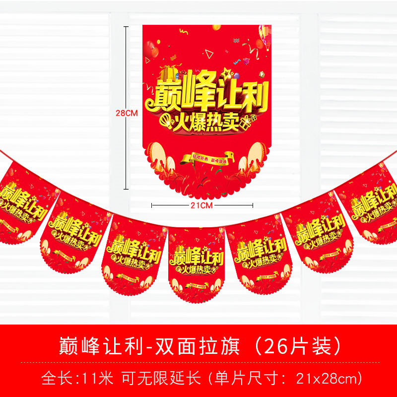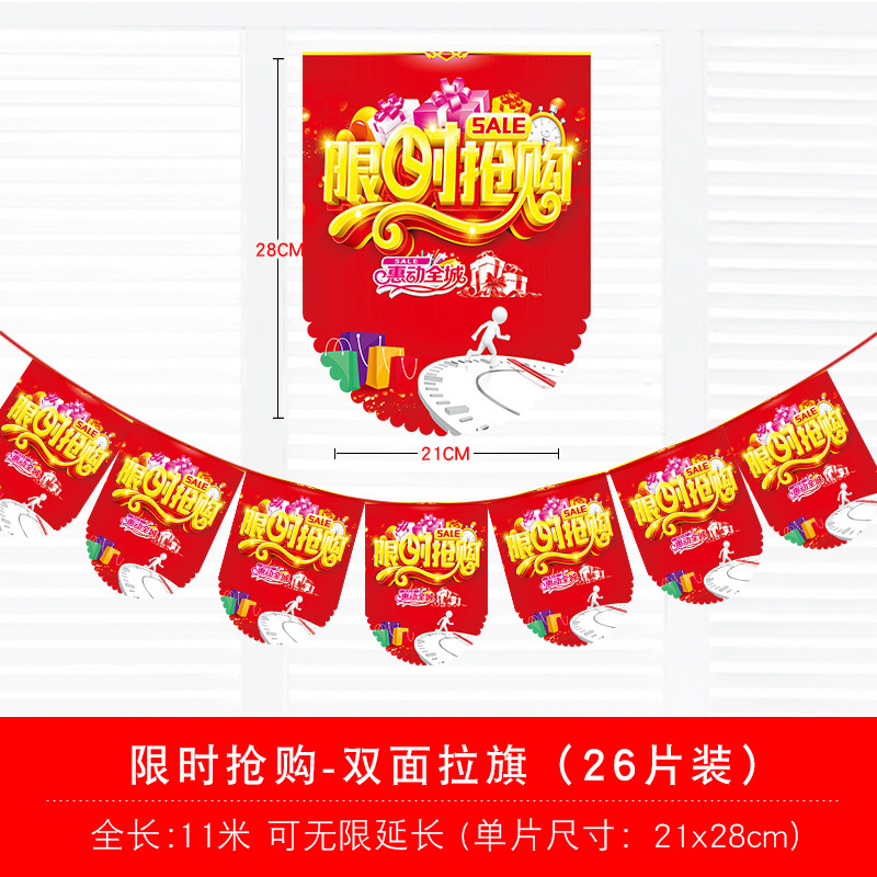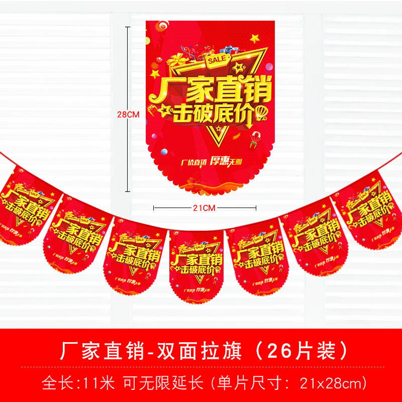 开业装饰布置吊旗店铺周年庆典节日拉旗服装店超市活动氛围挂旗