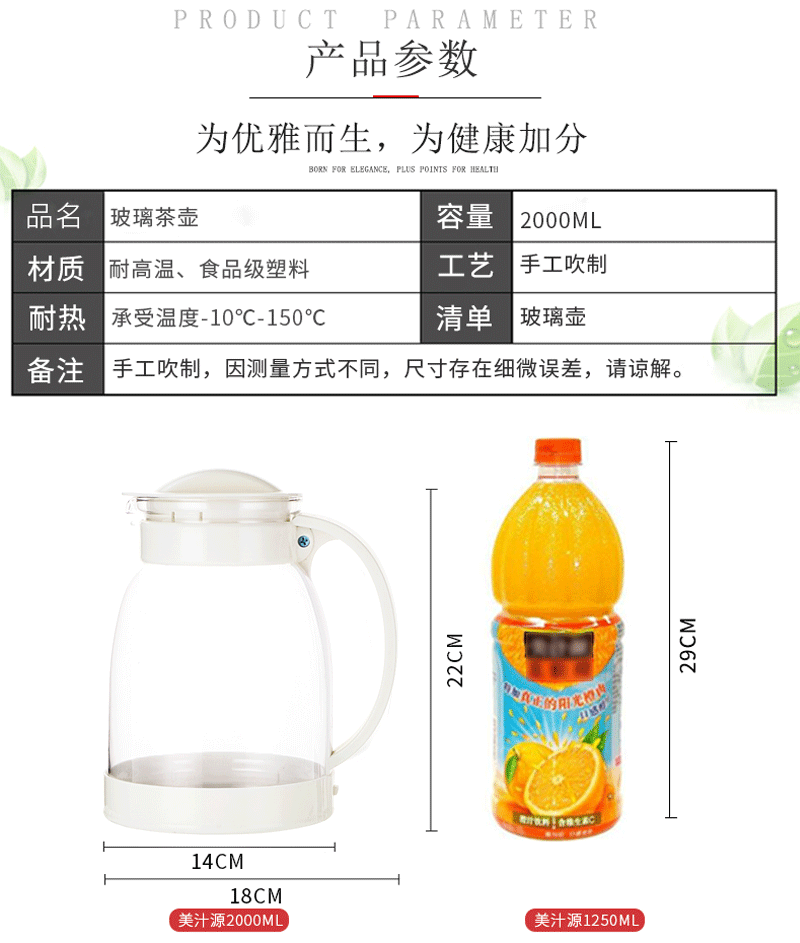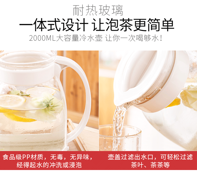 耐热凉水壶玻璃冷水壶玻璃防爆果汁杯子家用办公泡茶壶套装凉白开