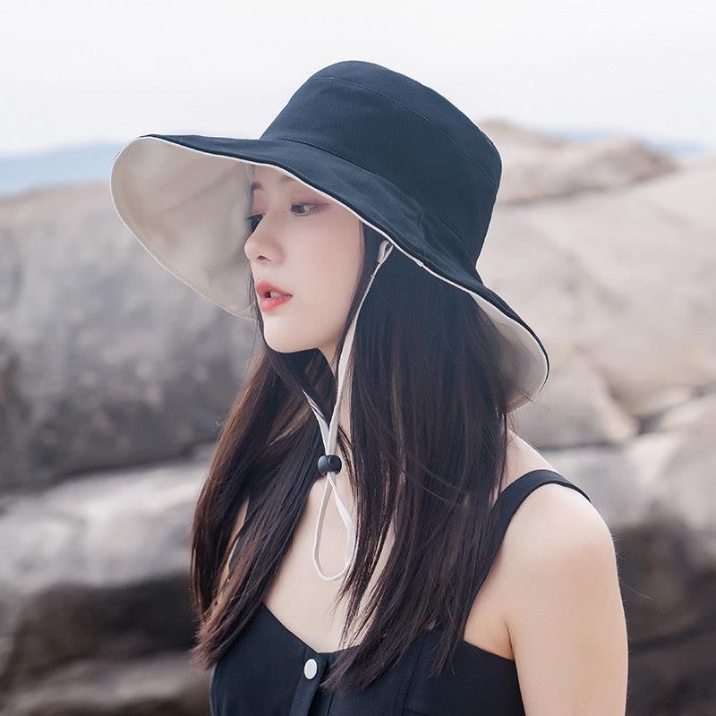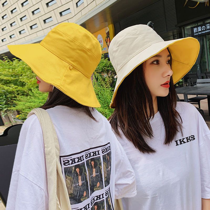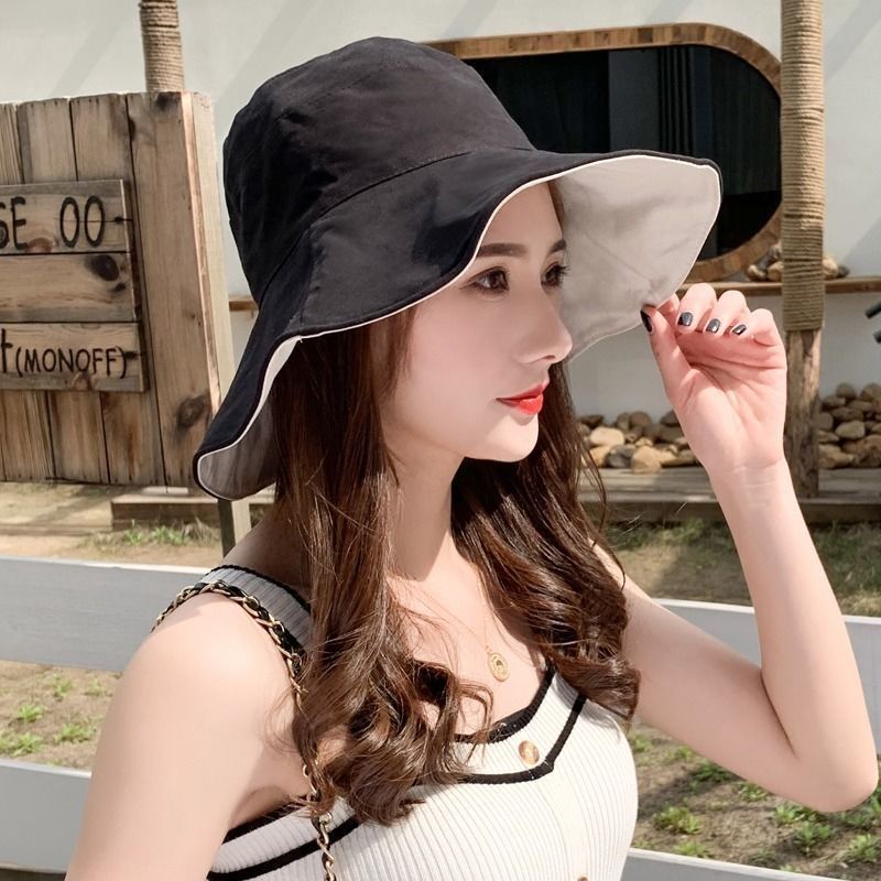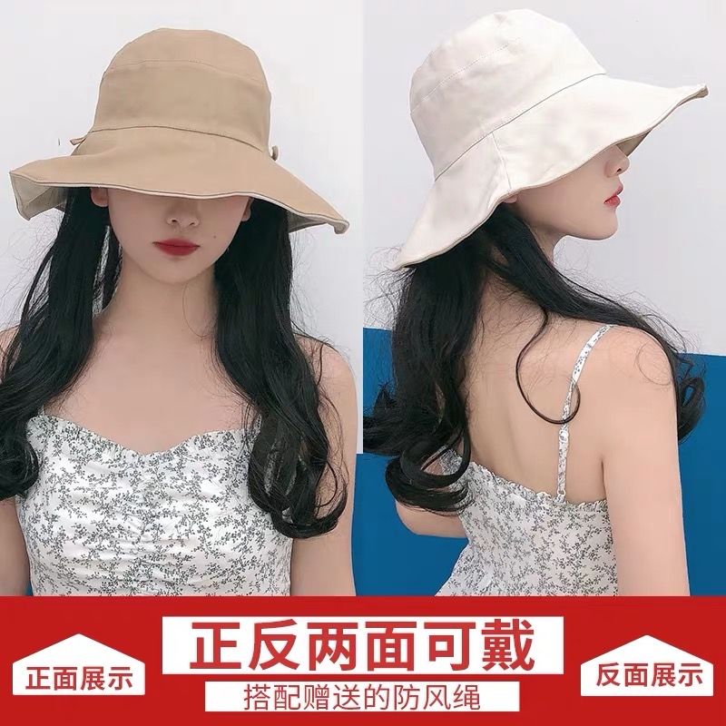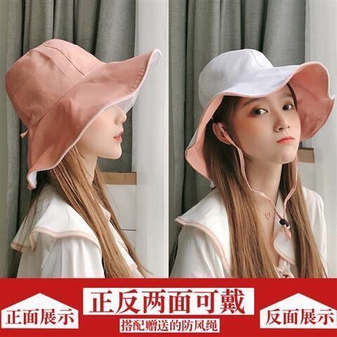 双面渔夫帽子女春夏季日系大帽檐遮阳帽休闲防紫外线防晒太阳帽