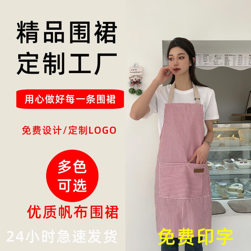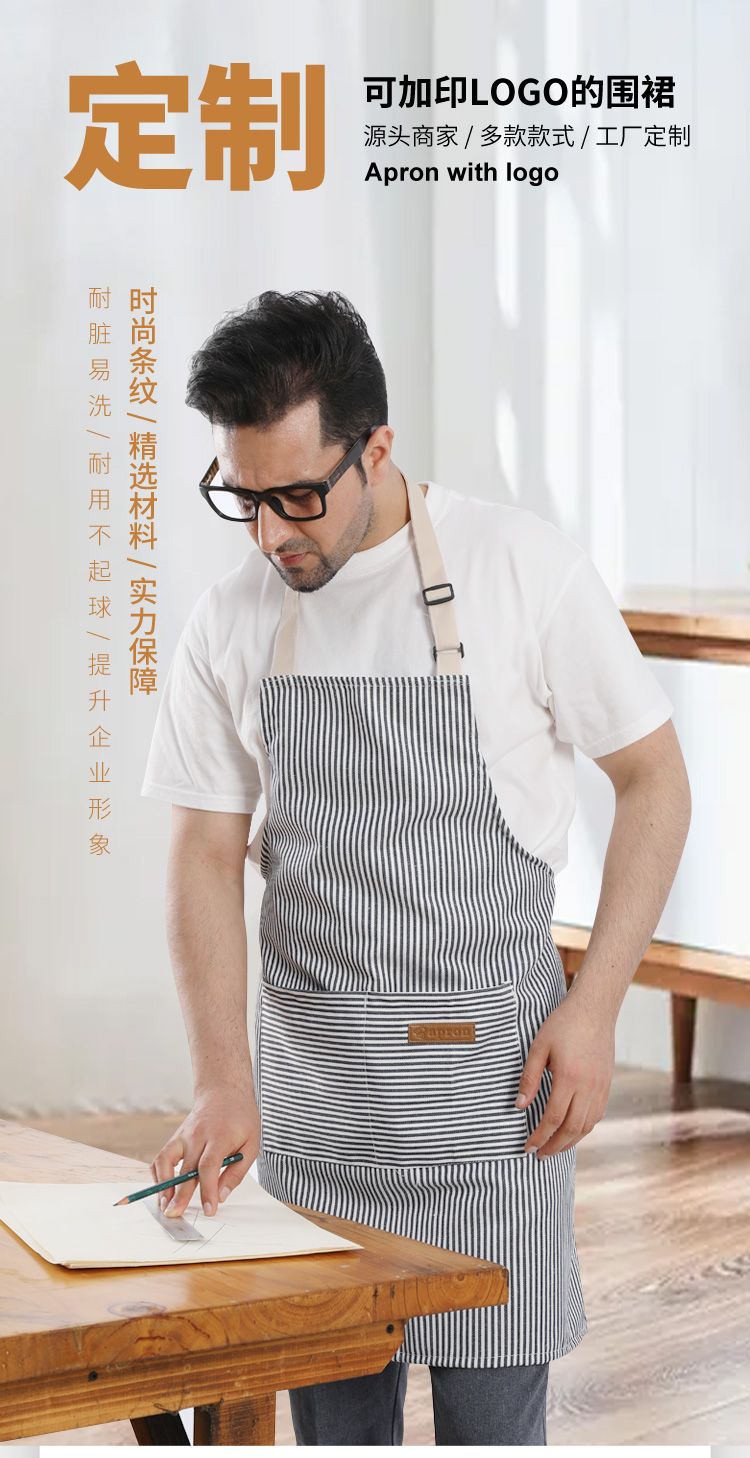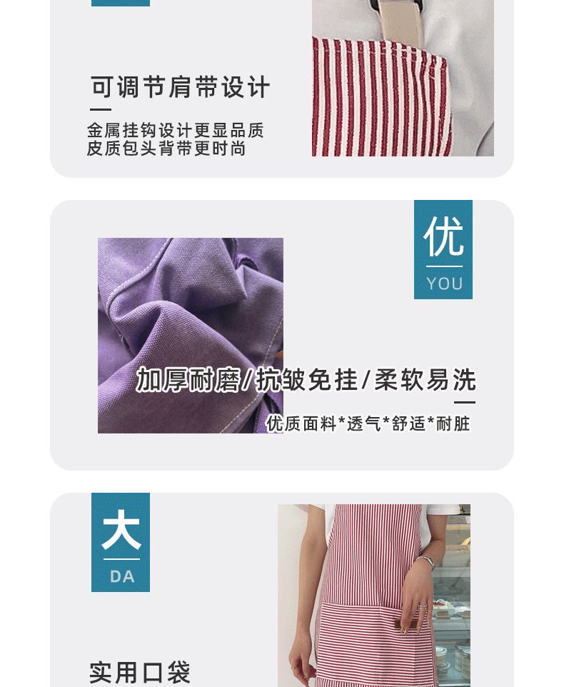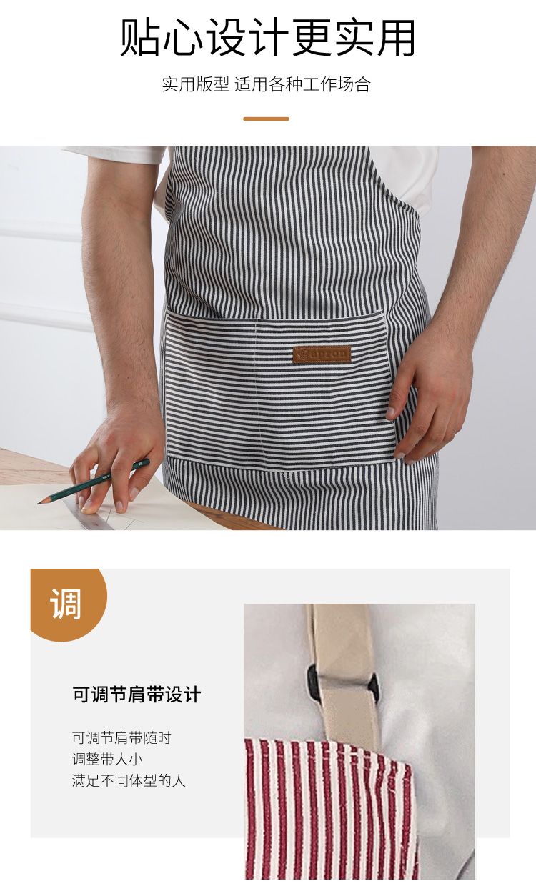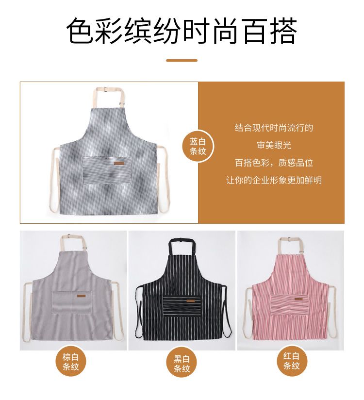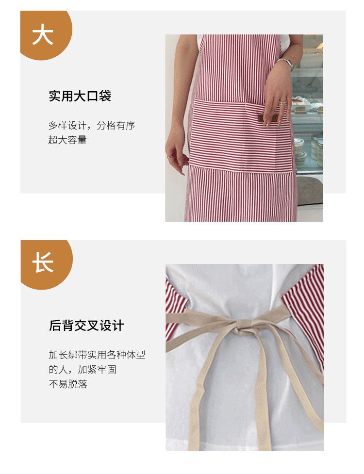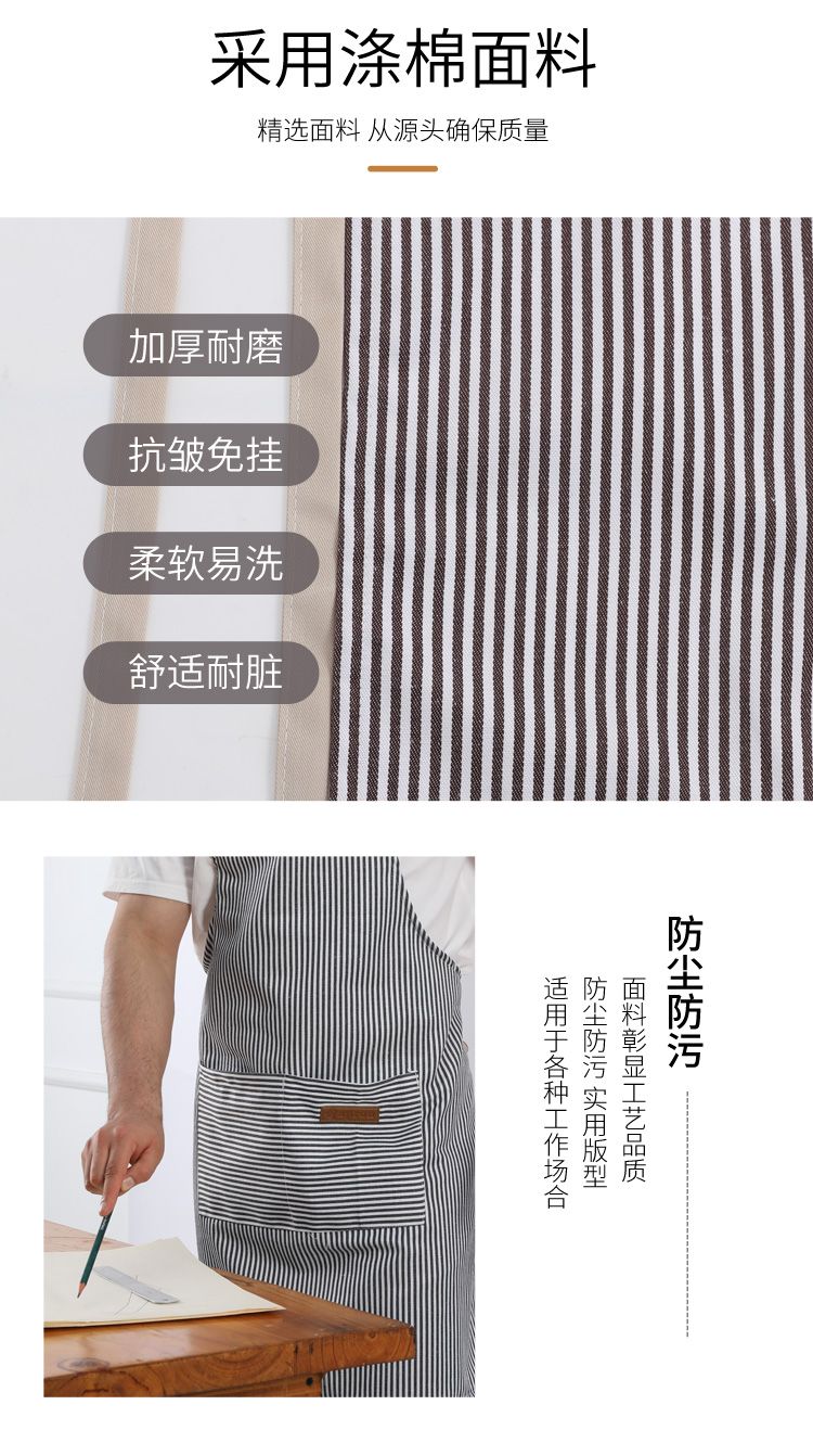 条纹棉麻围裙花艺奶茶店厨房家用做饭成人工作棉布围裙新款时尚