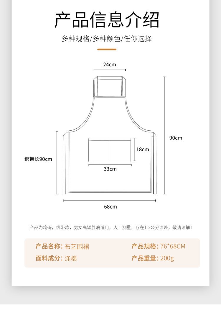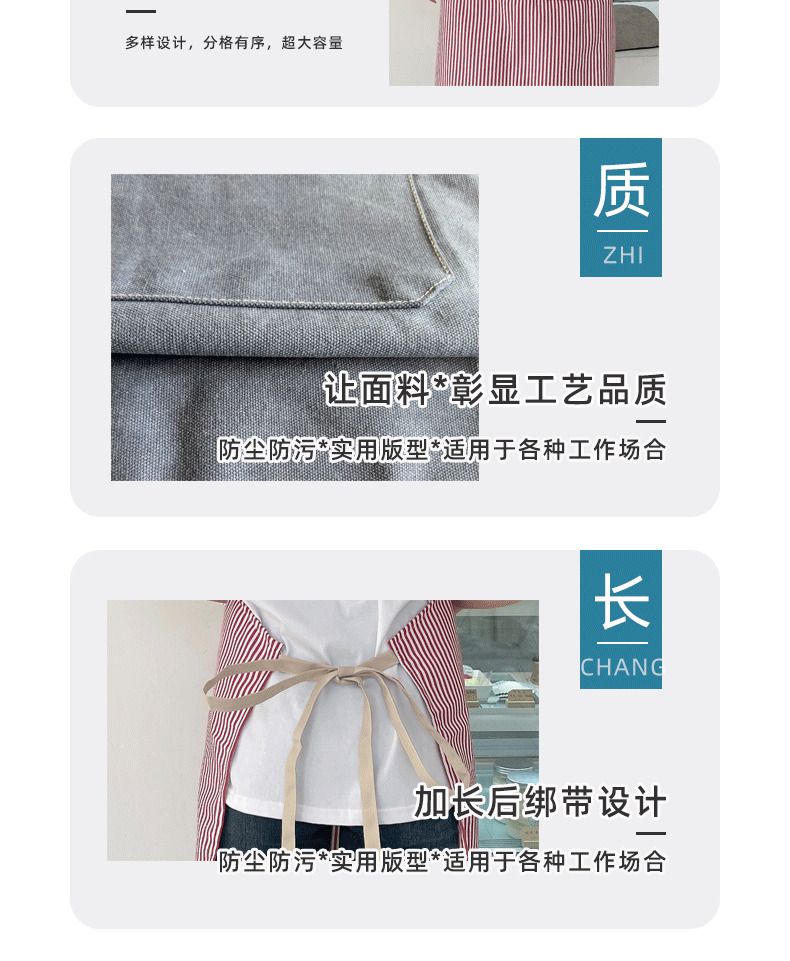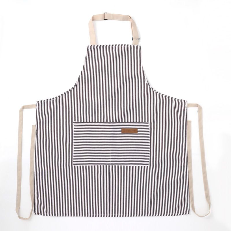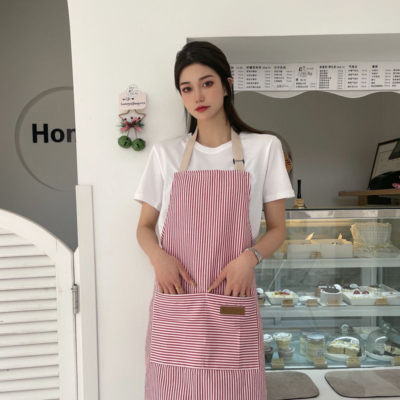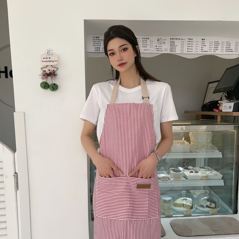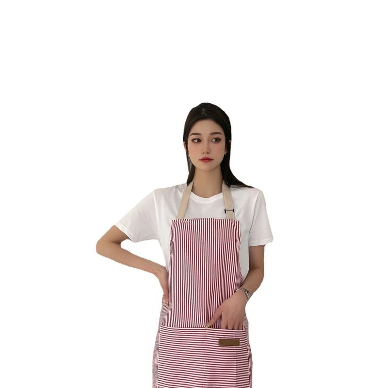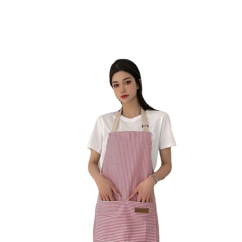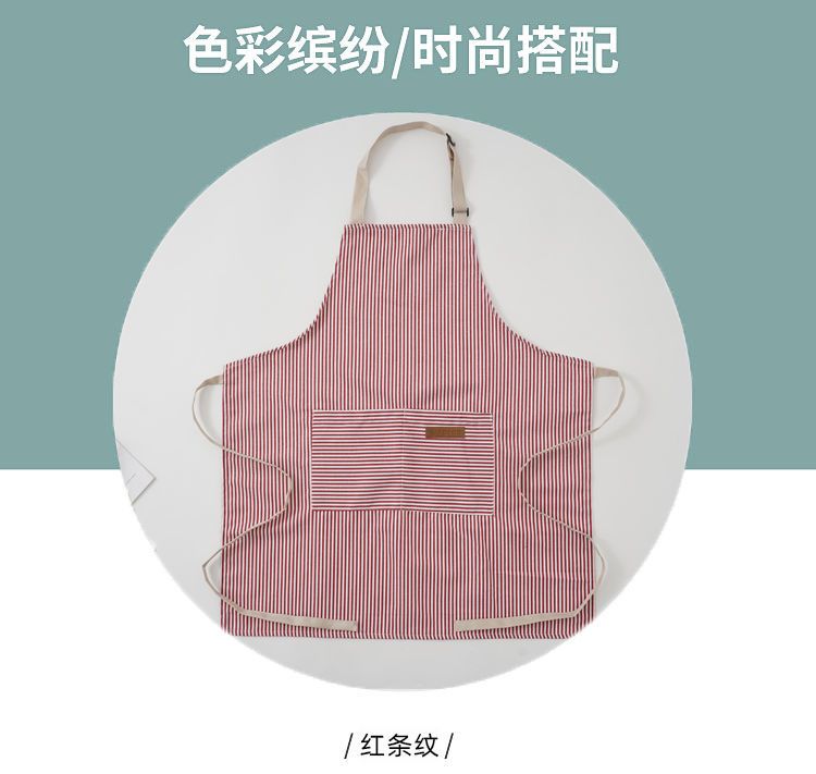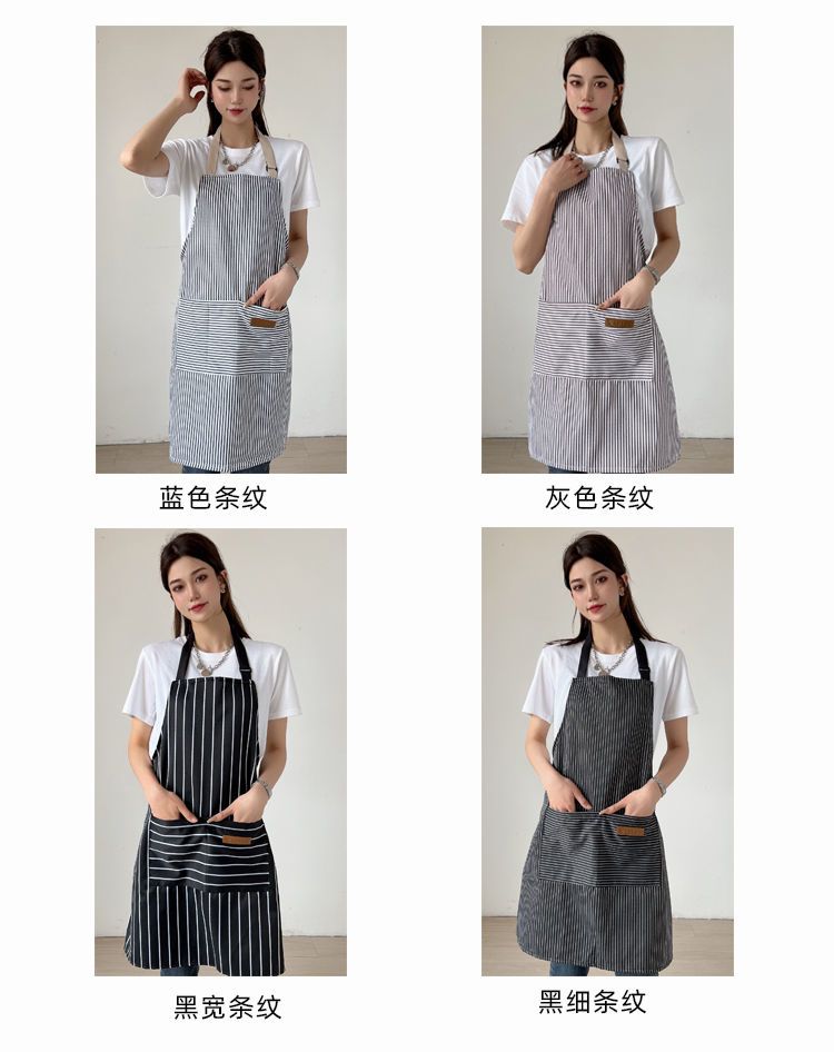 条纹棉麻围裙花艺奶茶店厨房家用做饭成人工作棉布围裙新款时尚