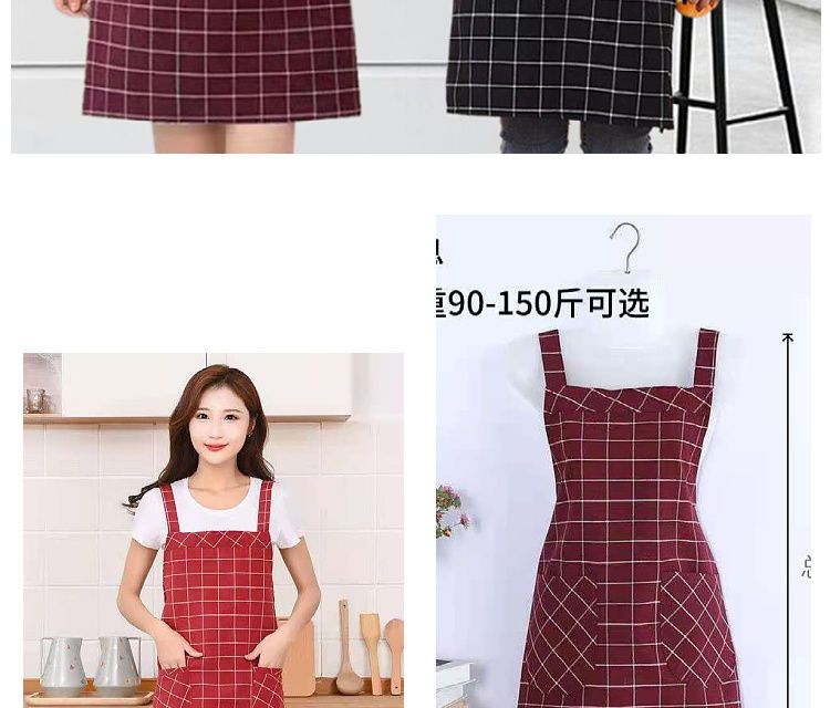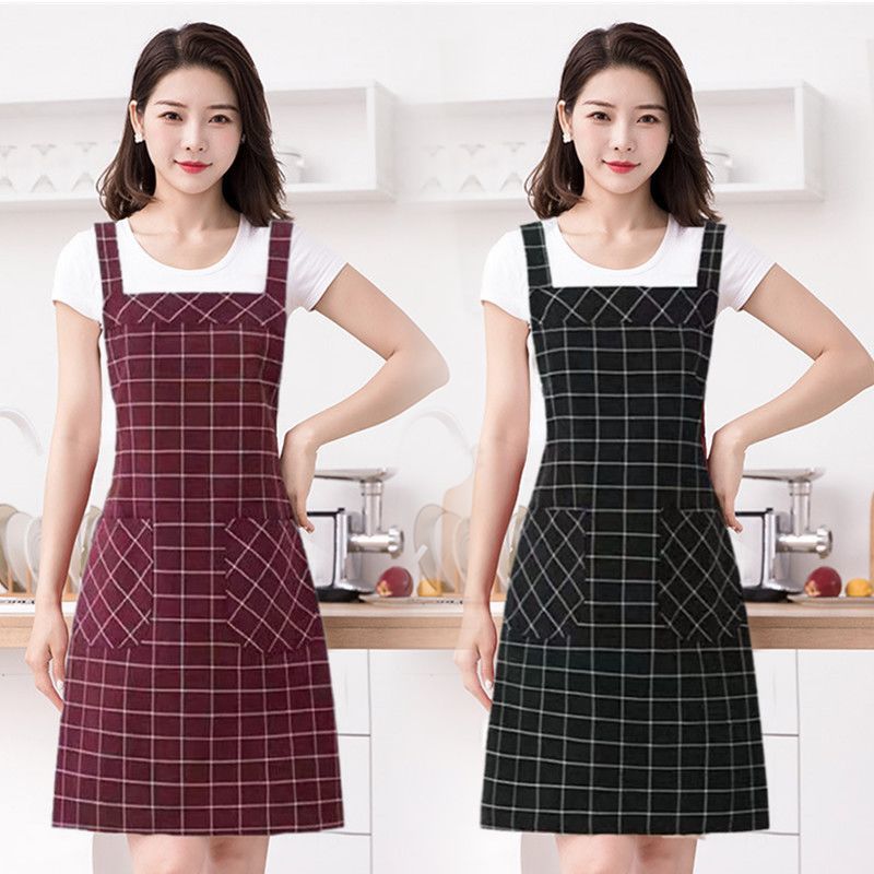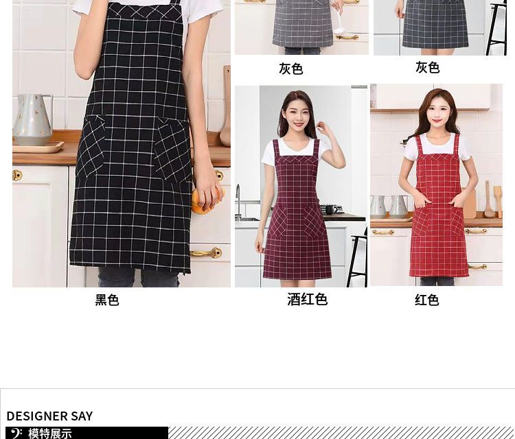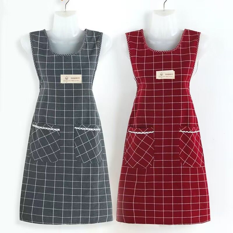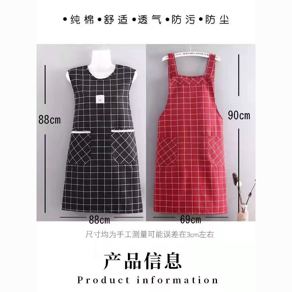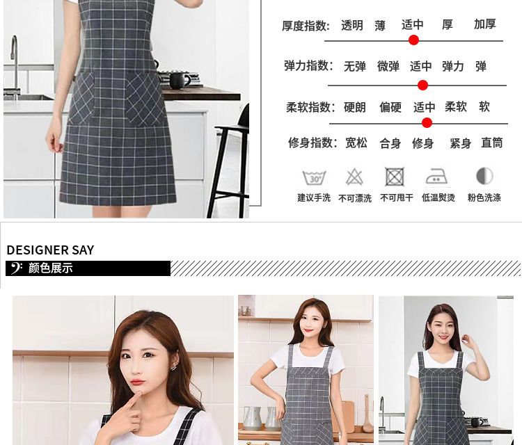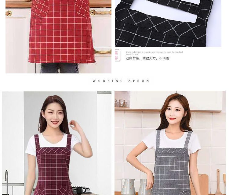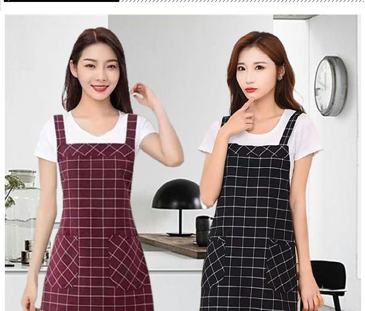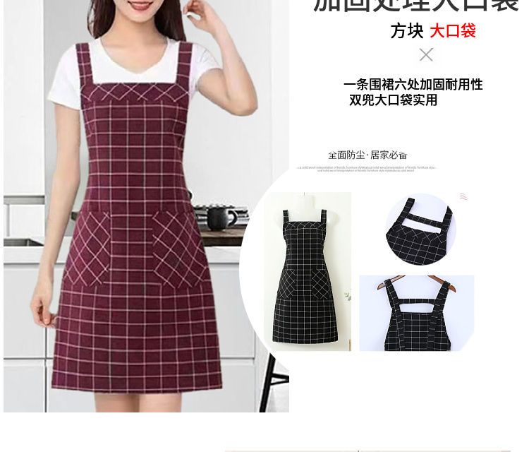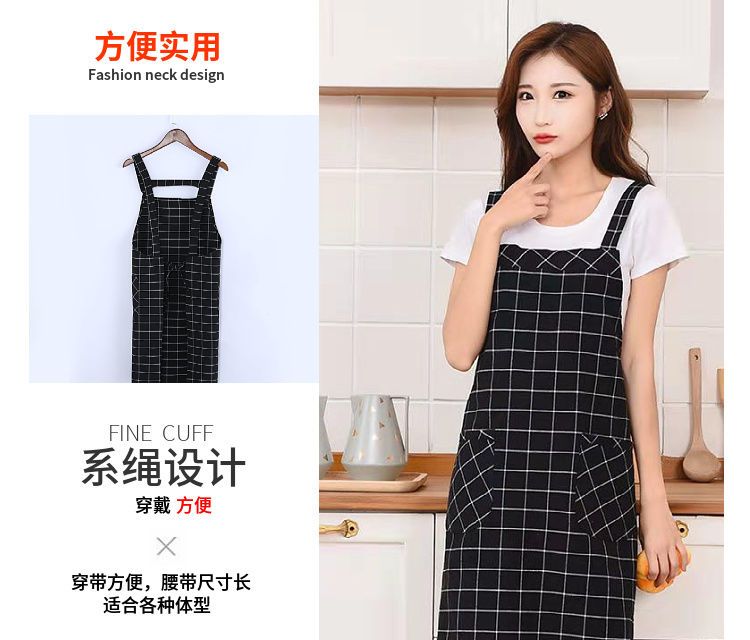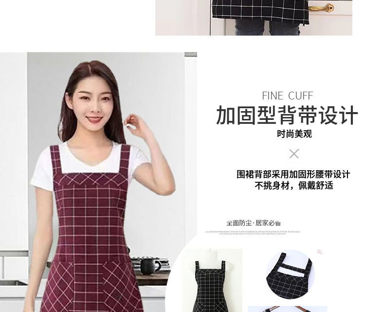 棉麻洋气围裙背带家用女上班工作服围腰罩衣厨房做饭防油格子无袖