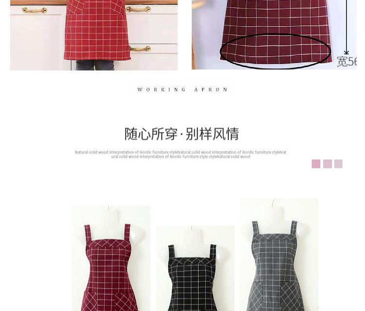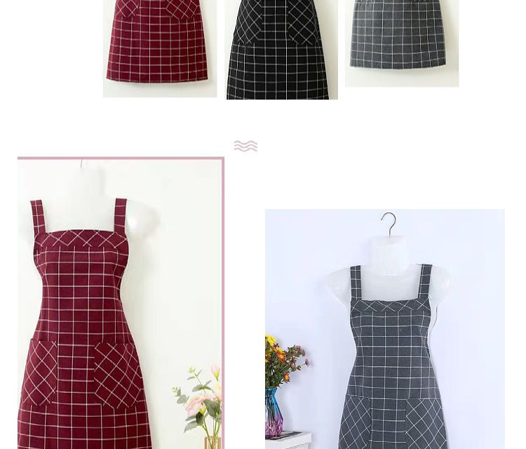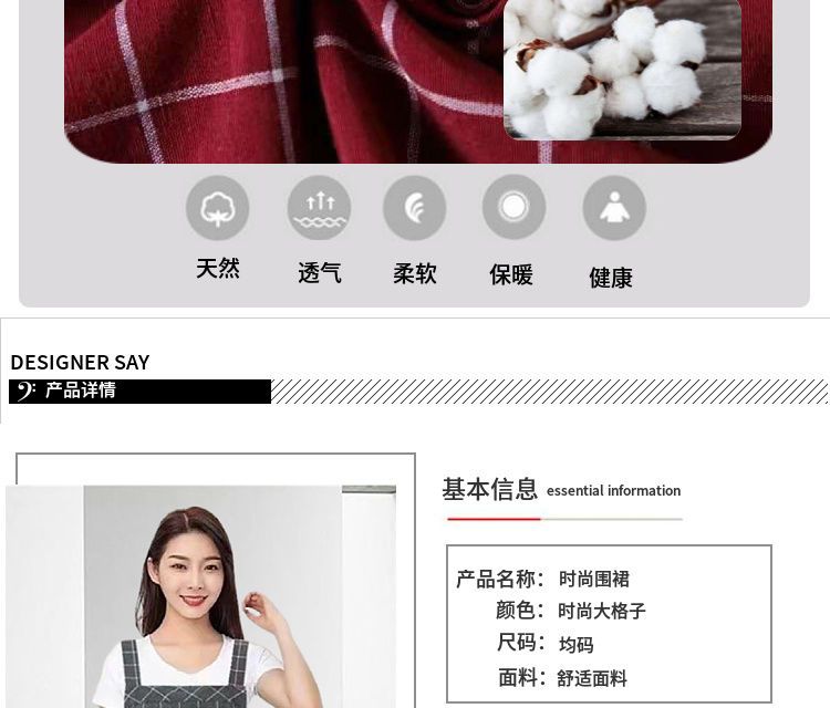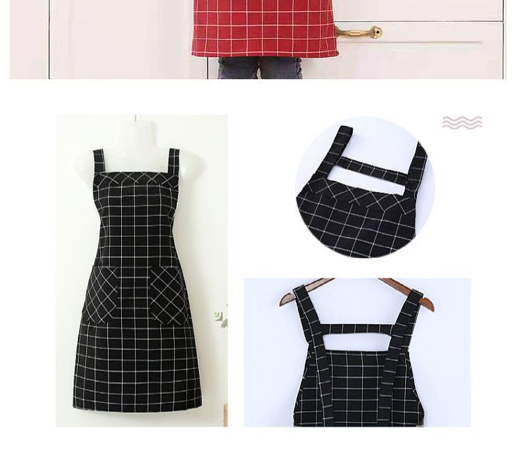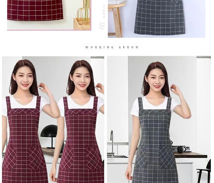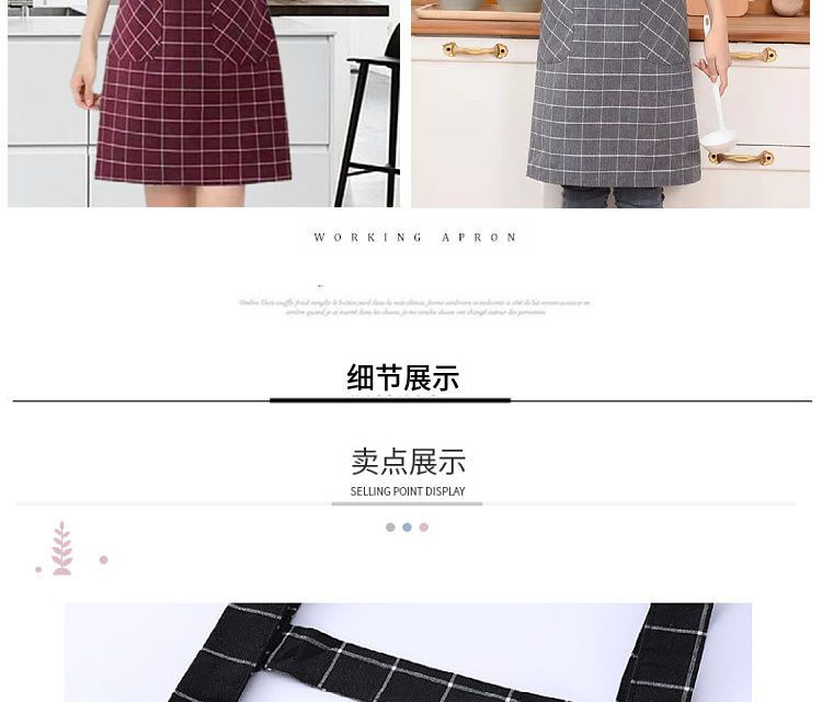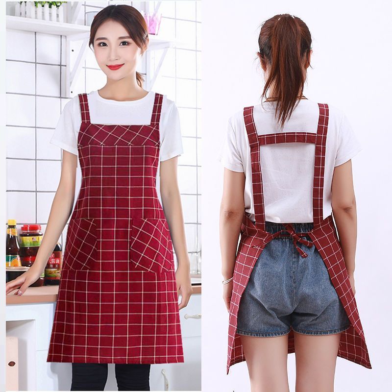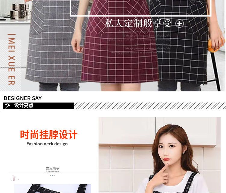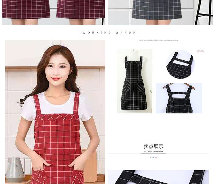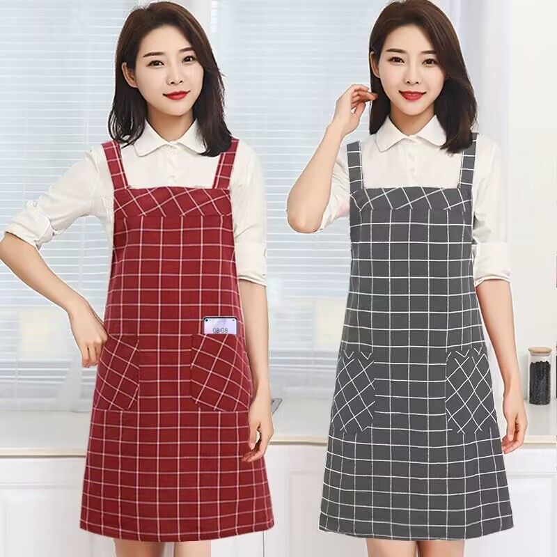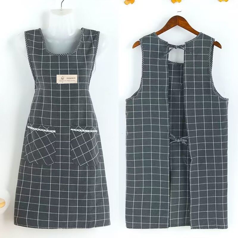 棉麻洋气围裙背带家用女上班工作服围腰罩衣厨房做饭防油格子无袖