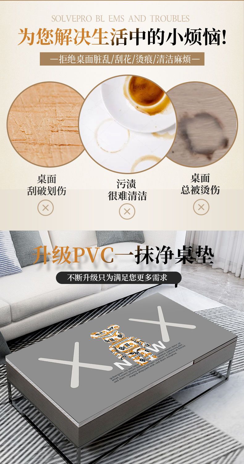 桌布防水防油轻奢潮流茶几垫PVC桌垫创意高级台布垫电视柜垫