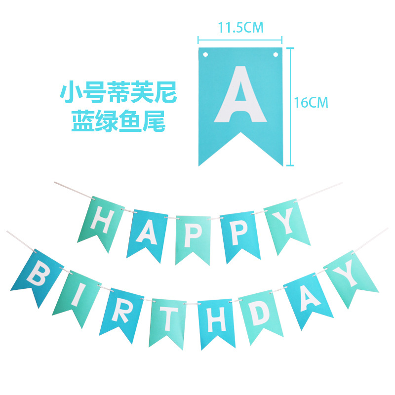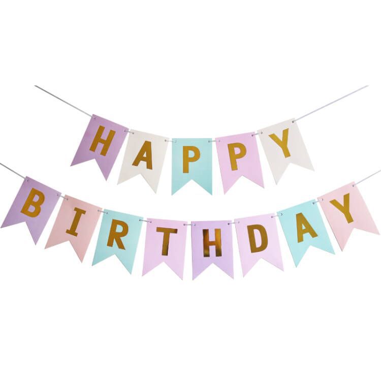 小号生日燕尾烫金happy birthday字母横幅鱼尾拉花拉旗彩旗三角旗