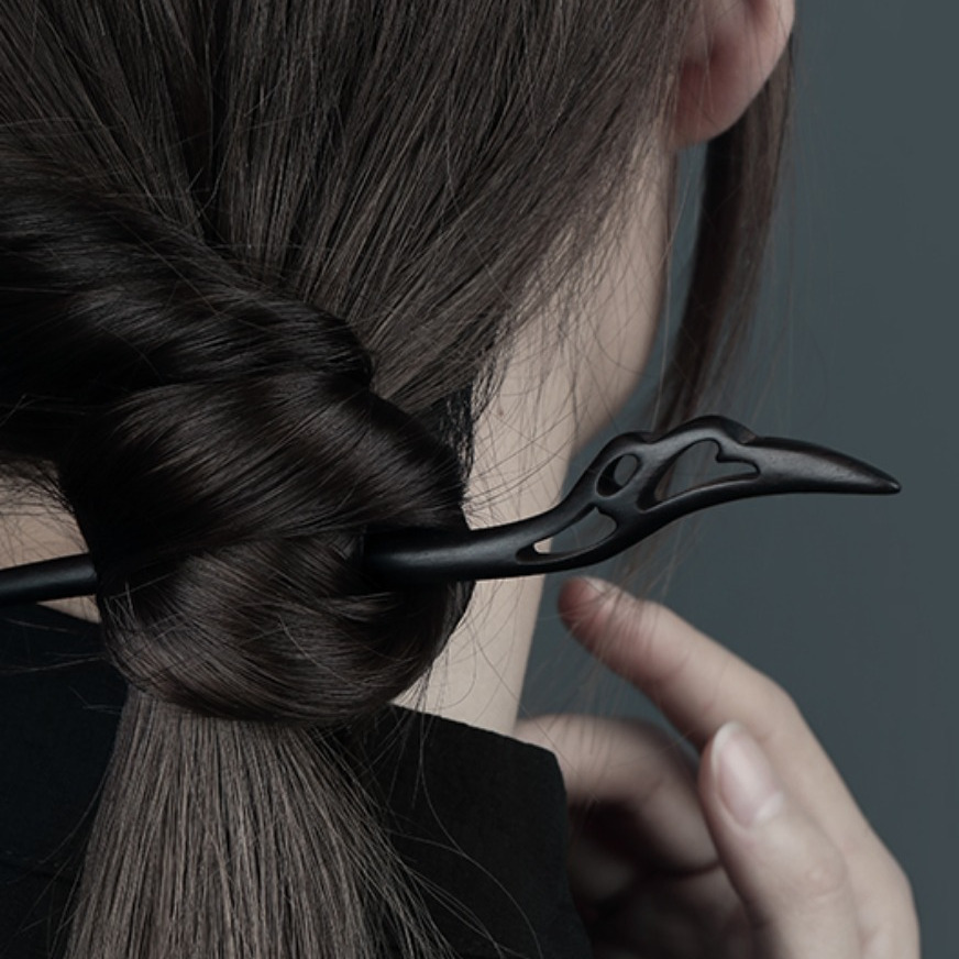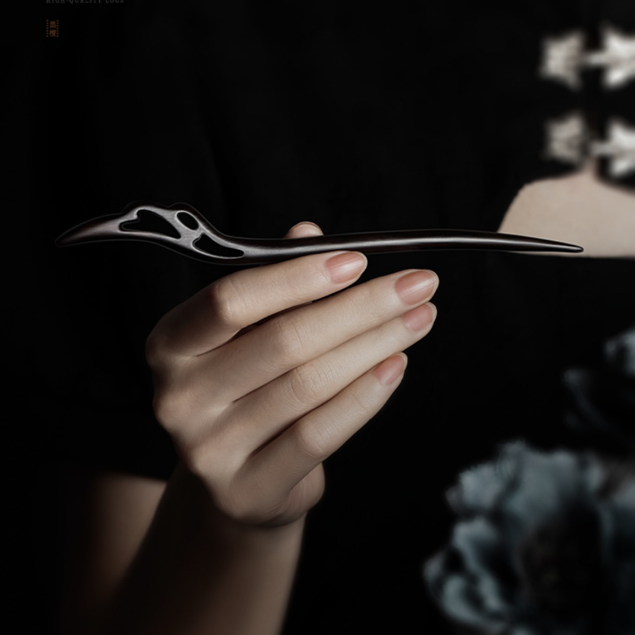 复古黑木古风发簪简约现代高级感木质簪子日常盘发木头手工簪女