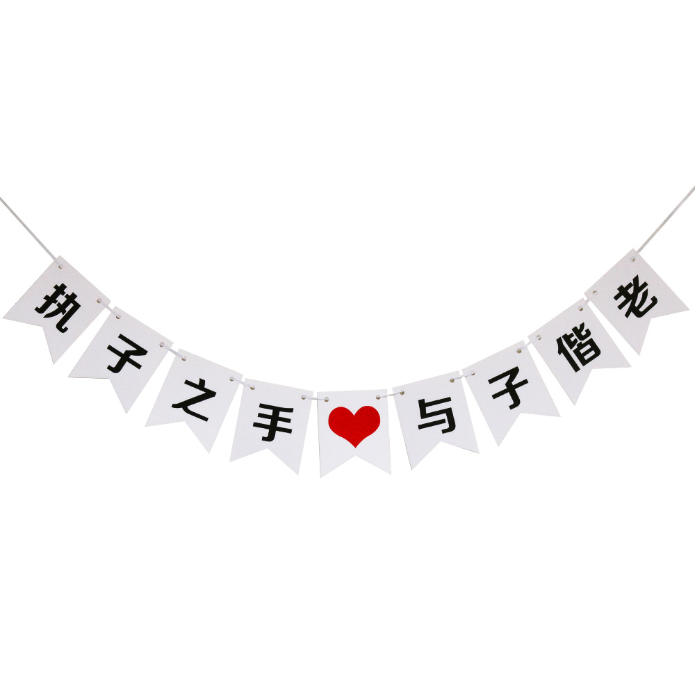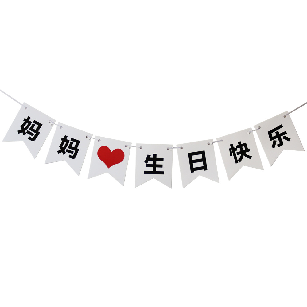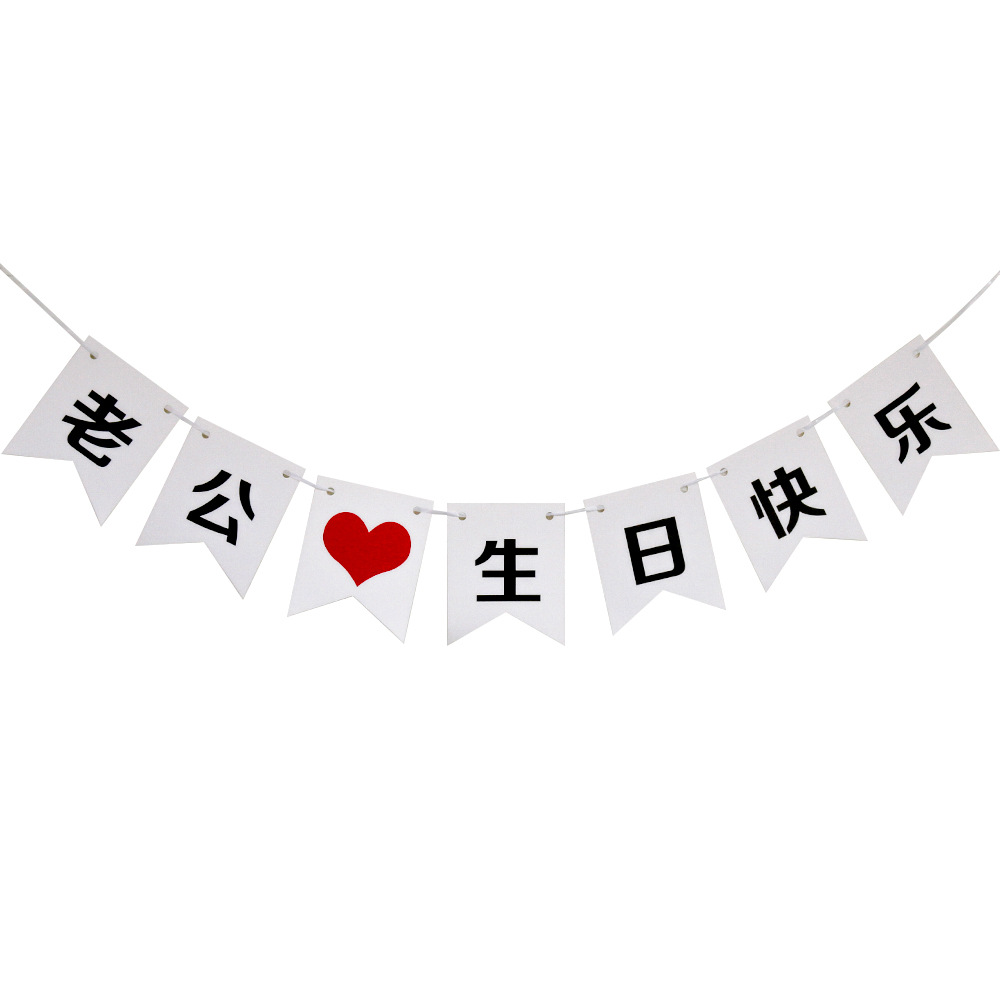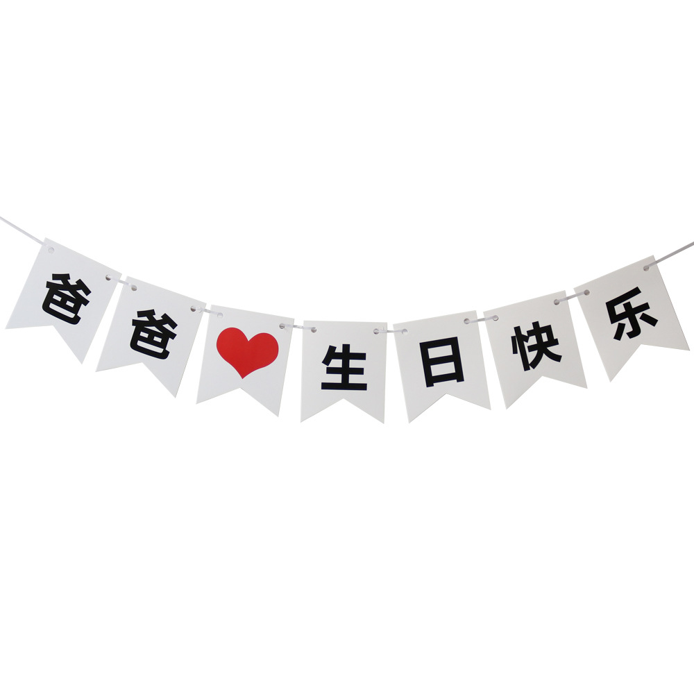 宝贝生日快乐鱼尾拉旗 爸爸生日快乐中文生日派对拉旗彩旗背景墙