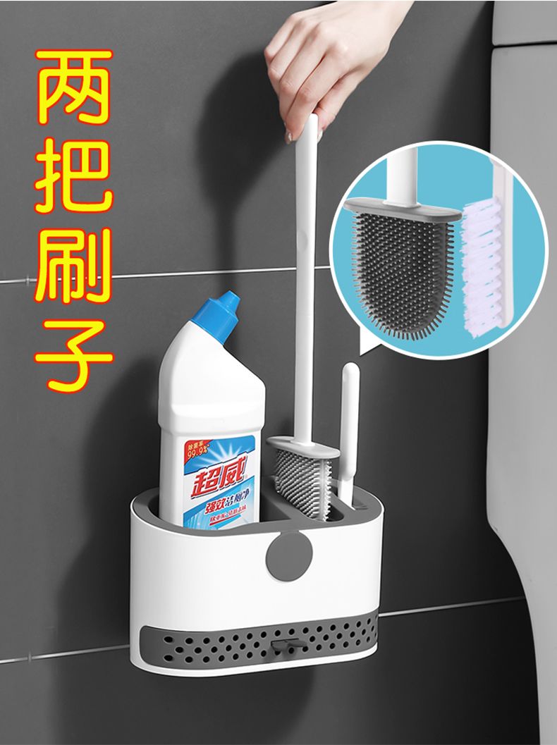 马桶刷家用无死角洗厕所刷子神器卫生间壁挂长柄蹲坑便清洁置物架