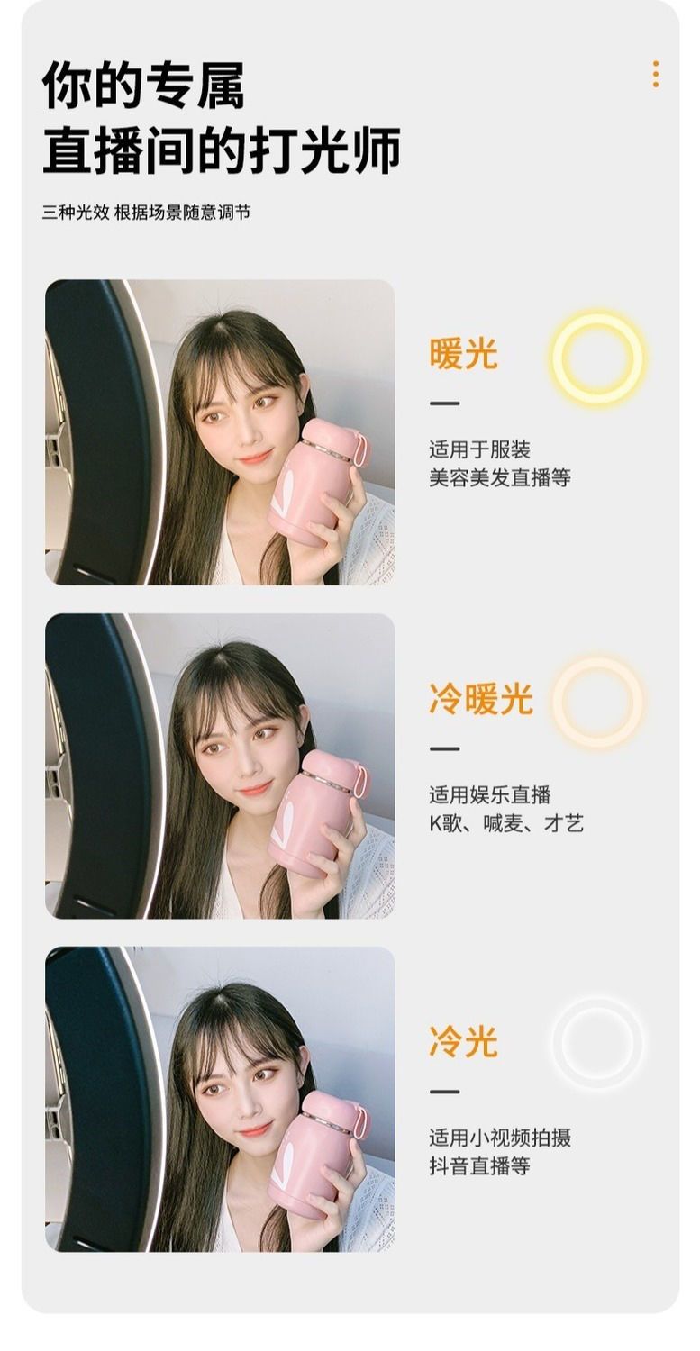 | stand-alone position + 26cm retouching supplementary lighting + photo + bag(单机位+26cm美颜补光+拍照+袋) | USD $8.62 | 99999 piece available |