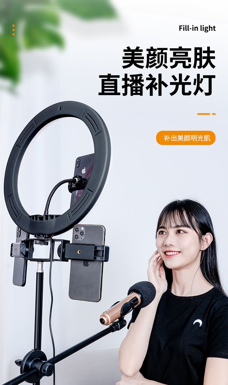 | with three phone stands + 26cm retouching supplementary lighting + photo + bag(三机位+26cm美颜补光+拍照+袋) | USD $9.05 | 99999 piece available |