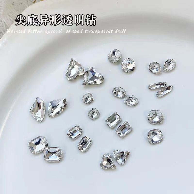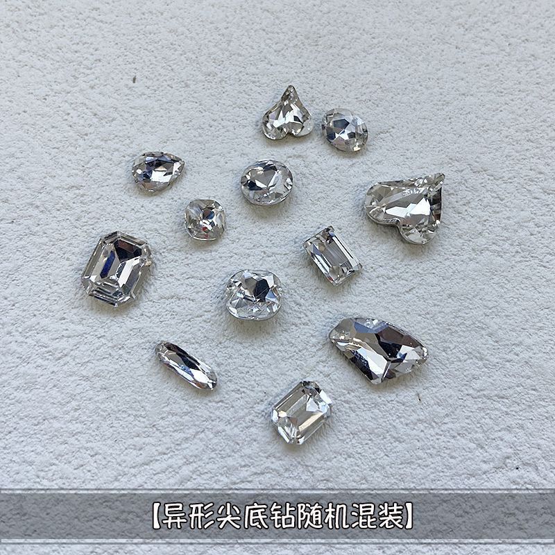 美甲钻混装尖底异形爆闪K9锆石鸽子蛋网红水钻水晶钻指甲钻爱心钻