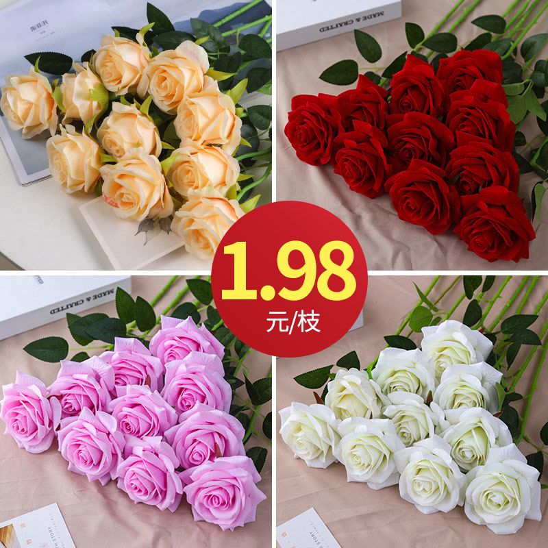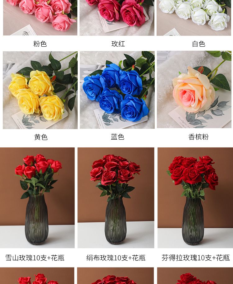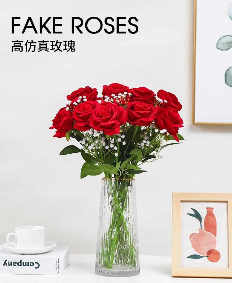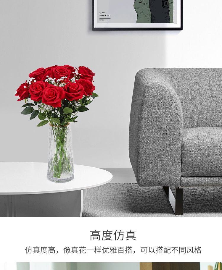 仿真玫瑰花假花高档2022新款花束塑料花插花摆件客厅摆设装饰品