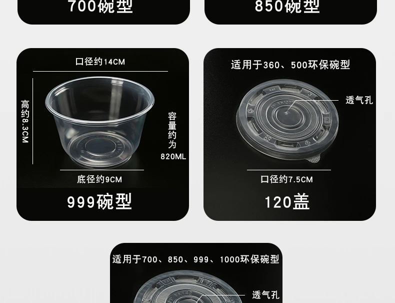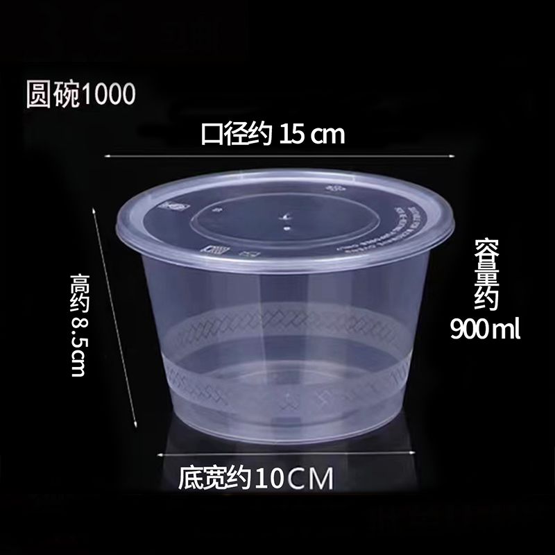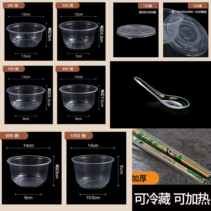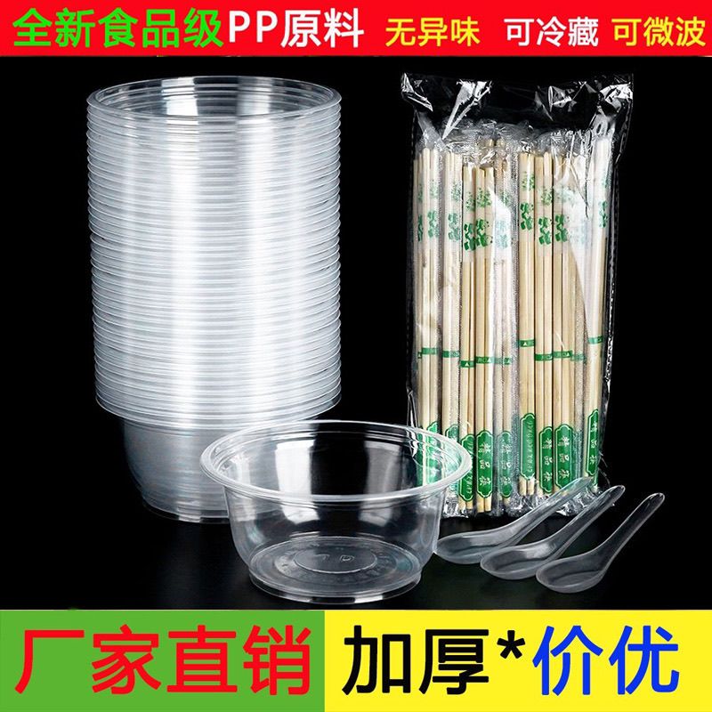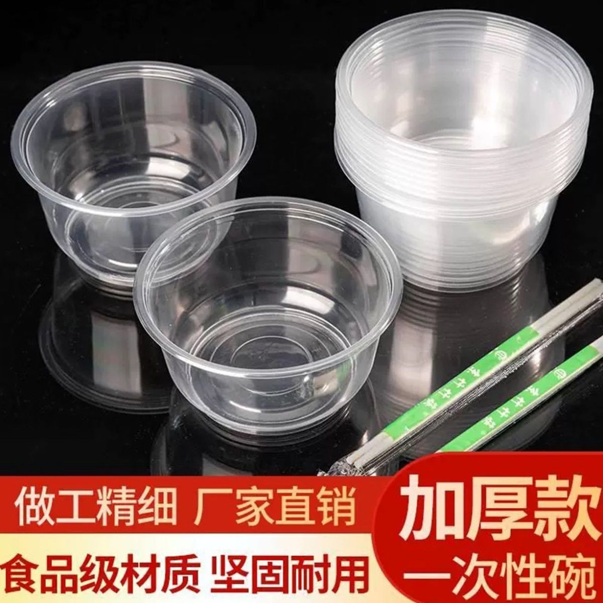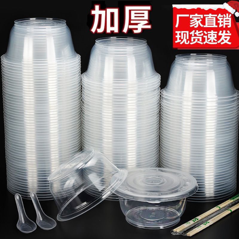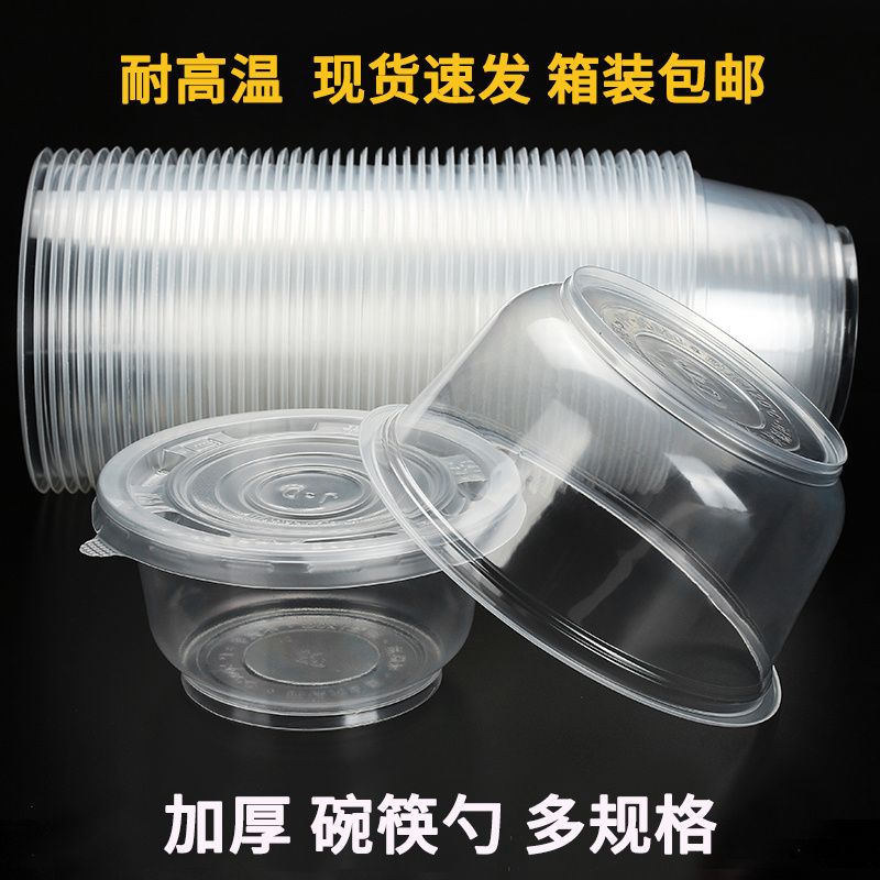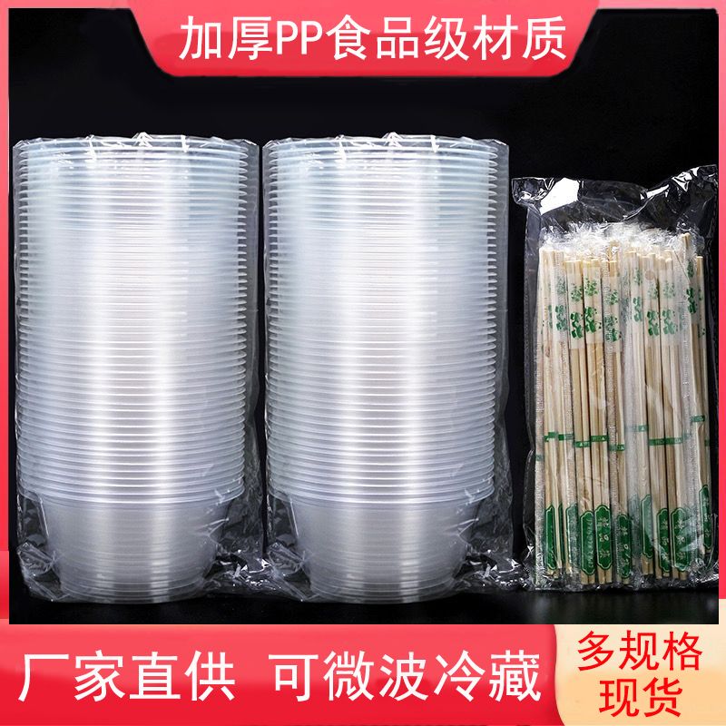 一次性碗筷加厚塑料碗打包外卖快餐盒带盖家用小饭盒圆形汤碗批发