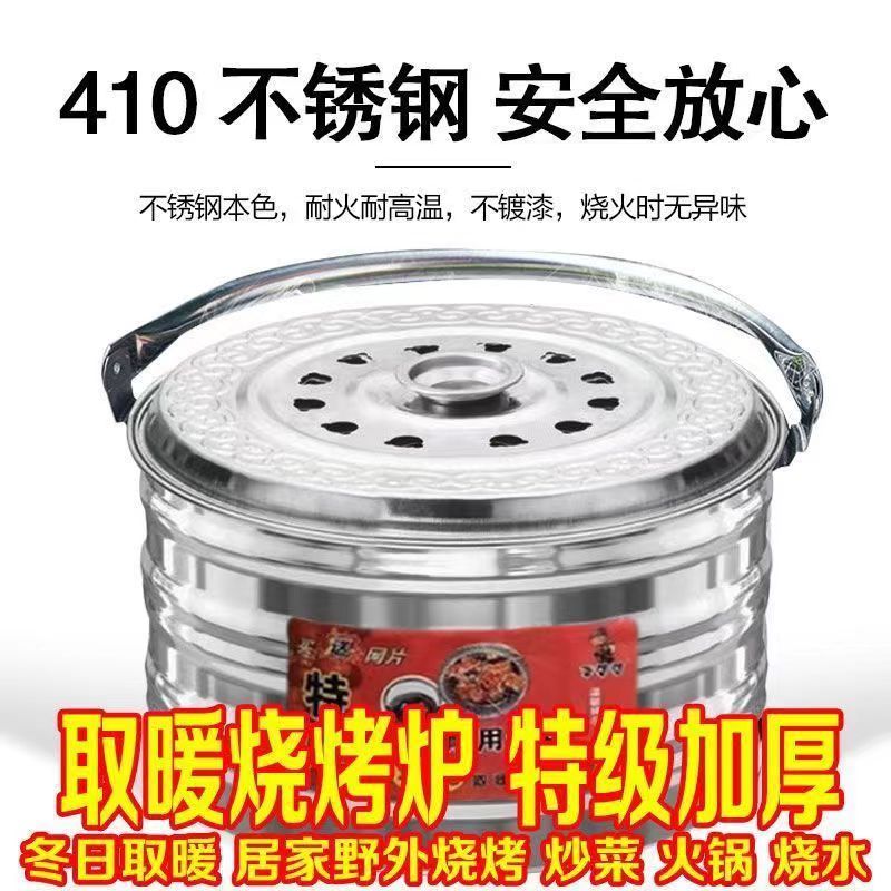 加大加厚木炭烤火炉取暖炉手提火盆家用户内外烧烤移动便携式烧炉