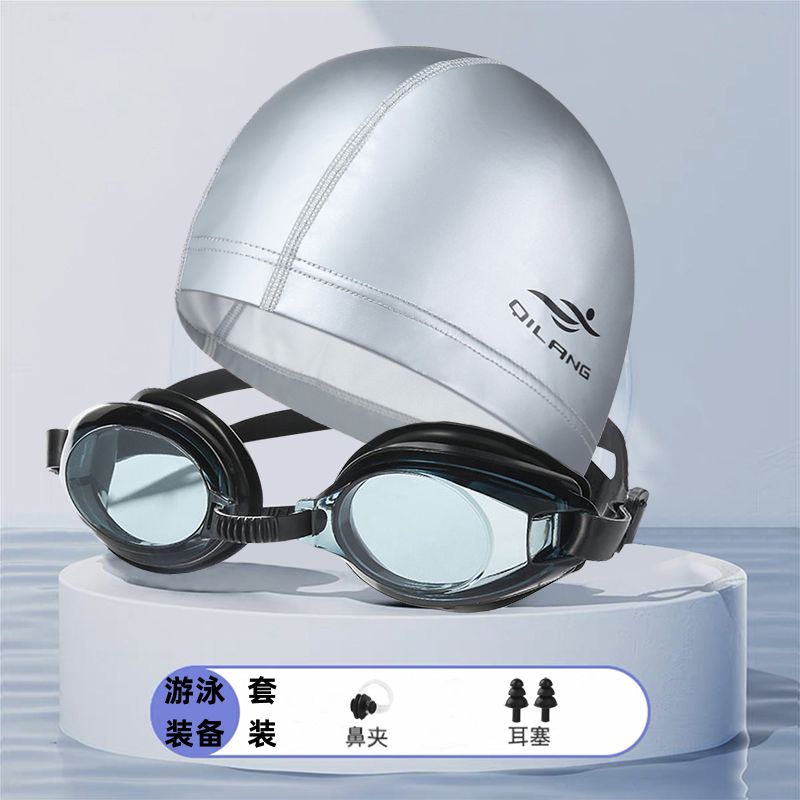 游泳帽pu防水舒适不勒头男女款成人泳帽泳镜鼻夹耳塞游泳装备套装