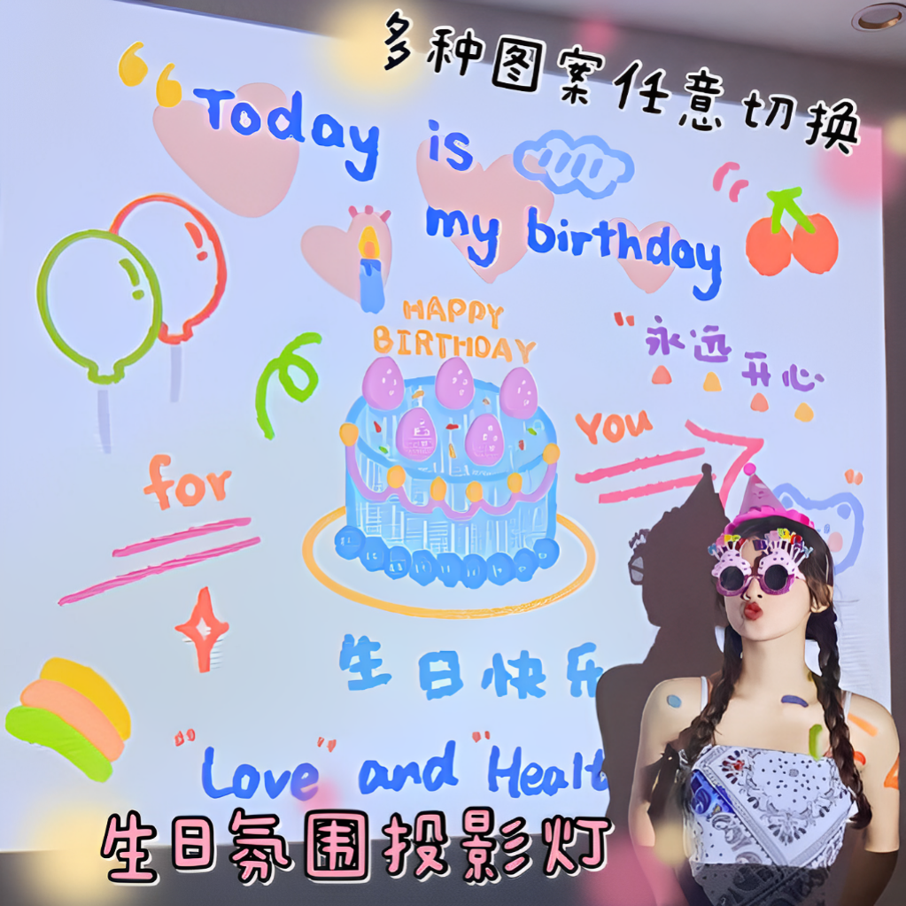 生日投影灯创意派对ins投影仪生日礼物装饰氛围灯拍照道具背景