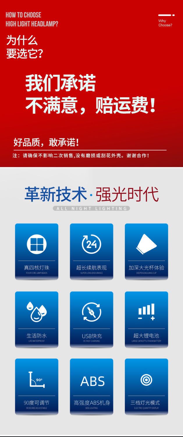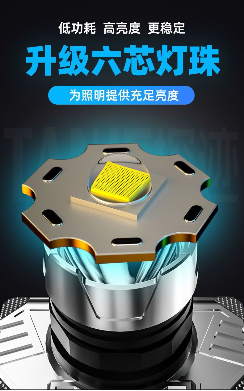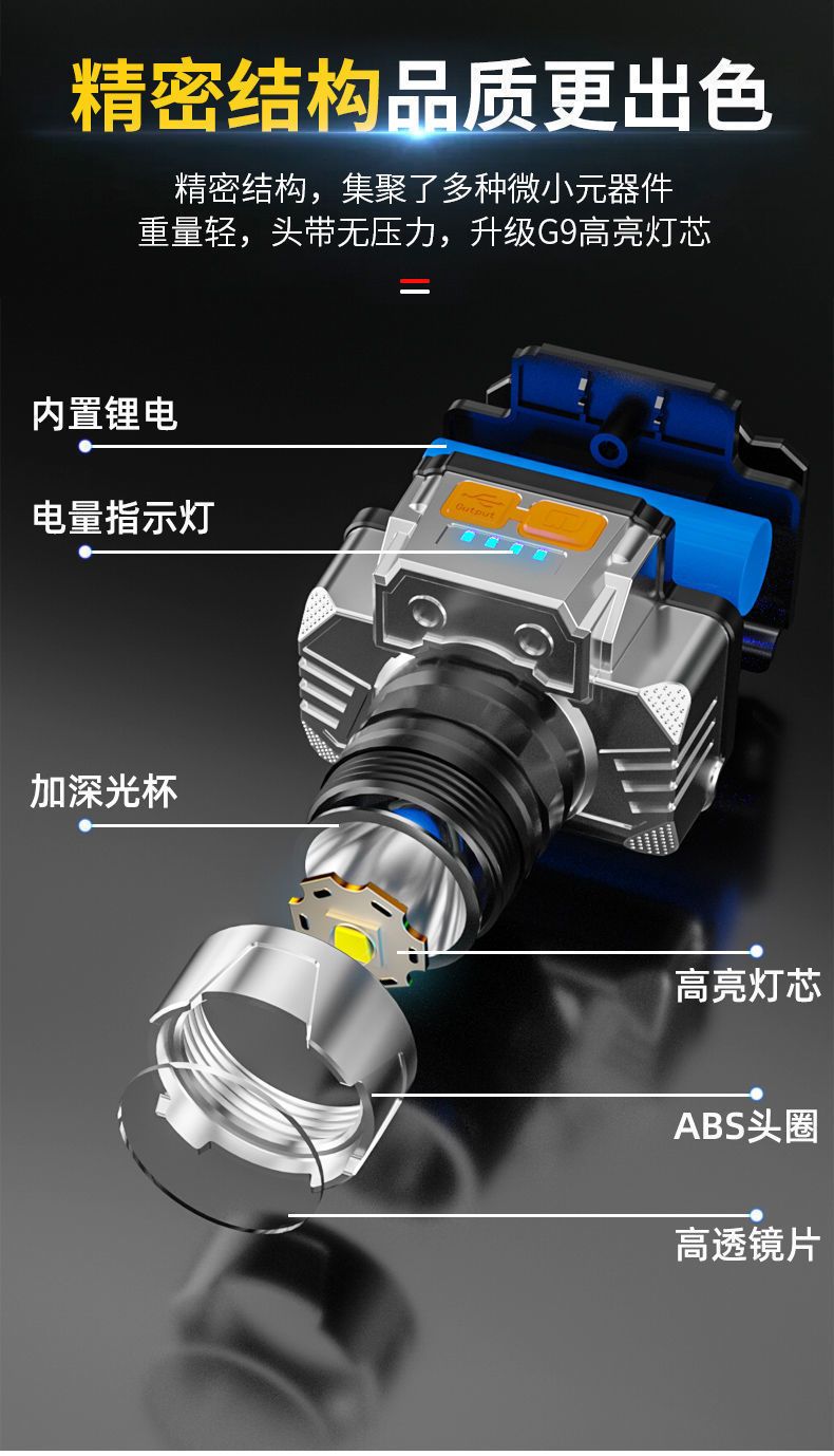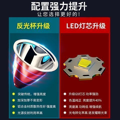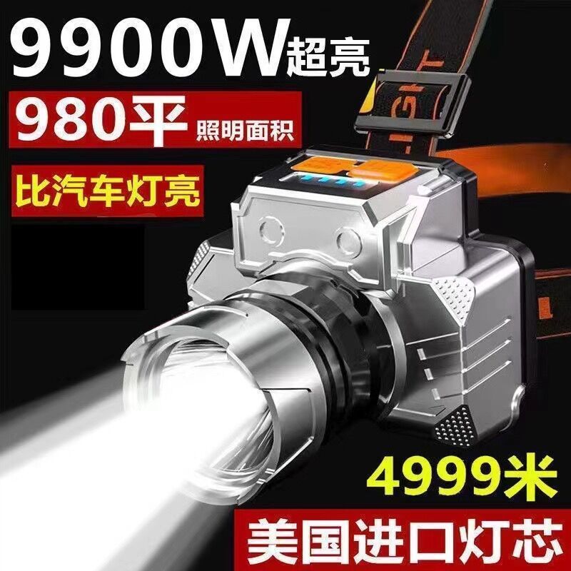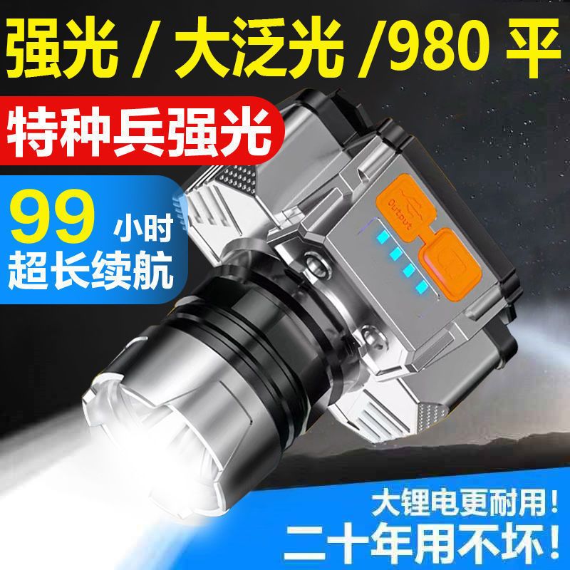 LED头灯强光超亮头戴式手电筒户外家用远射充电夜钓鱼小氙气矿灯