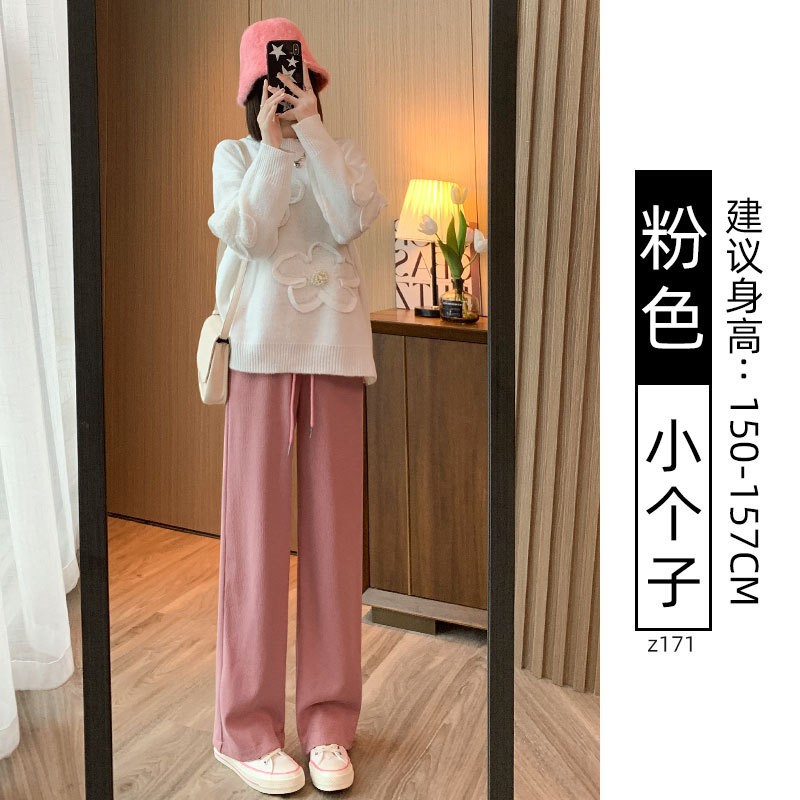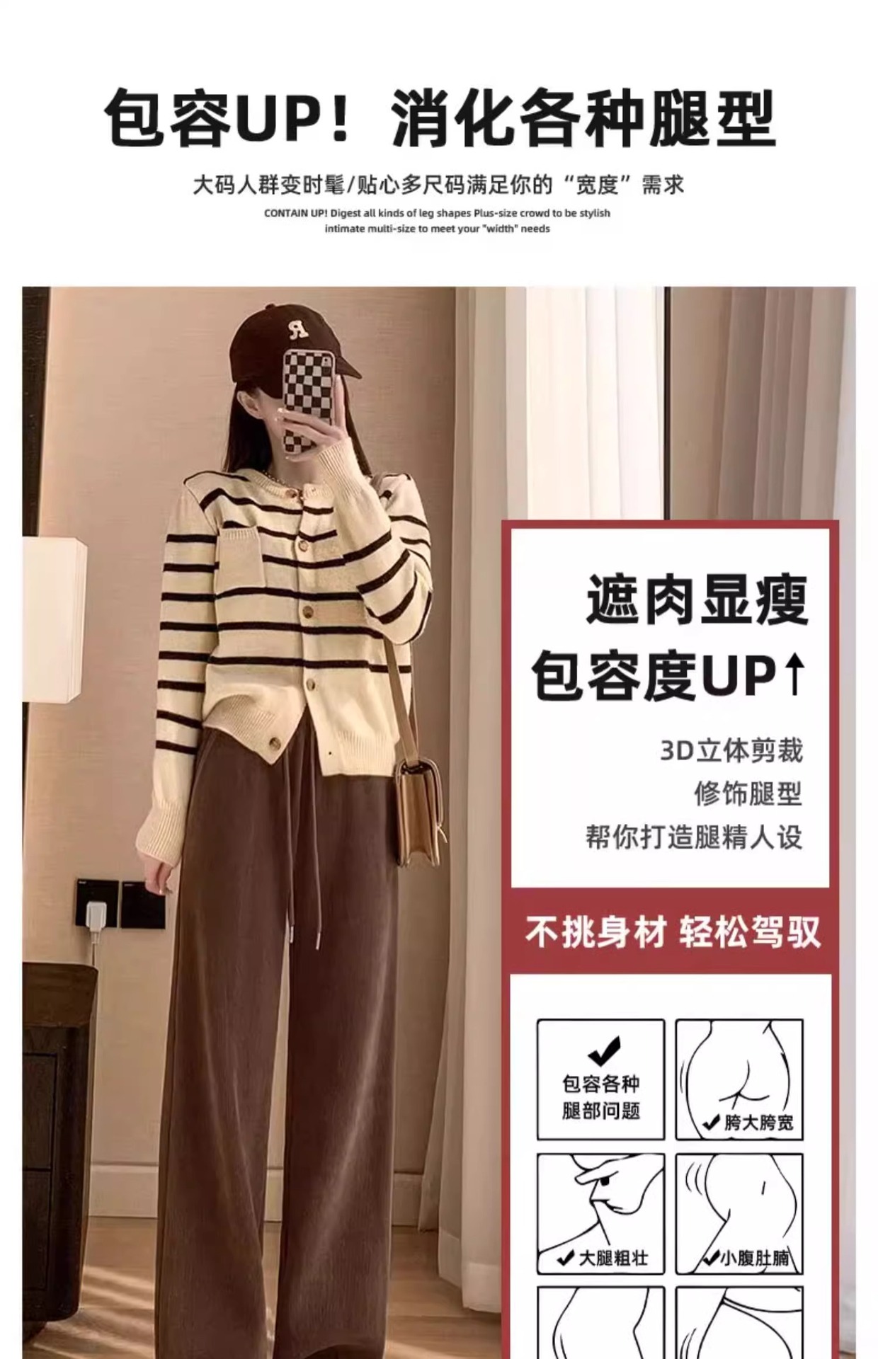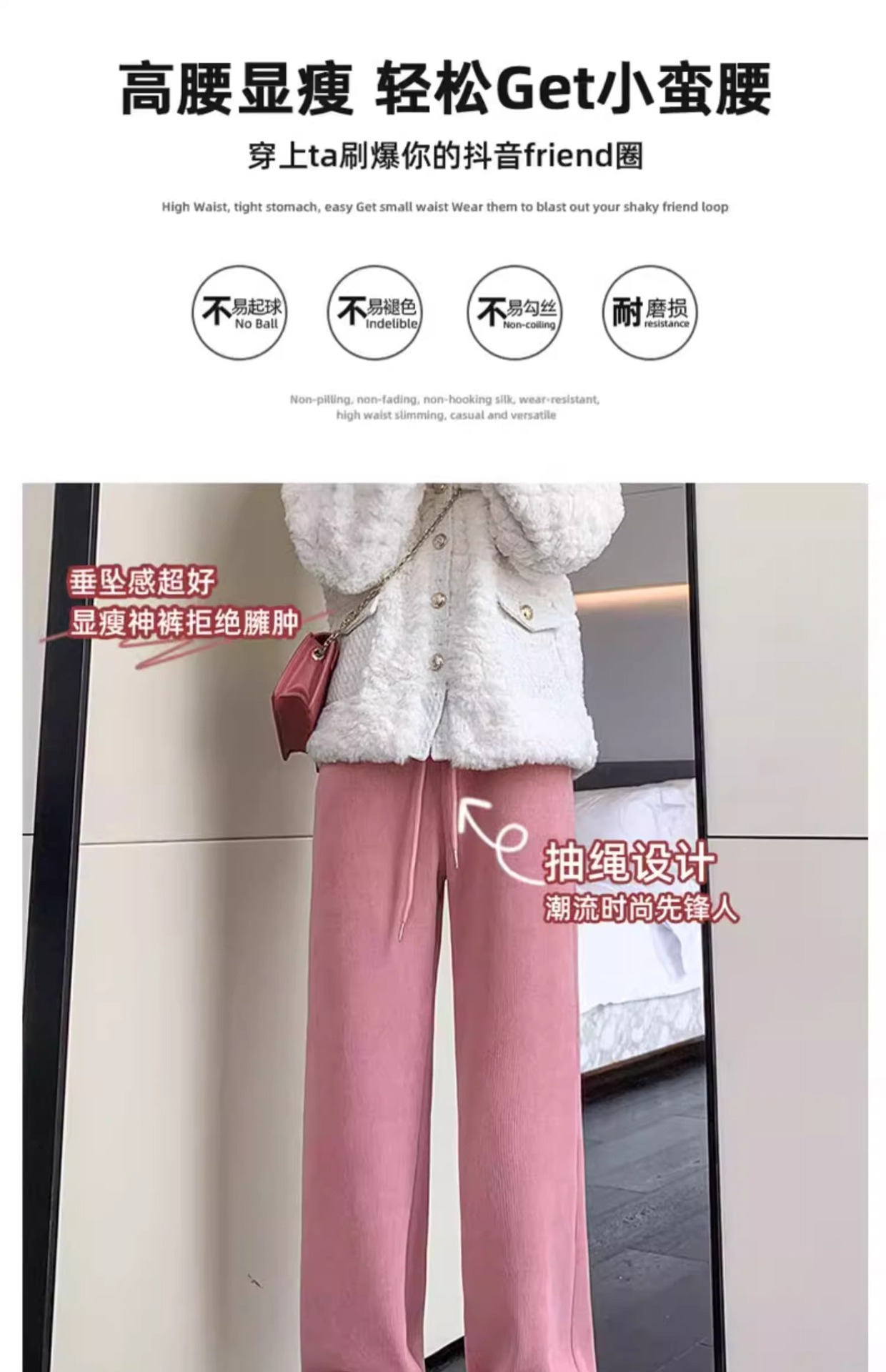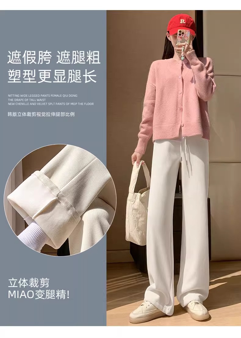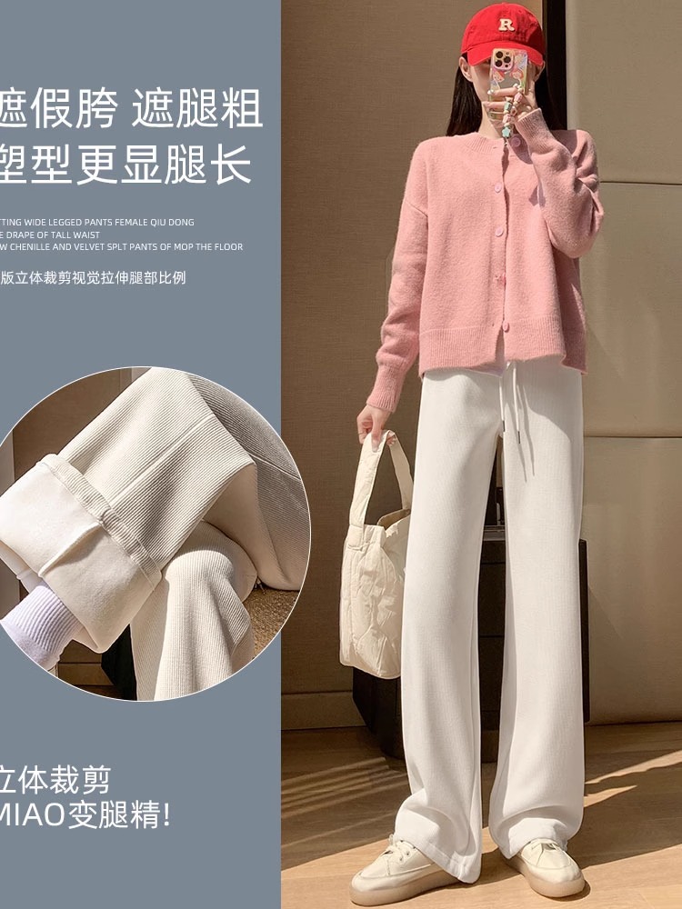 窄版阔腿裤女裤春秋2025年新款薄款雪尼尔拖地直筒小个子休闲裤子