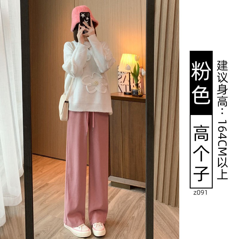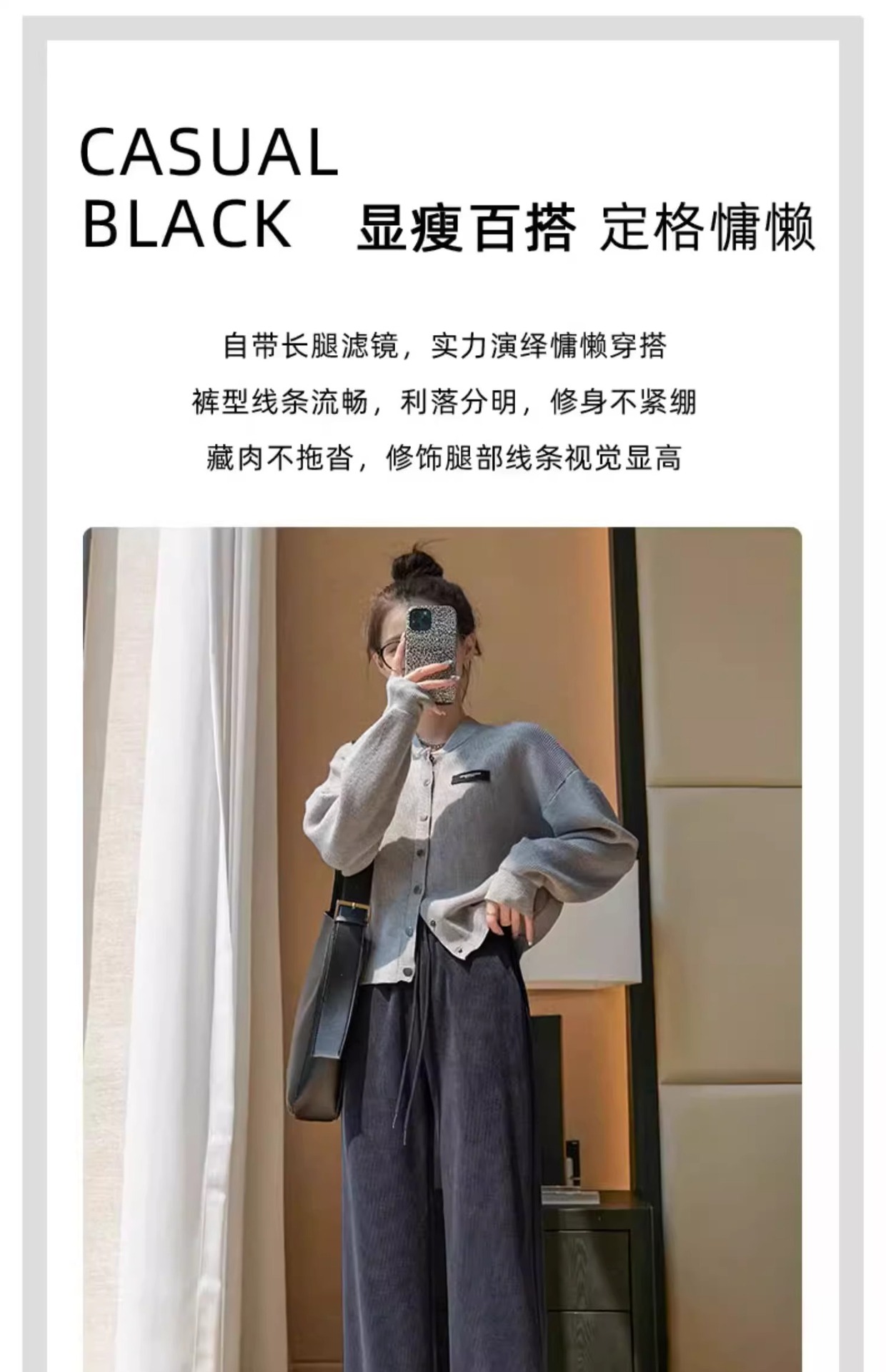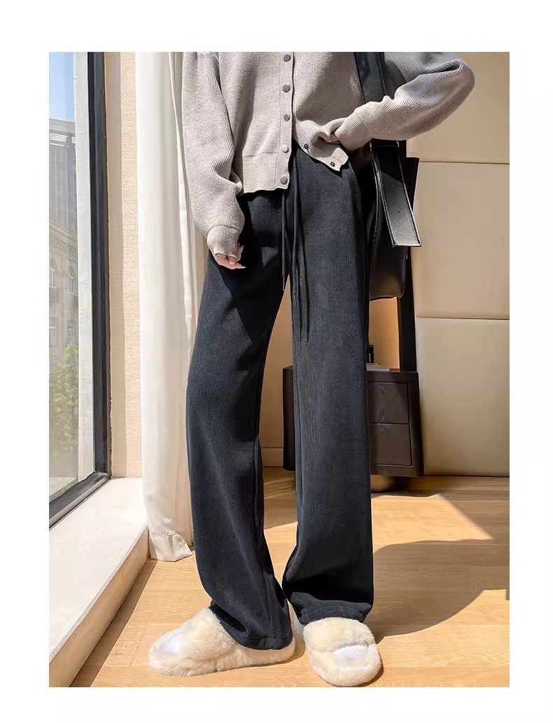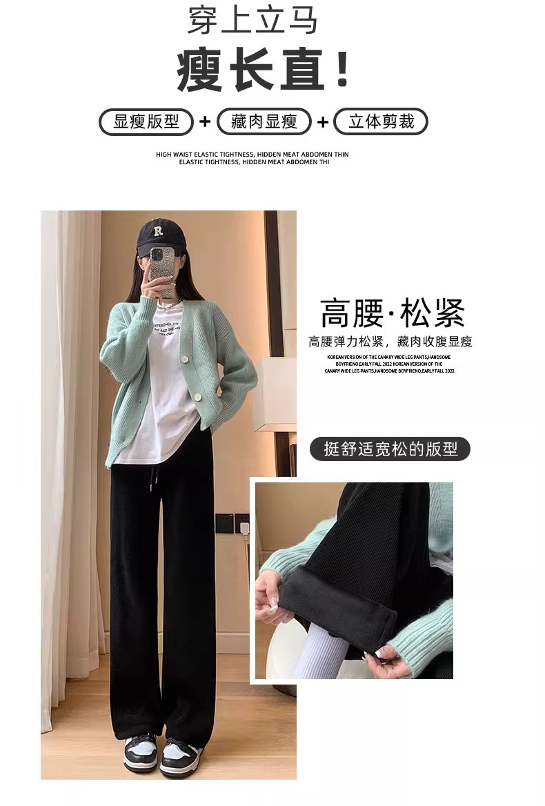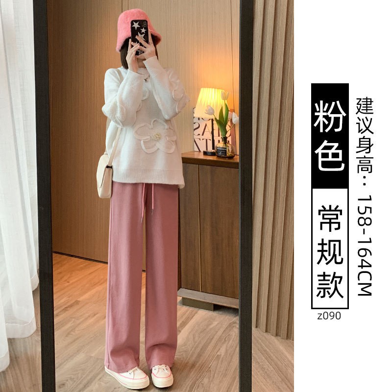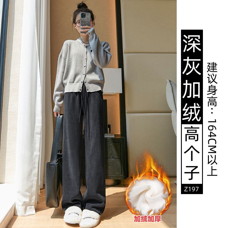 窄版阔腿裤女裤春秋2025年新款薄款雪尼尔拖地直筒小个子休闲裤子