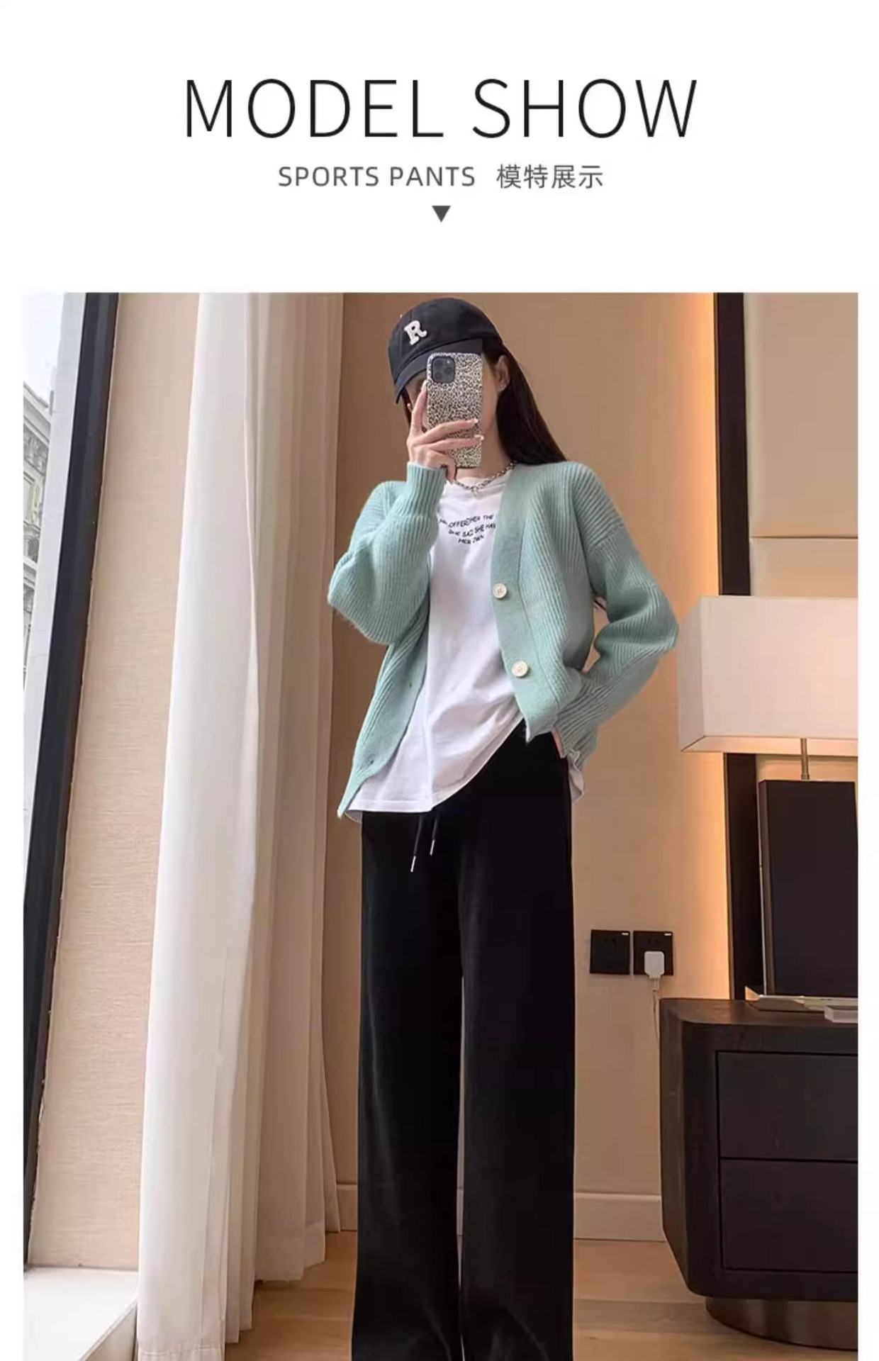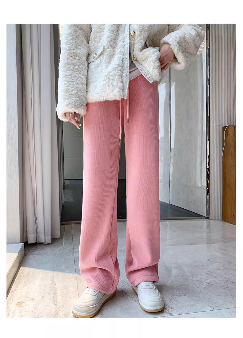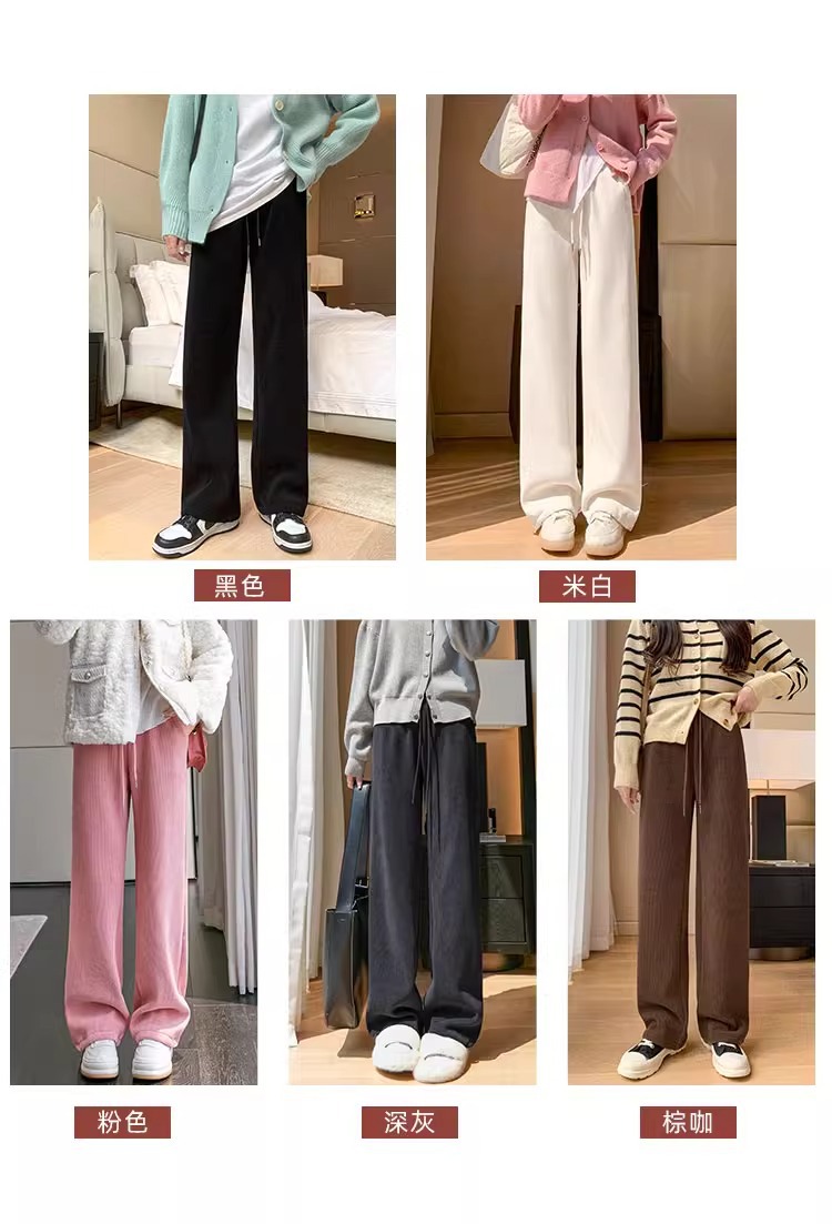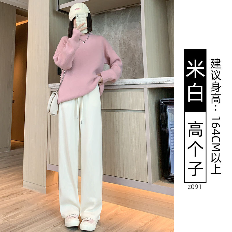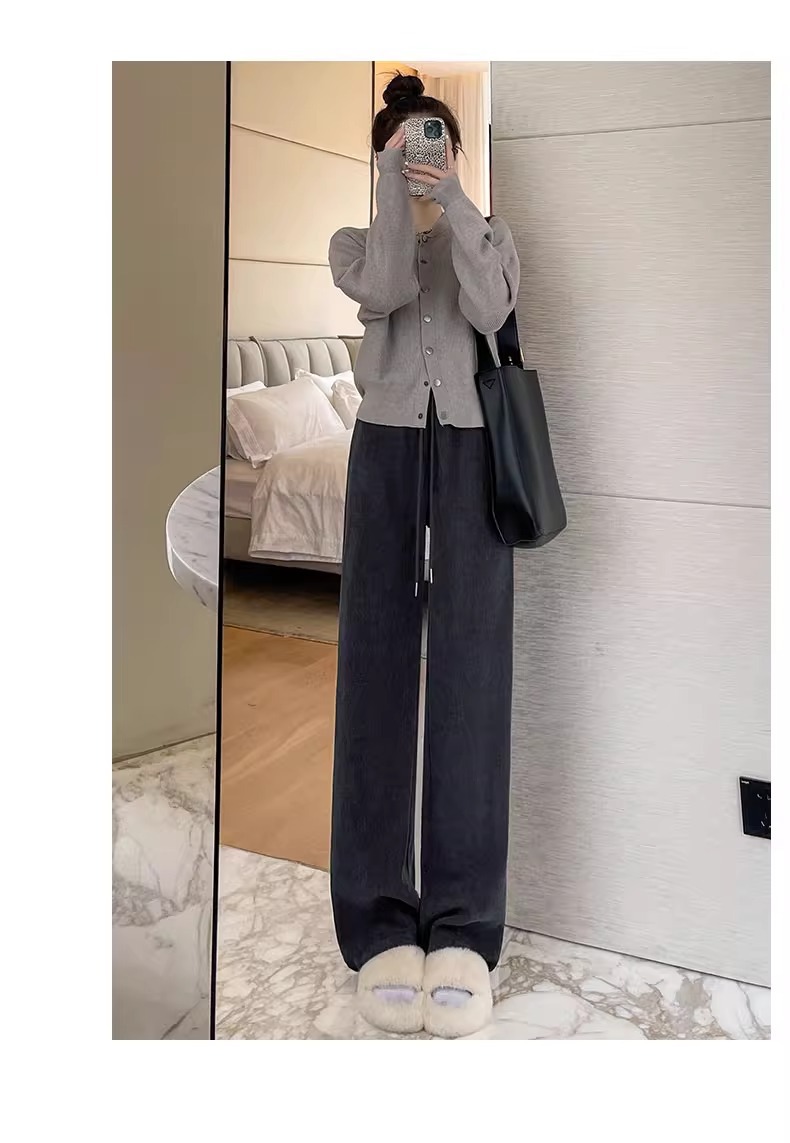 窄版阔腿裤女裤春秋2025年新款薄款雪尼尔拖地直筒小个子休闲裤子