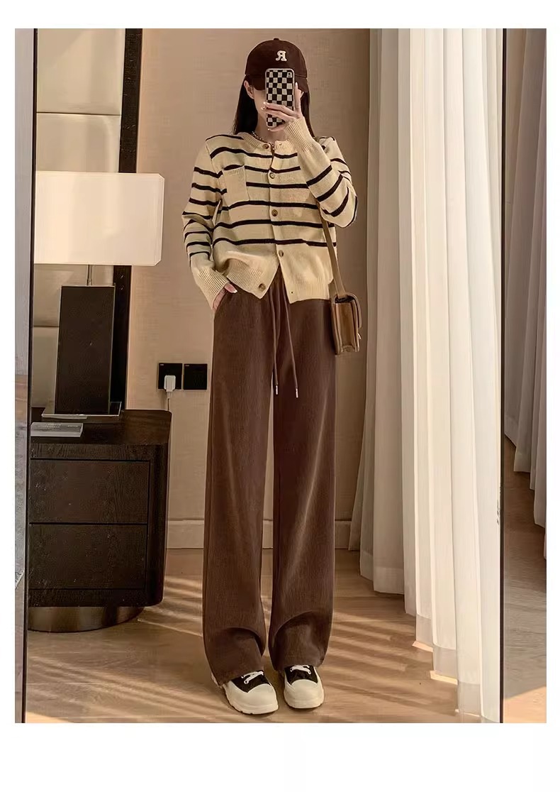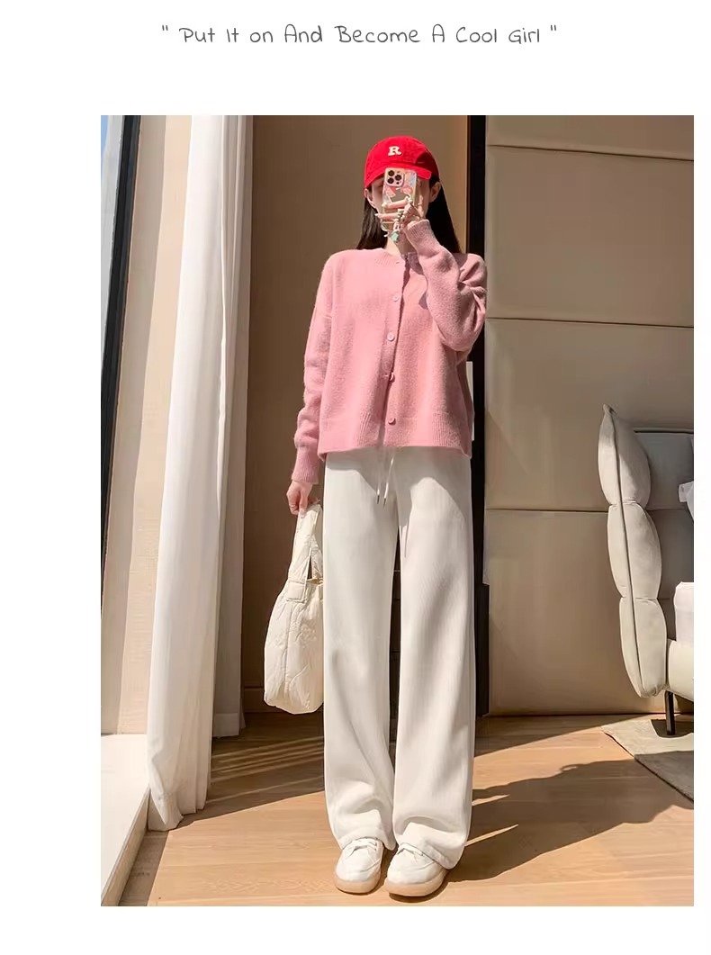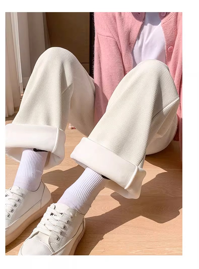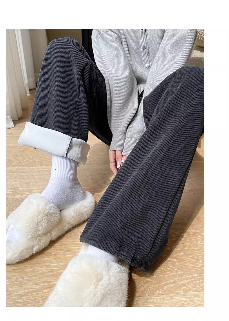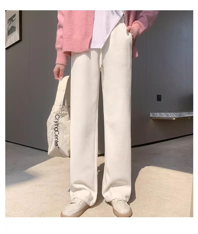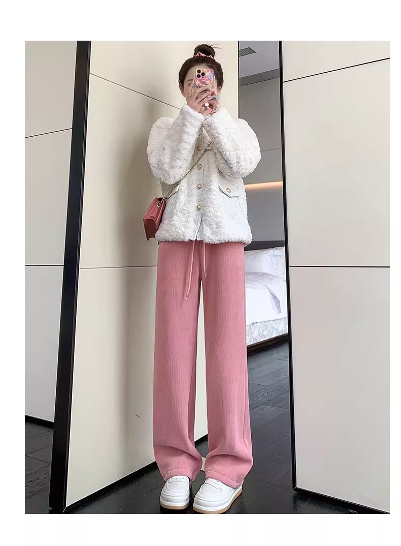 窄版阔腿裤女裤春秋2025年新款薄款雪尼尔拖地直筒小个子休闲裤子