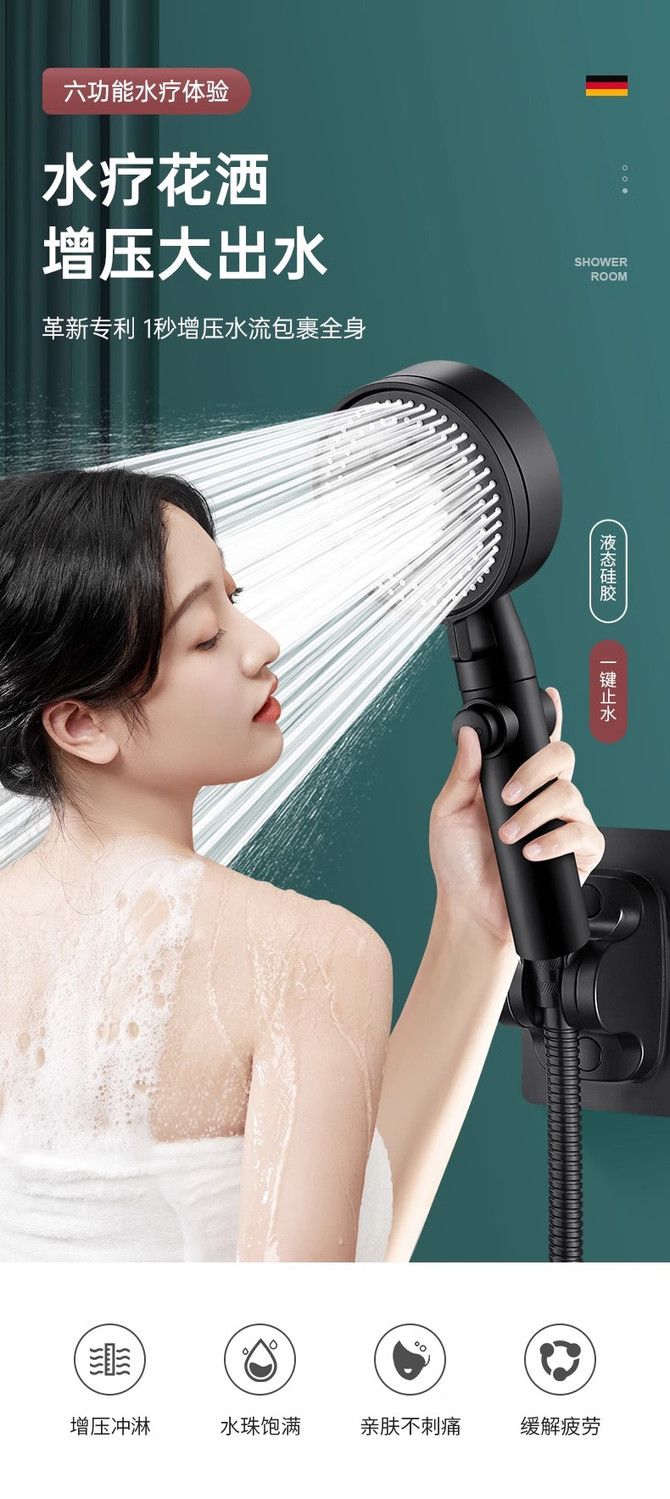 波柠浴霸增压淋浴花洒喷头套装大出水孔沐浴家用洗澡热水器通用