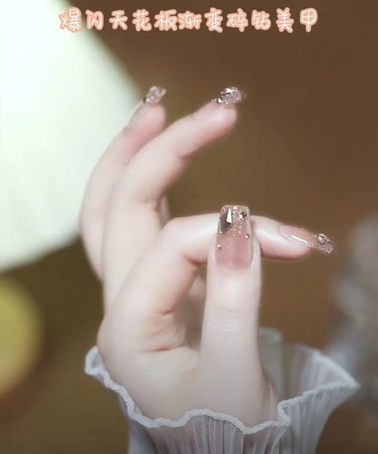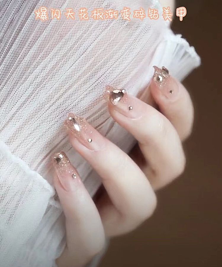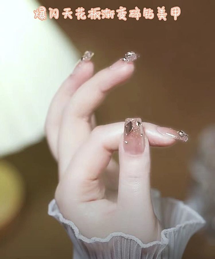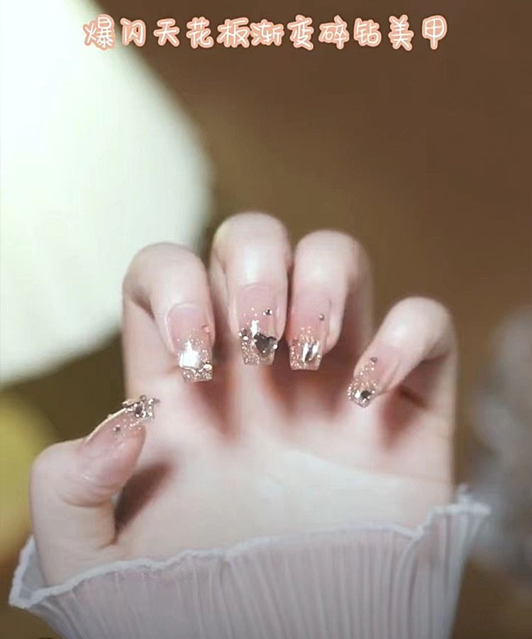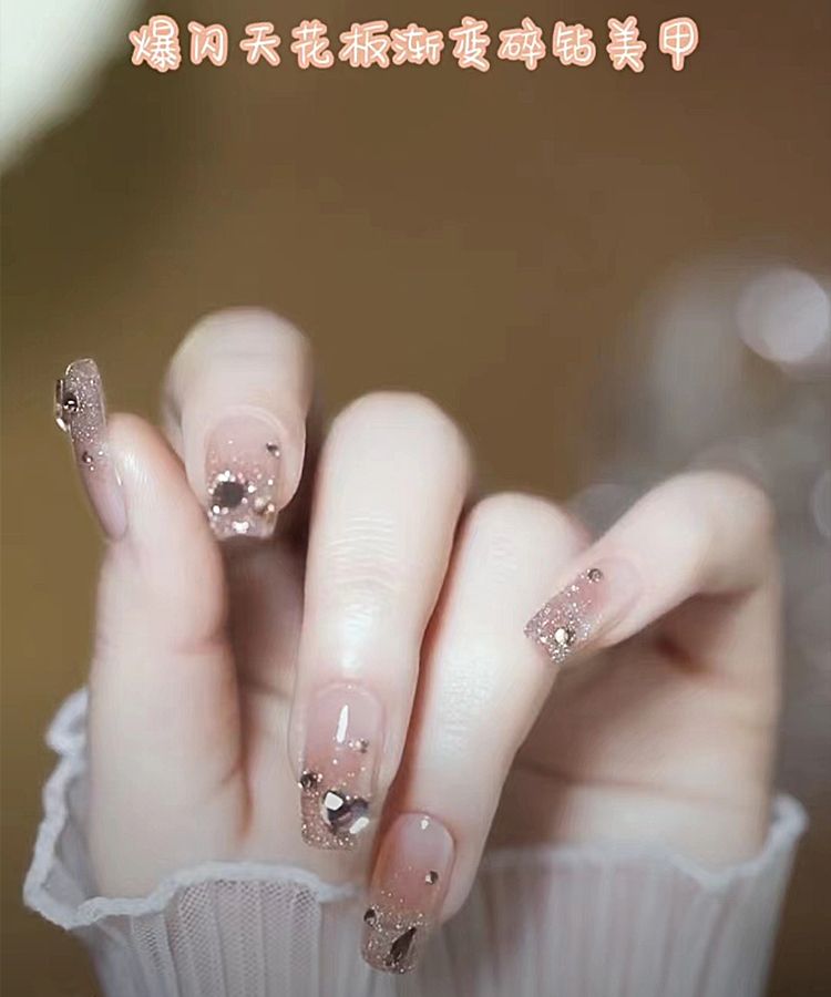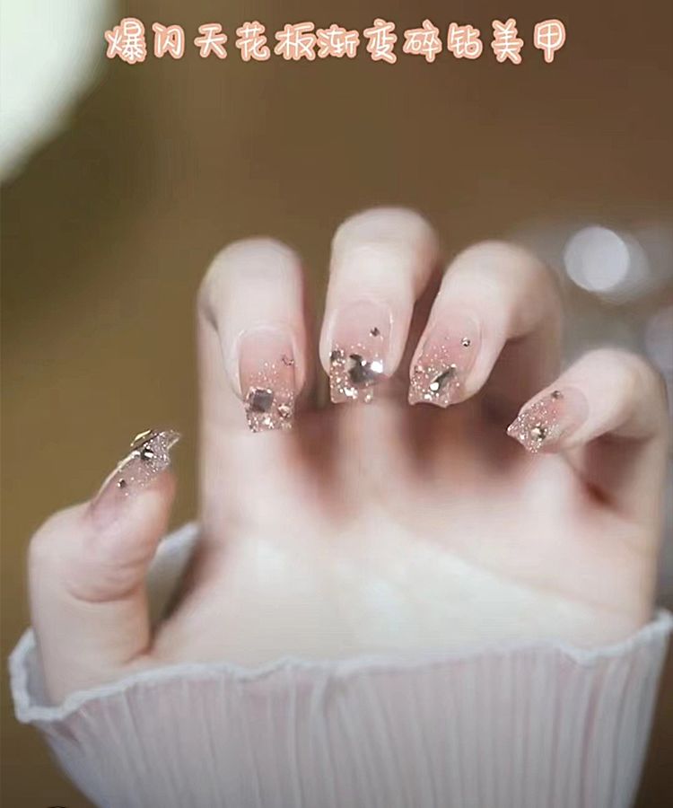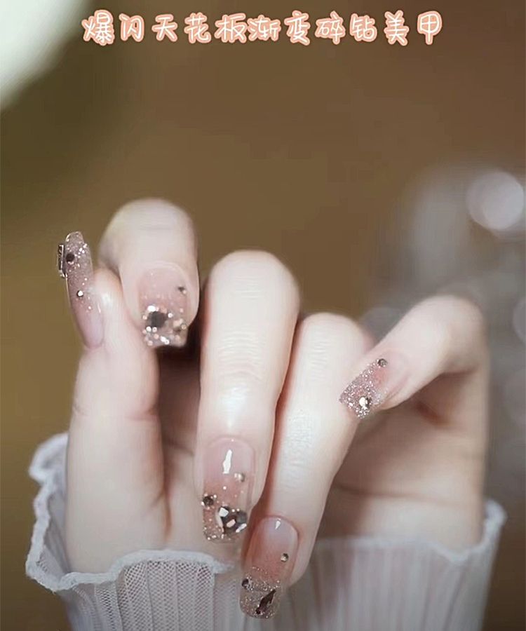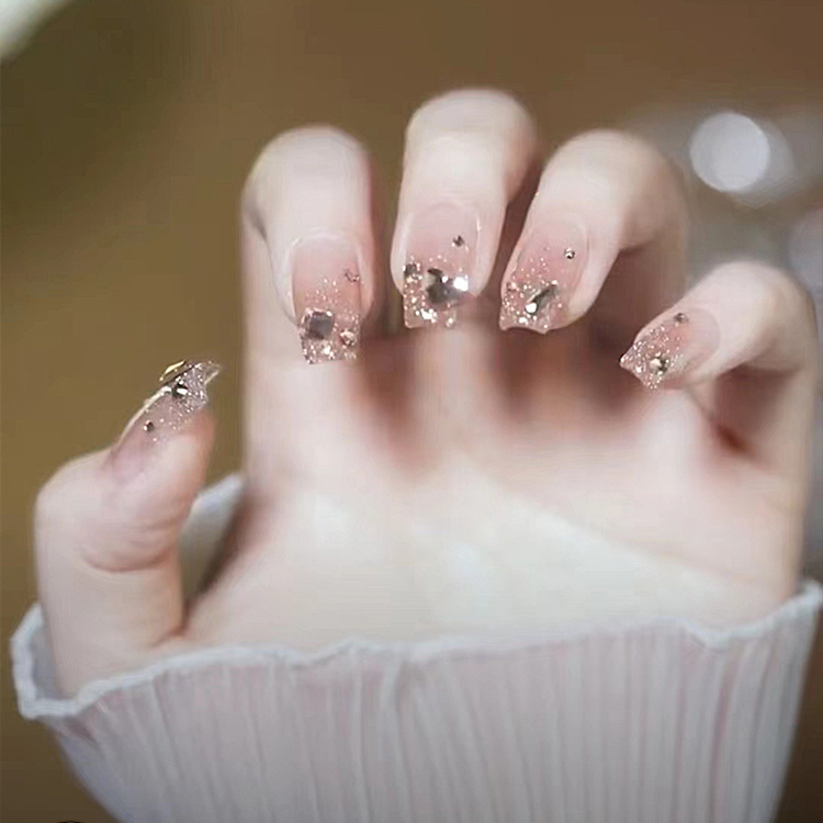 嘉月手工穿戴甲2022小红书爆闪碎钻亮闪显白夏天轻奢高级美甲贴片