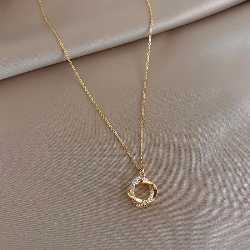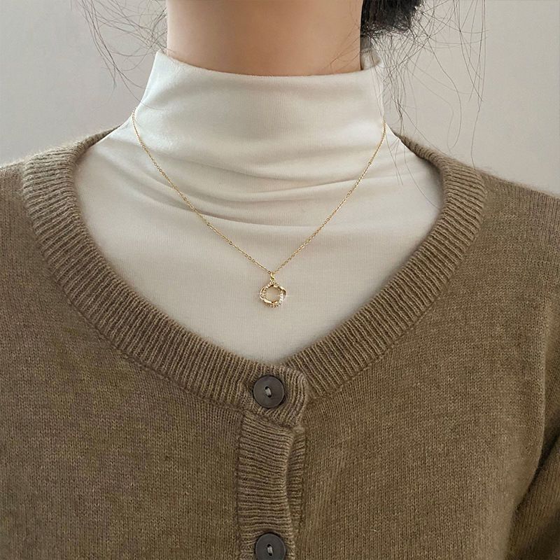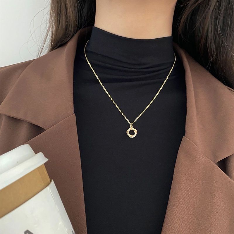幸运花环项链简约气质轻奢小众玫瑰高档骨链金毛衣项链女吊坠加长