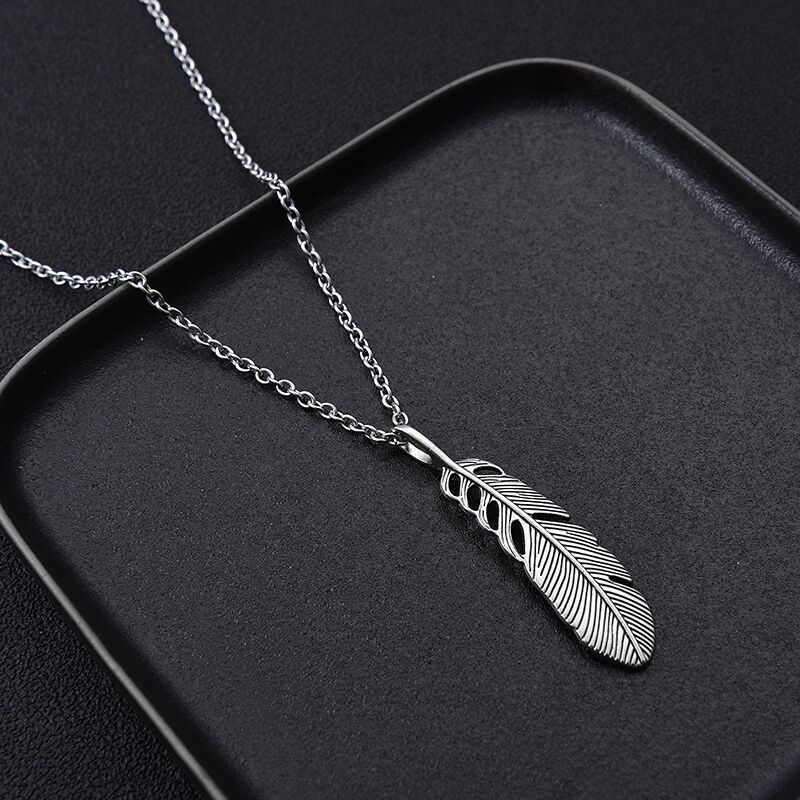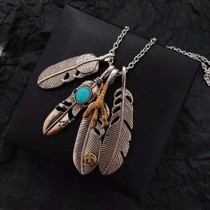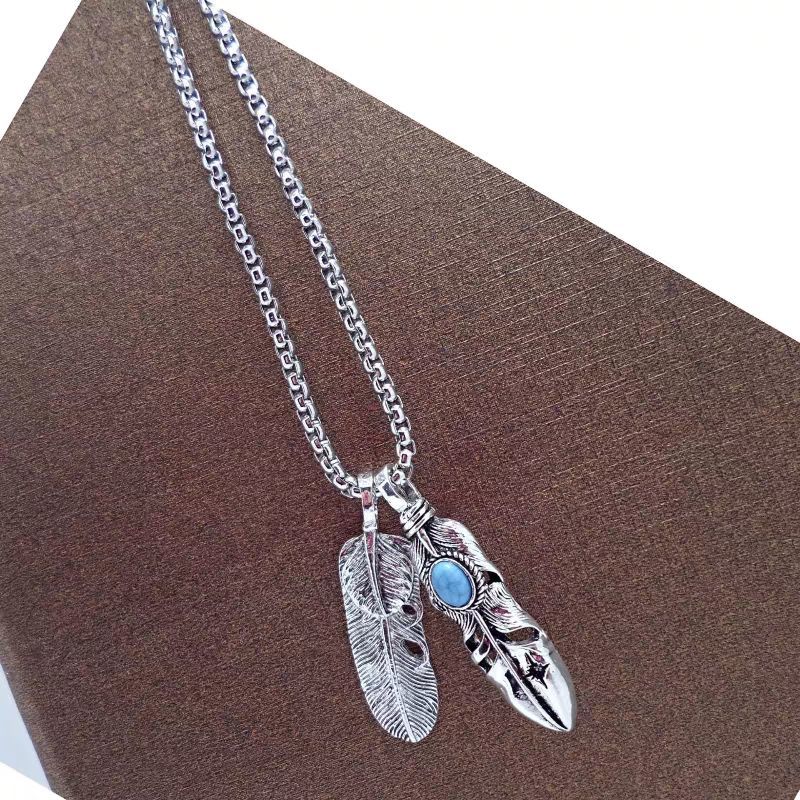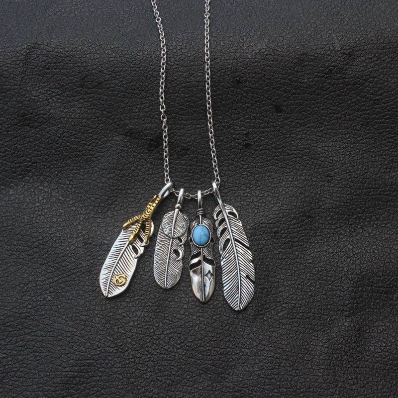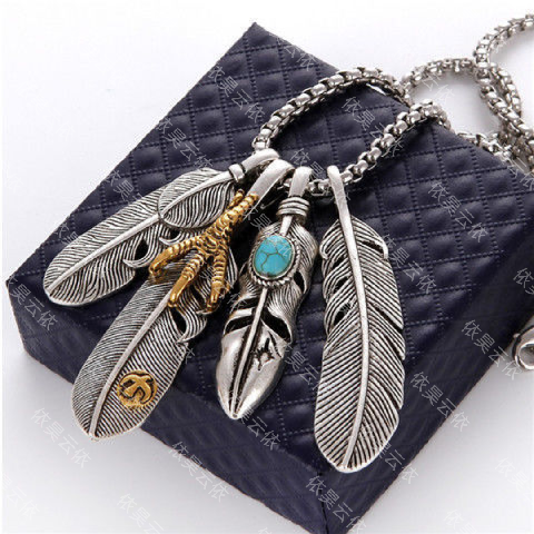 潮流ins四片羽毛复古项链潮男韩版嘻哈长款女潮男生挂件叶子鹰爪