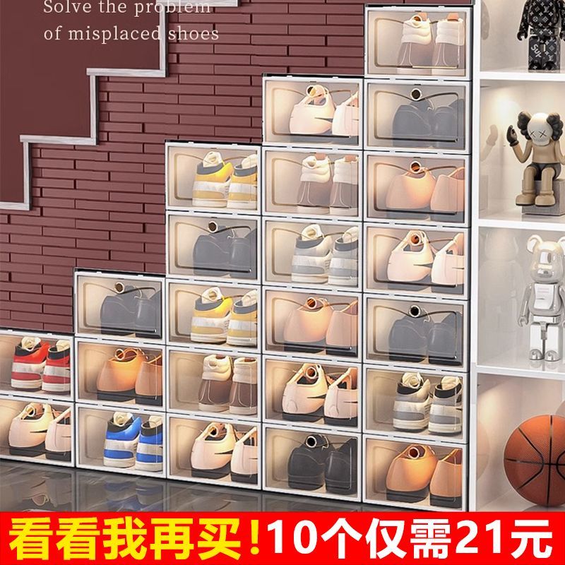 鞋架子出租房鞋盒透明收纳盒鞋柜鞋架门口进门20个装透明鞋盒侧开