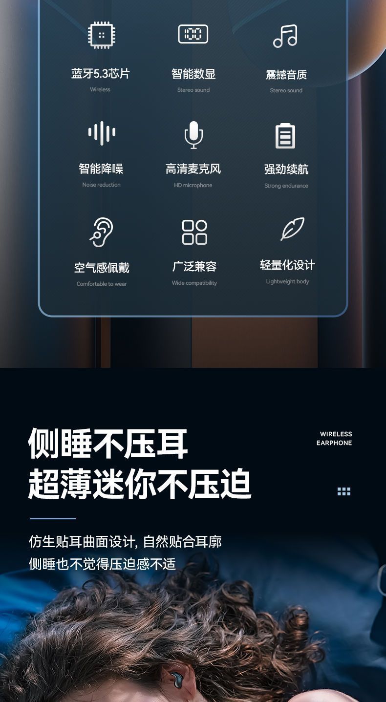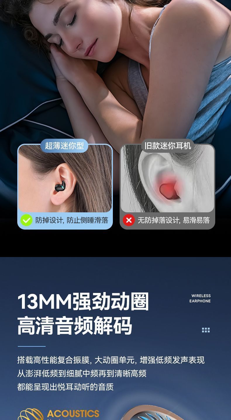 新耳机蓝牙无线超长续航睡眠侧躺舒适通用华为苹果vivo小米OPPO