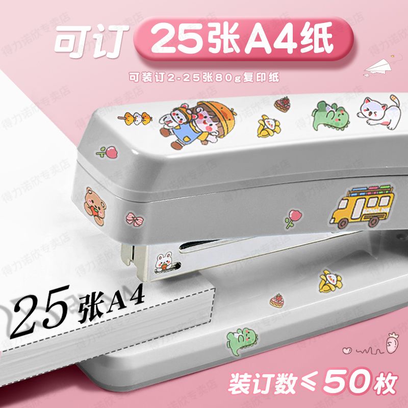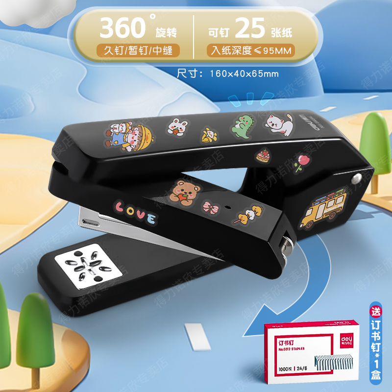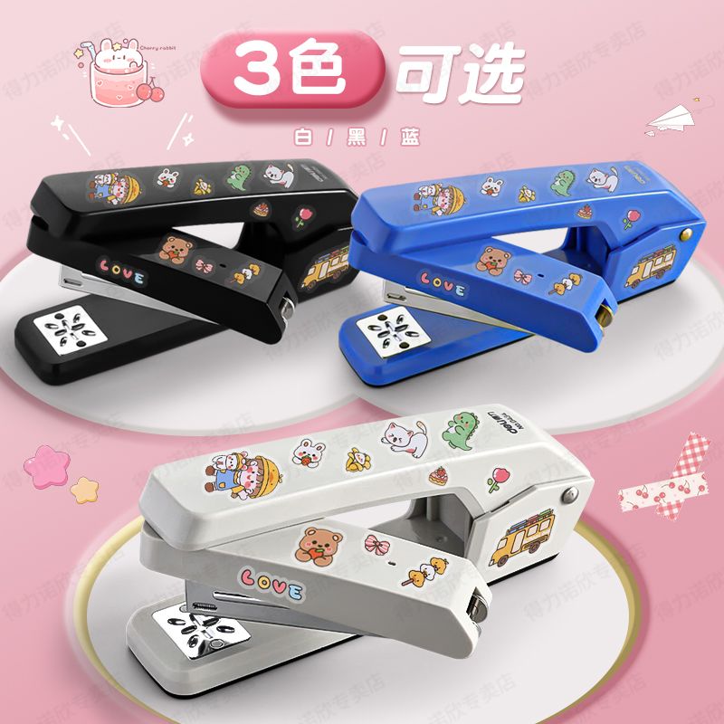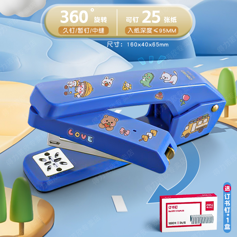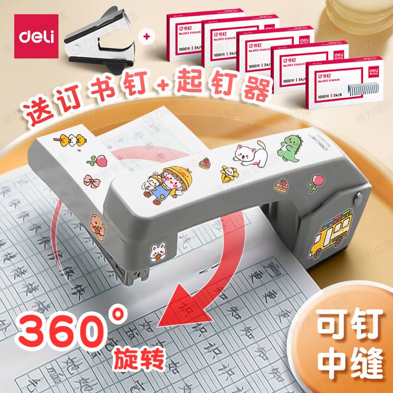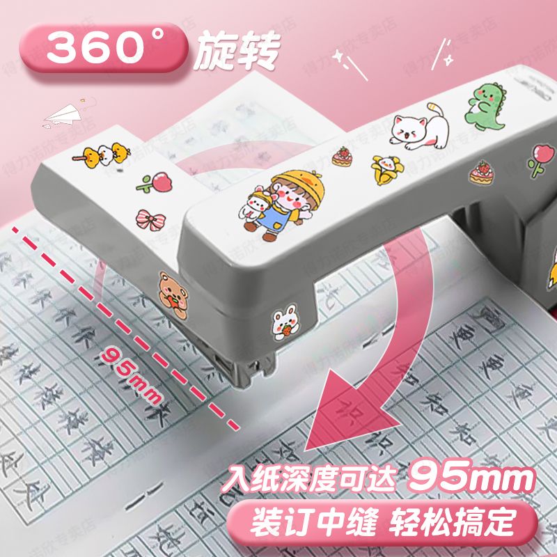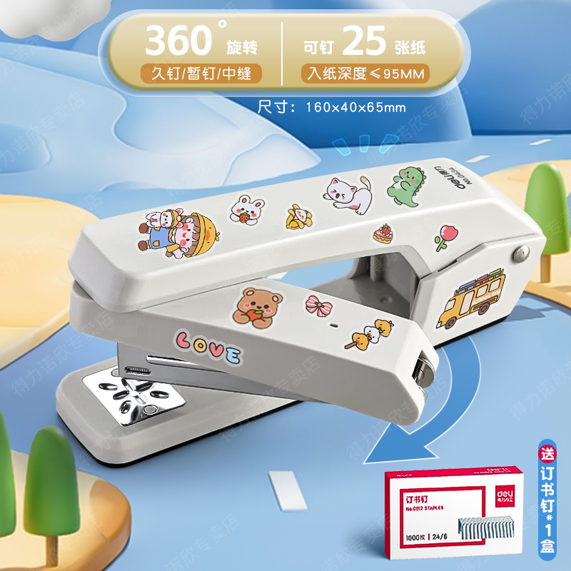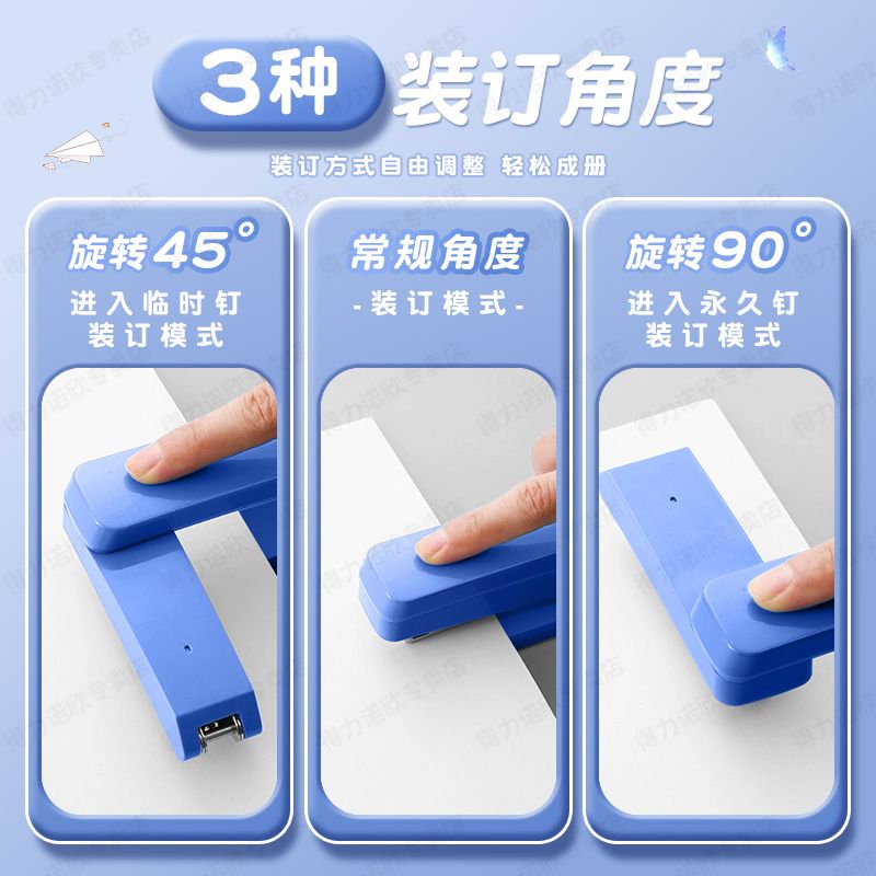 得力订书机可旋转订360度耐用学生专用多功能省力订书订中缝ins风