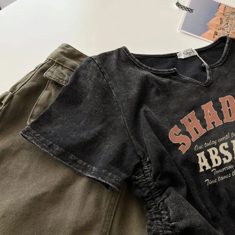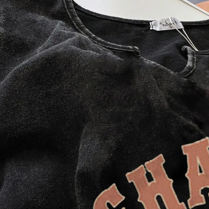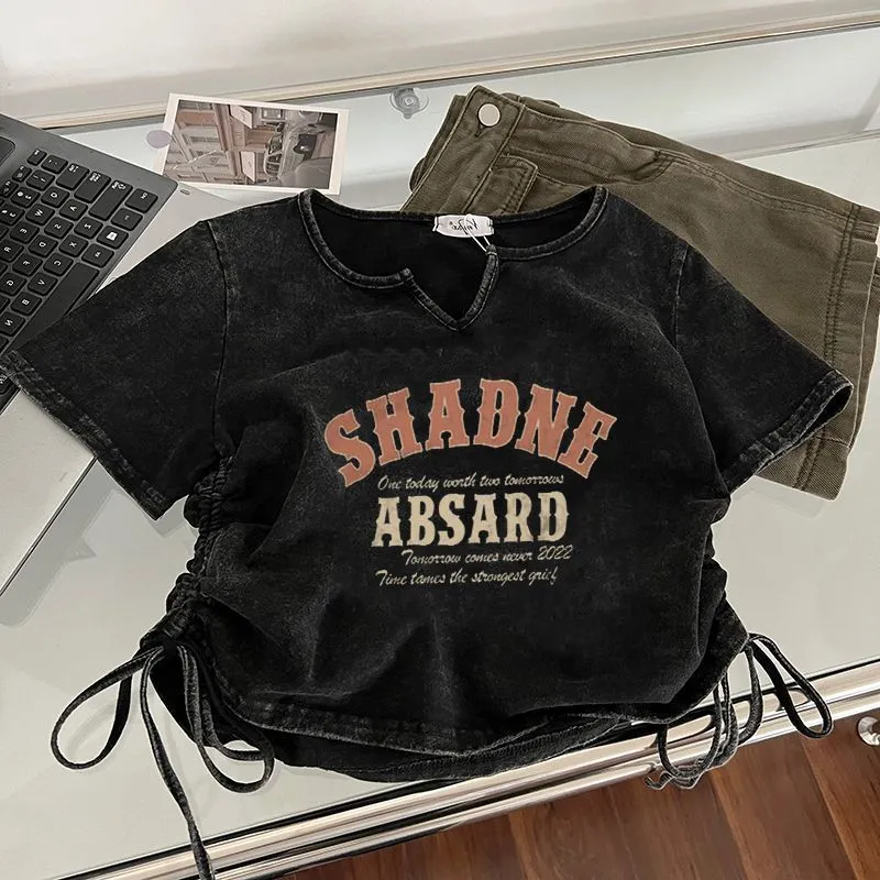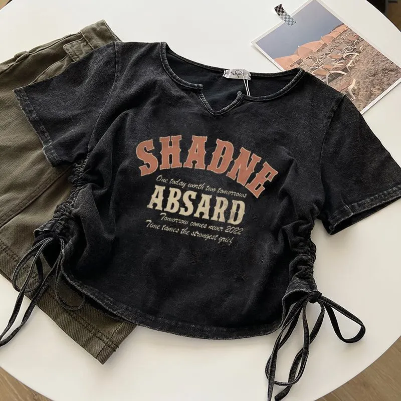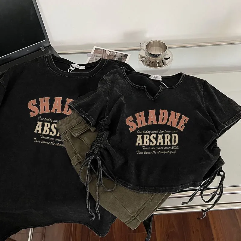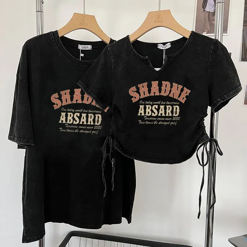 chic超火韩系bf闺蜜情侣装夏男女夏复古水洗做旧甜辣短袖T恤上衣