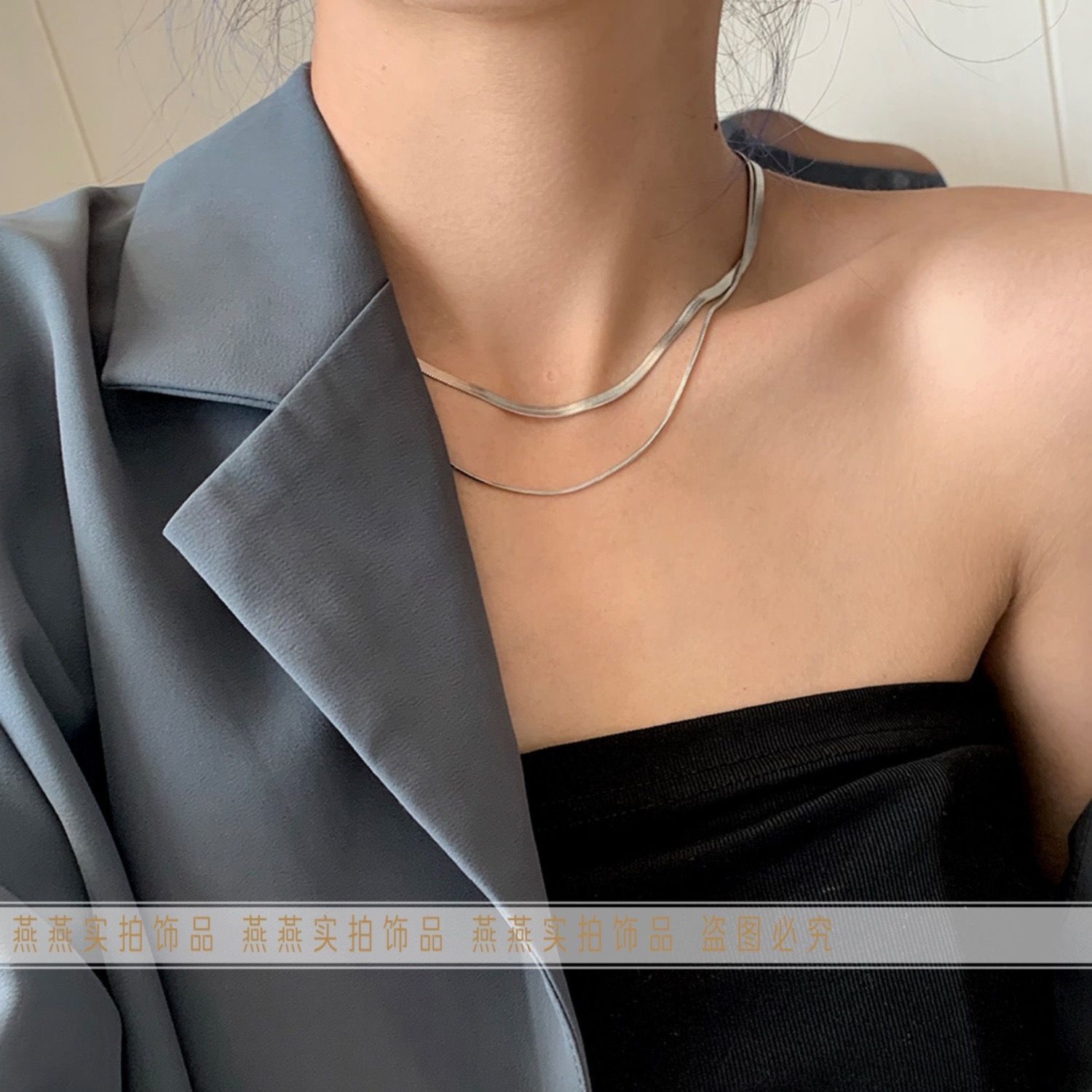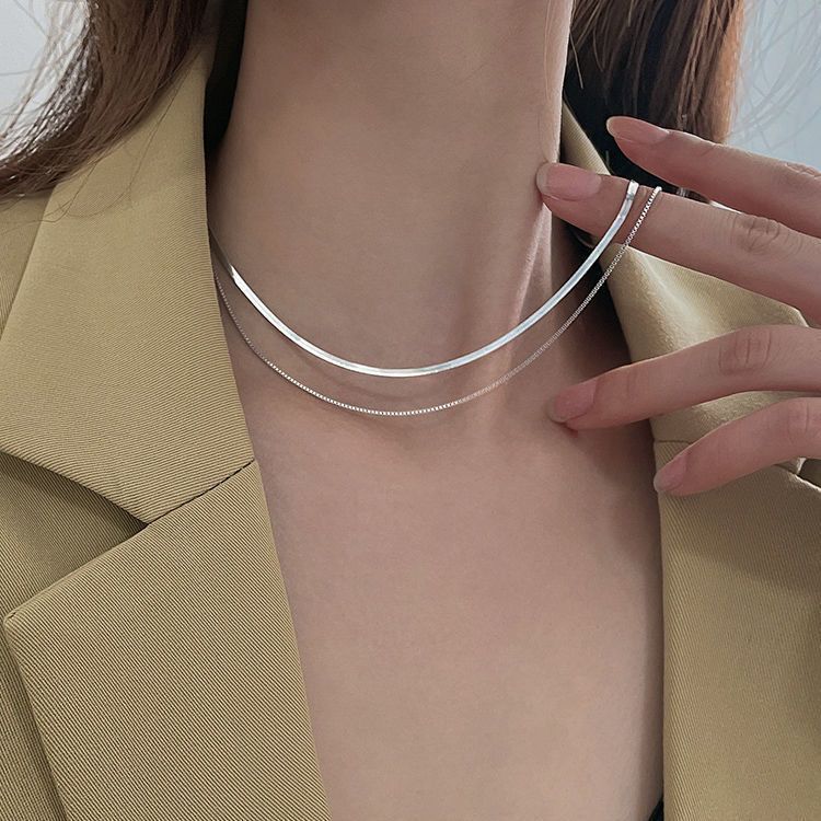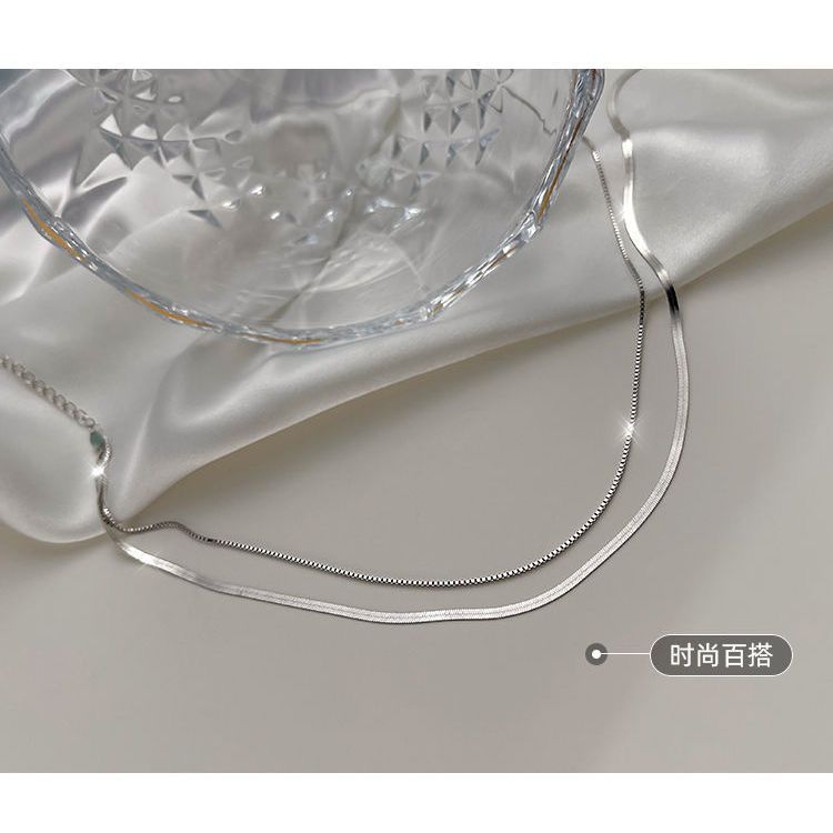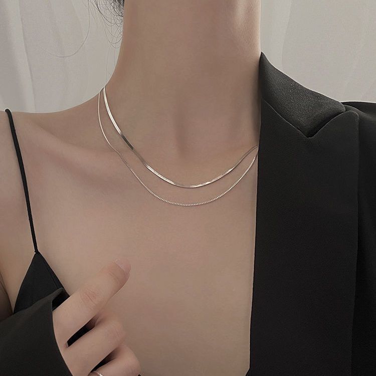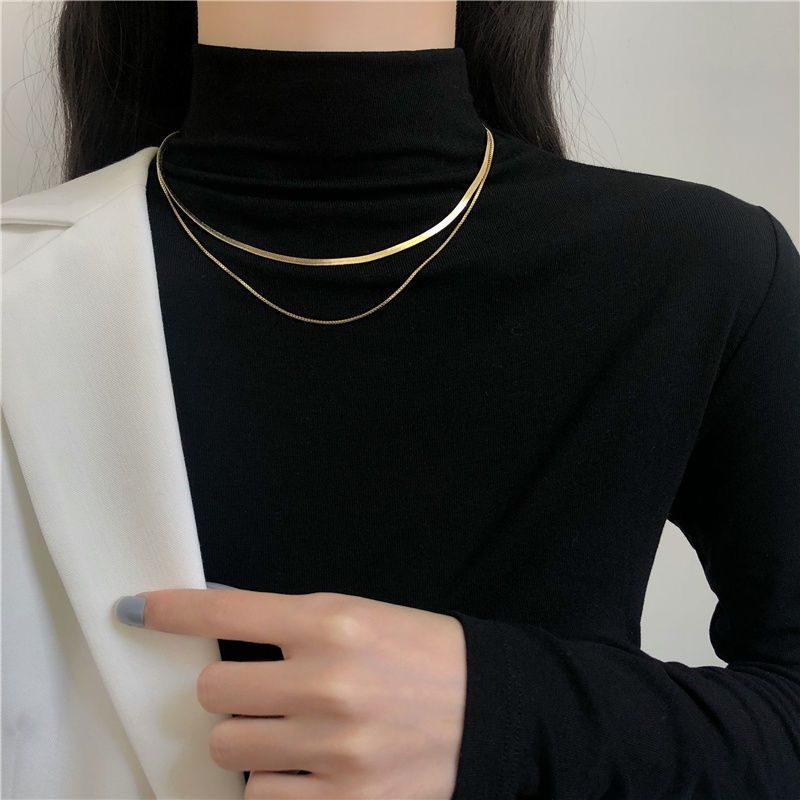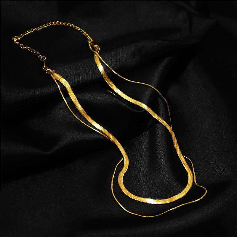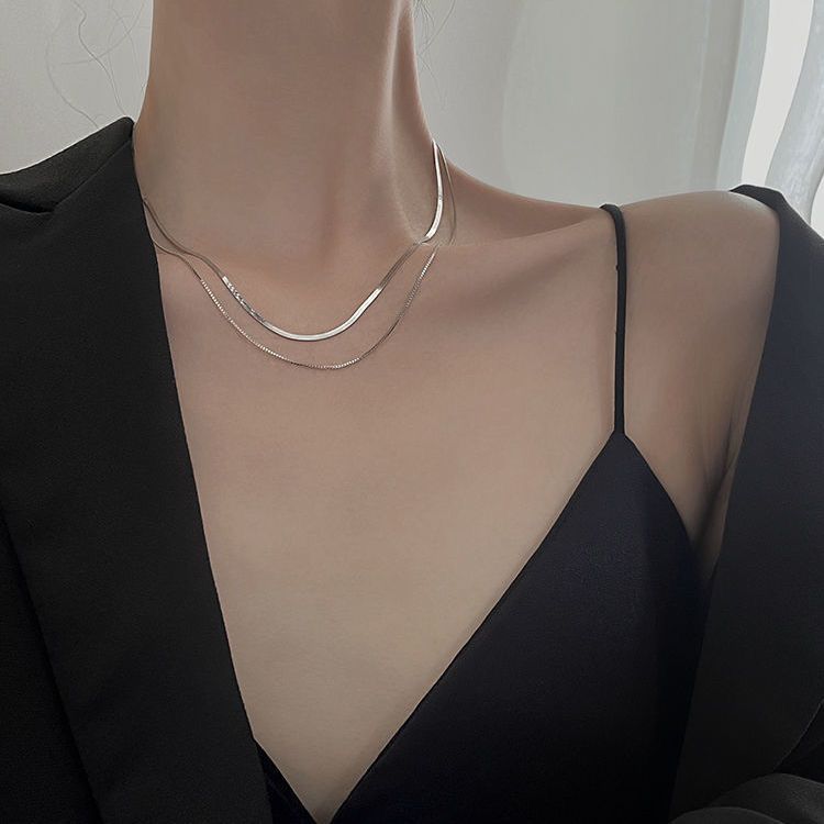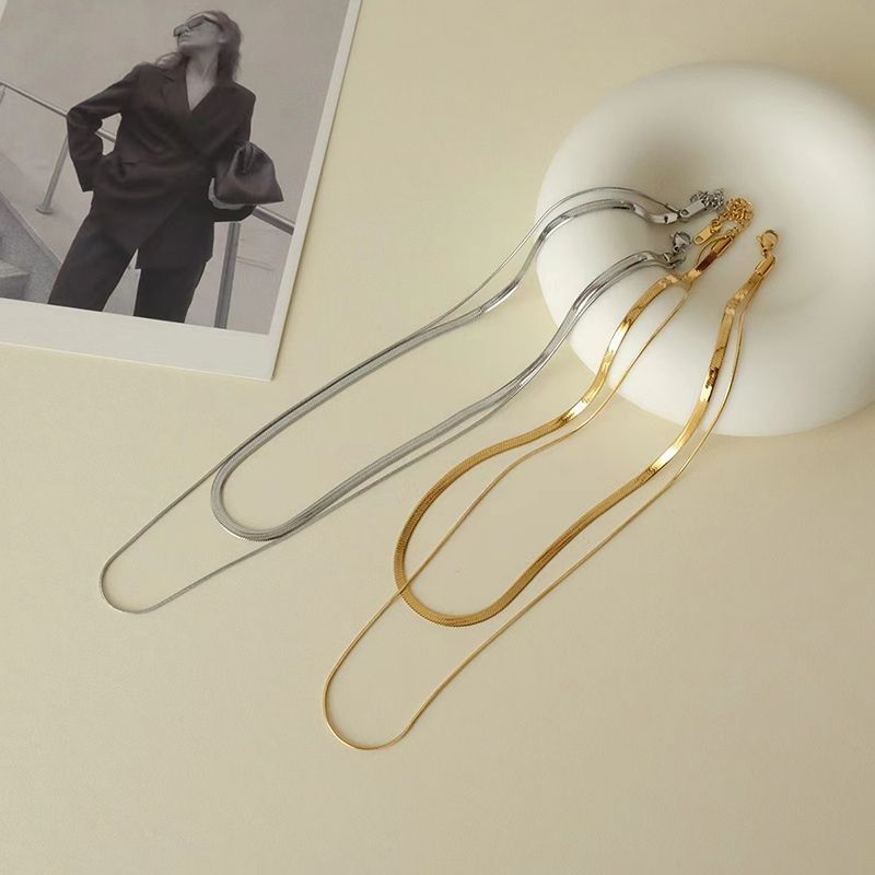 个性嘻哈钛钢双层叠戴项链女ins素链蛇骨链颈链小众设计时尚简约