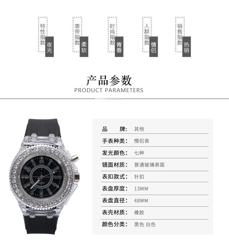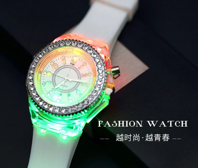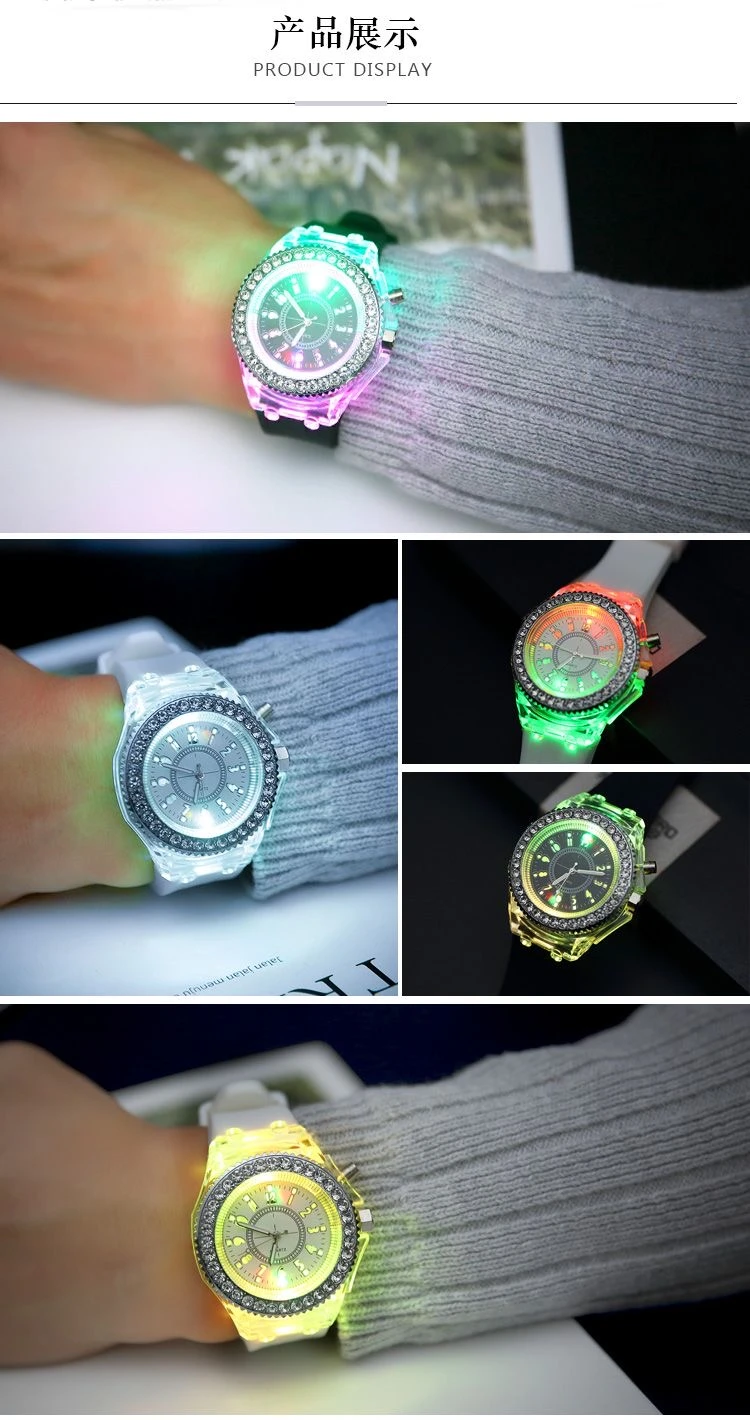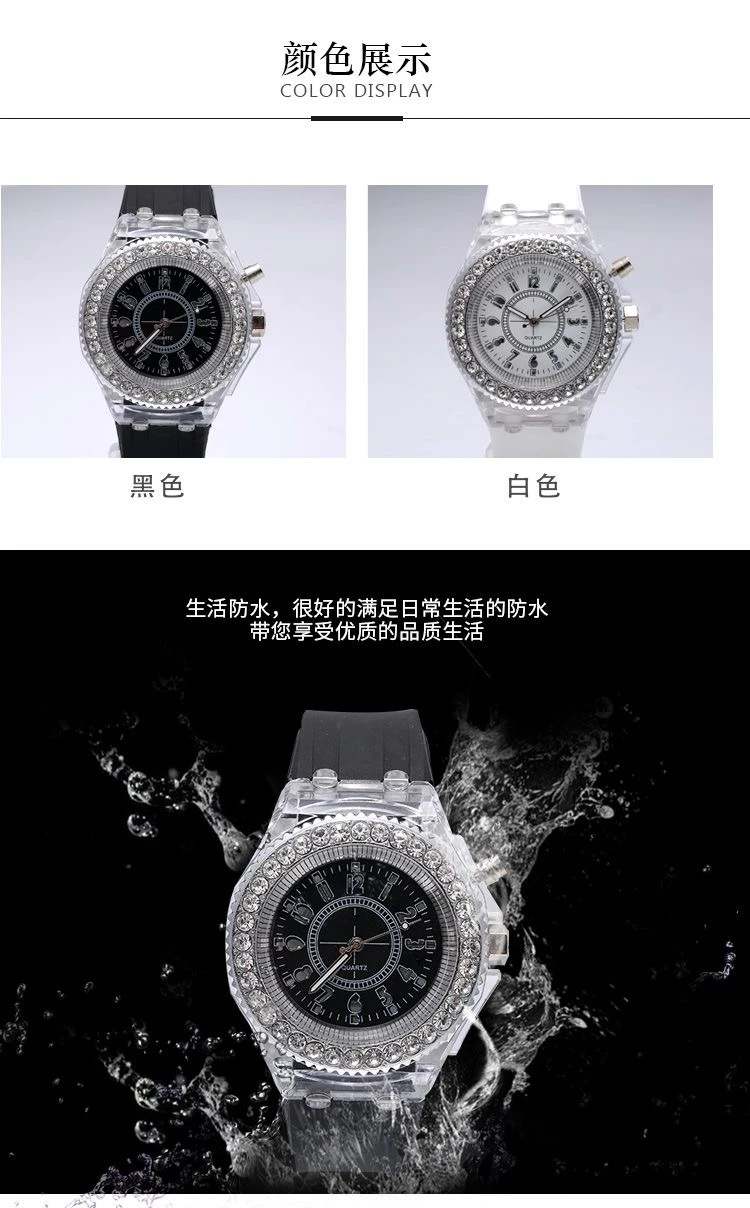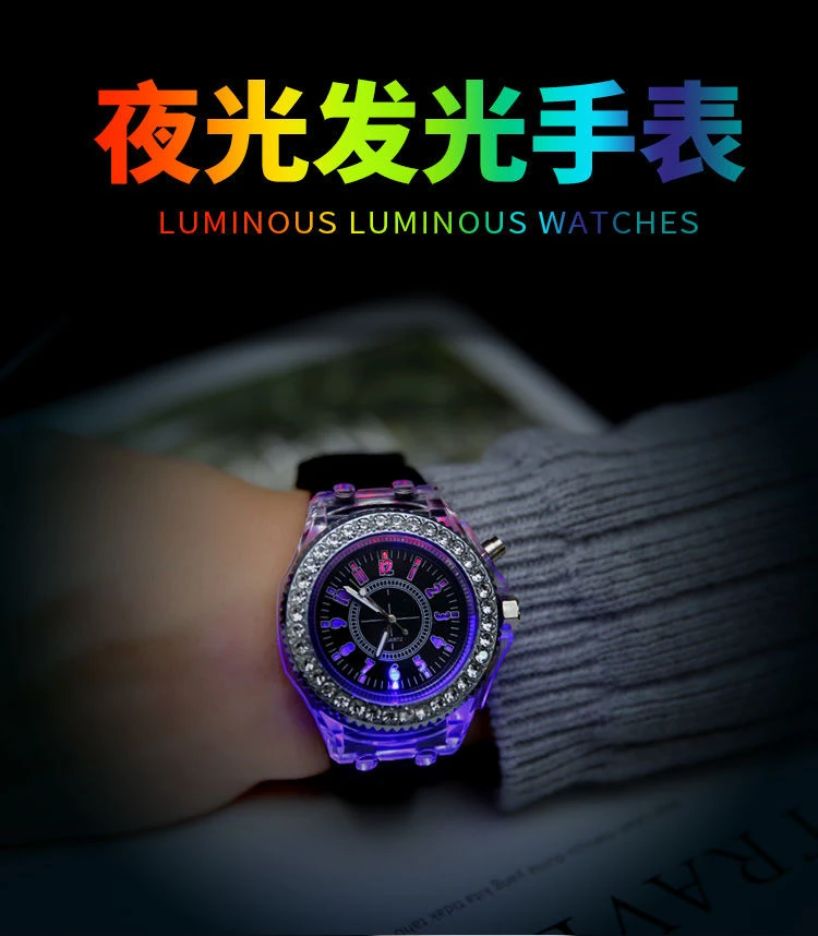 | colorful diamond-encrusted luminous watch + backup battery(七彩镶钻发光表+备用电池) | USD $2.61 | 99999 piece available |