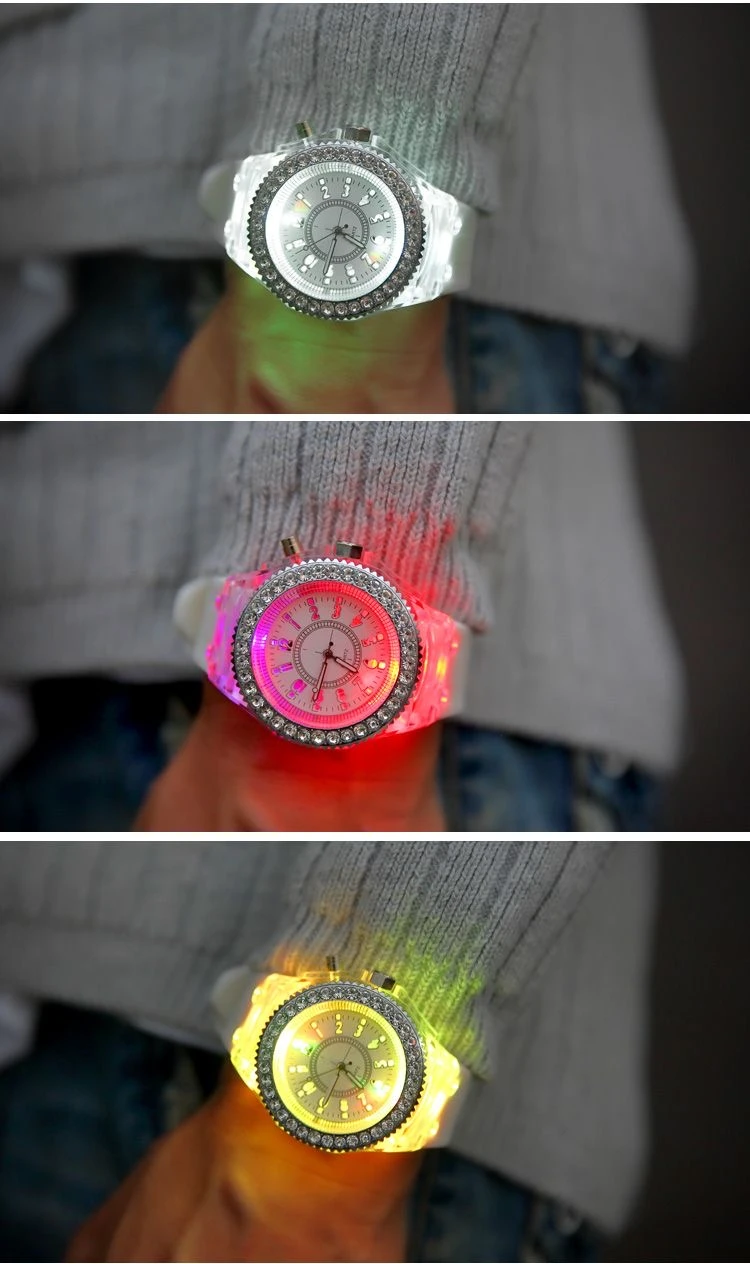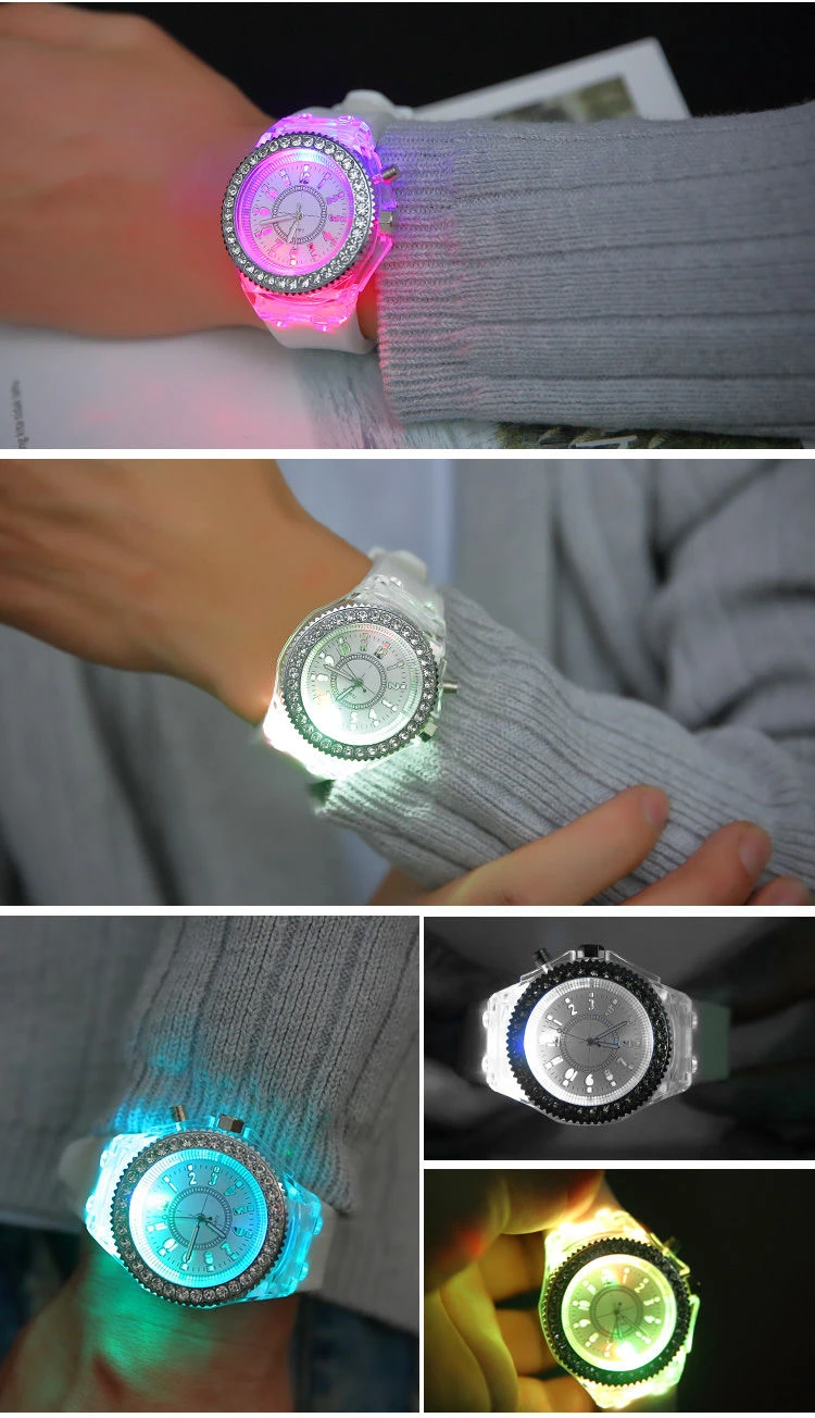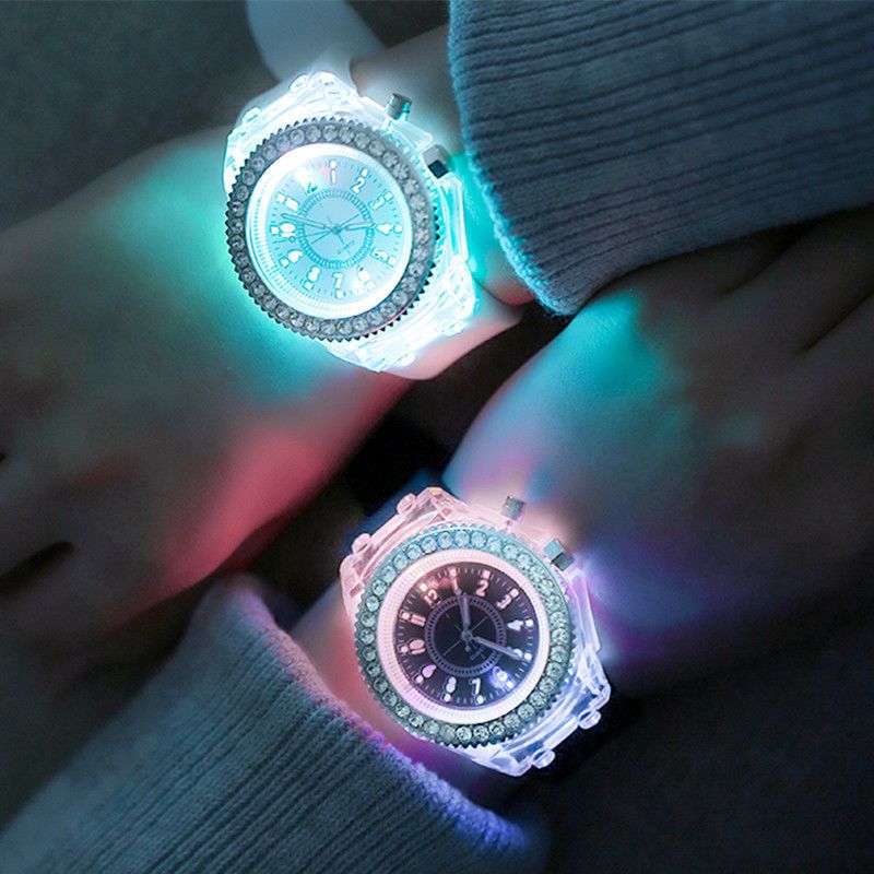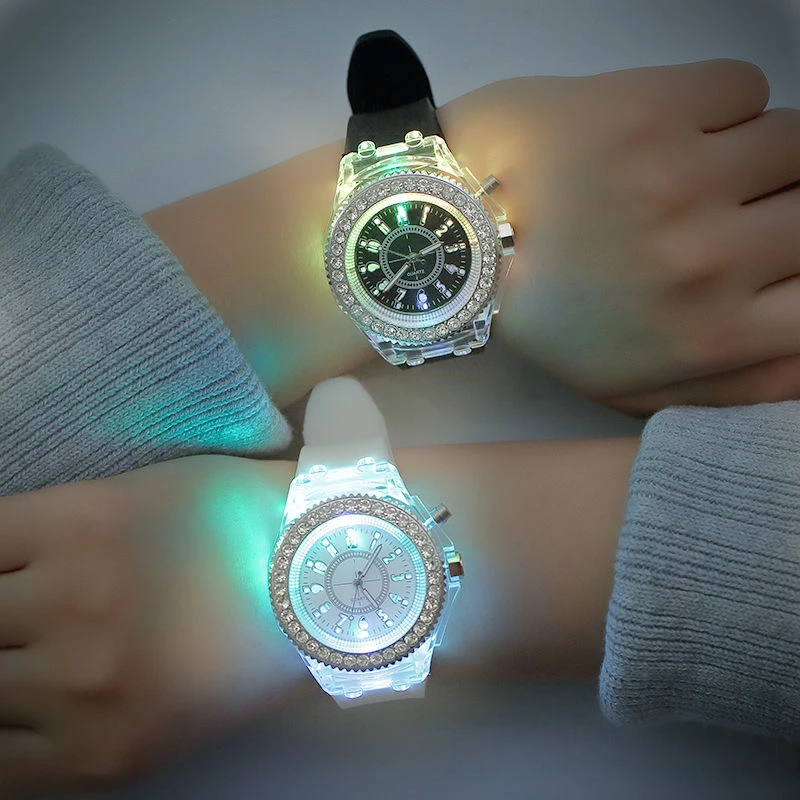 | colorful diamond-encrusted luminous watch + backup battery(七彩镶钻发光表+备用电池) | USD $2.61 | 99999 piece available |