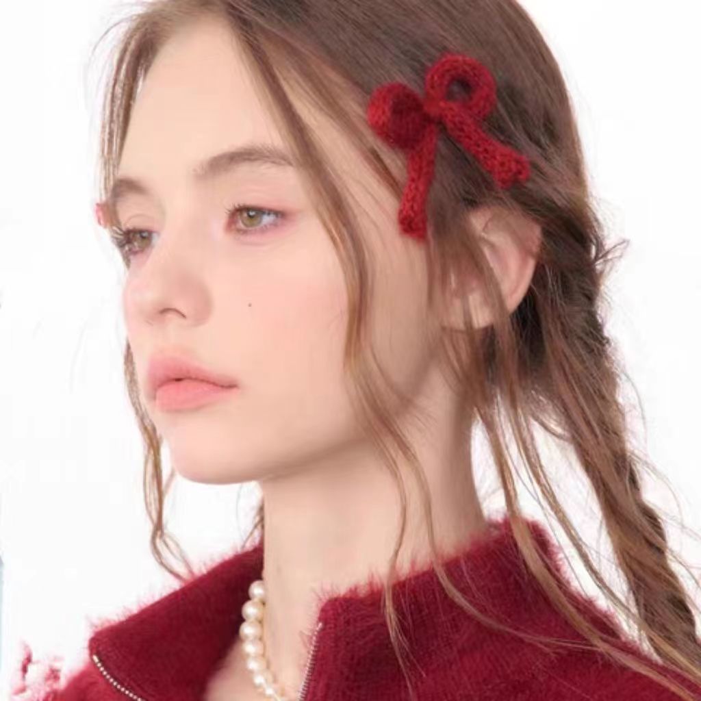 [a pair of red] haima hair bow barrettes(【一对红色】海马毛蝴蝶结发夹) USD $1.16 99999 piece available