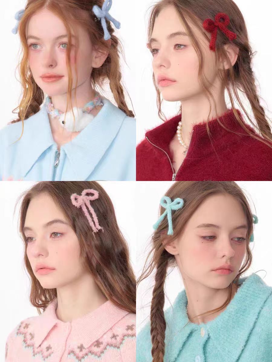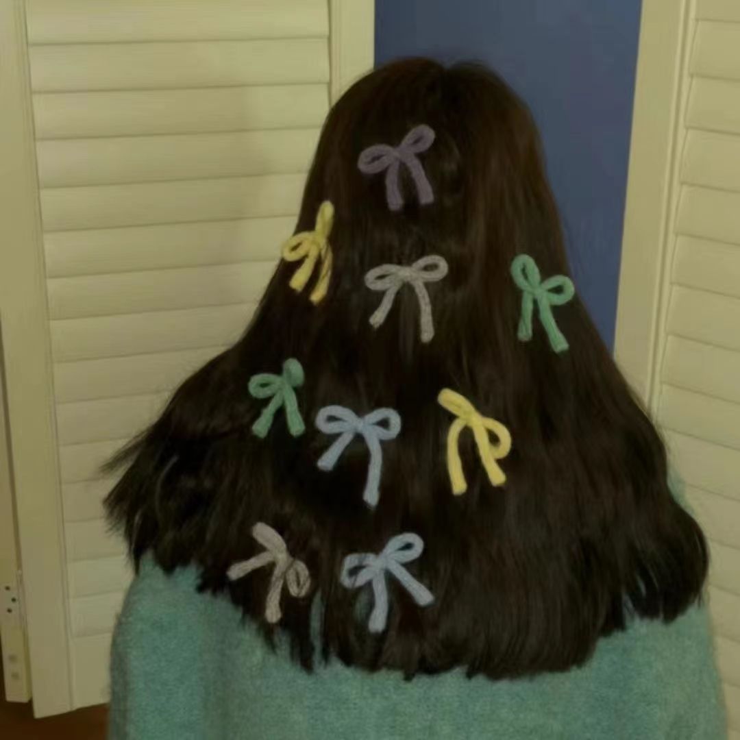 纯手工蝴蝶结发夹ins海马毛蝴蝶结刘海夹 彩色蝴蝶结