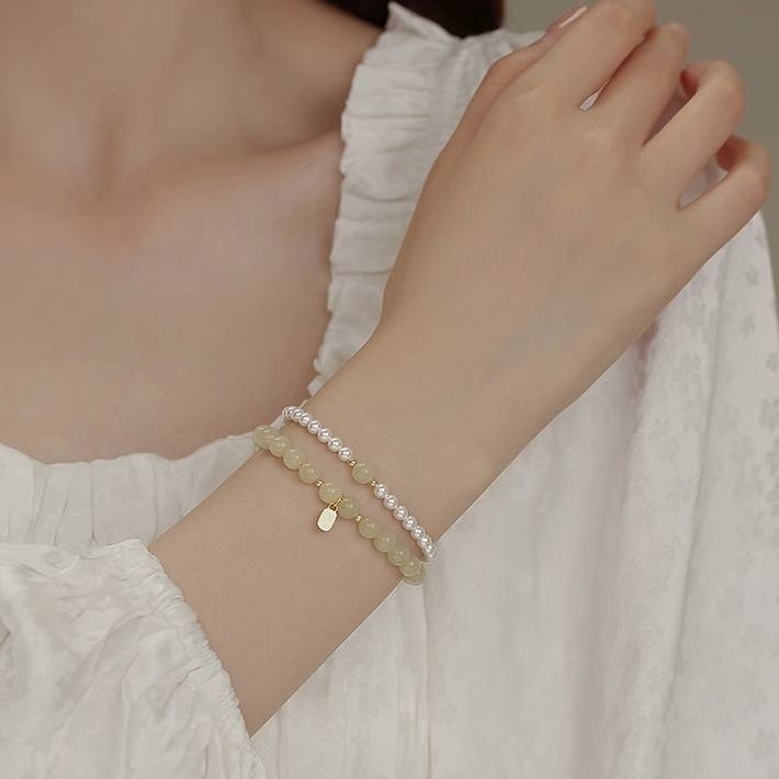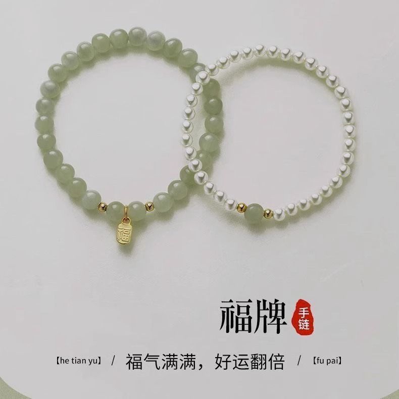 福牌手串国风珍珠手链女串珠新中式叠戴手饰2024新款小众精致礼物