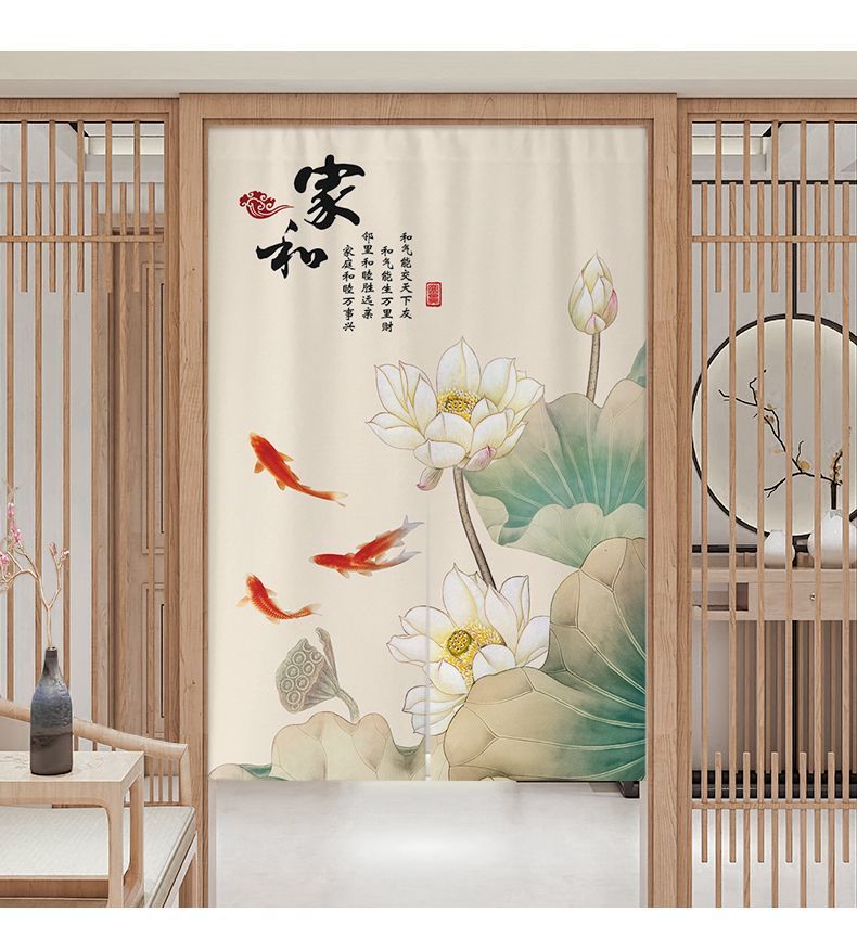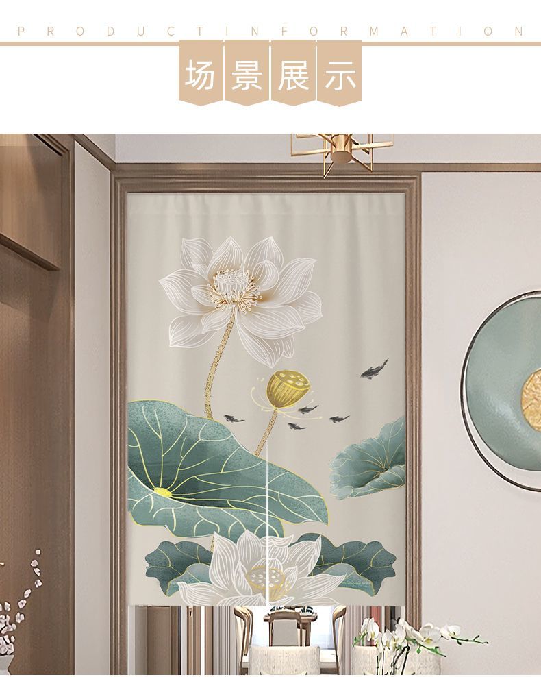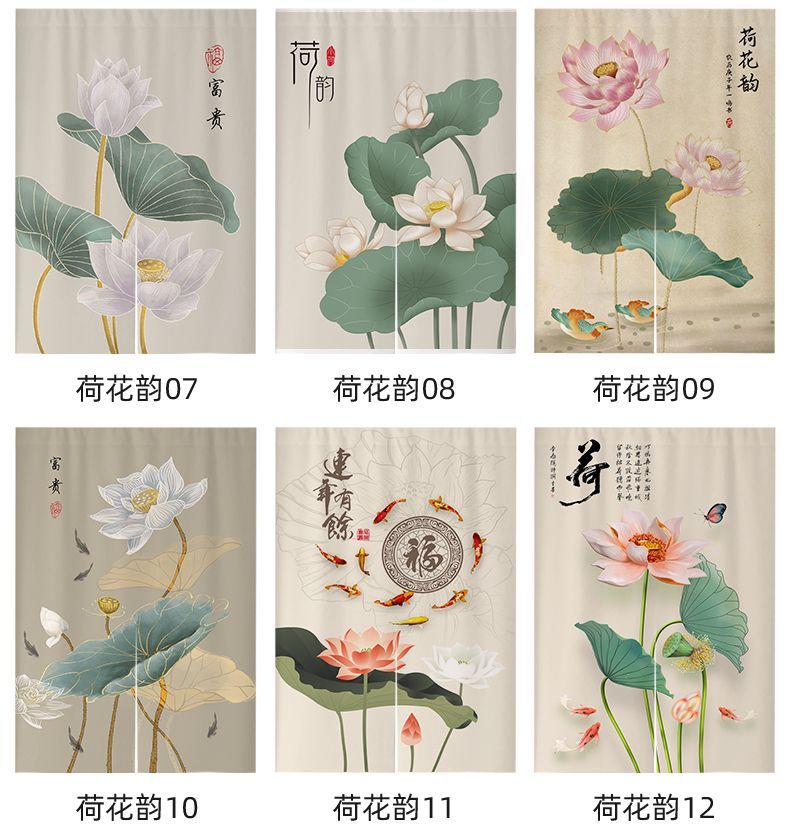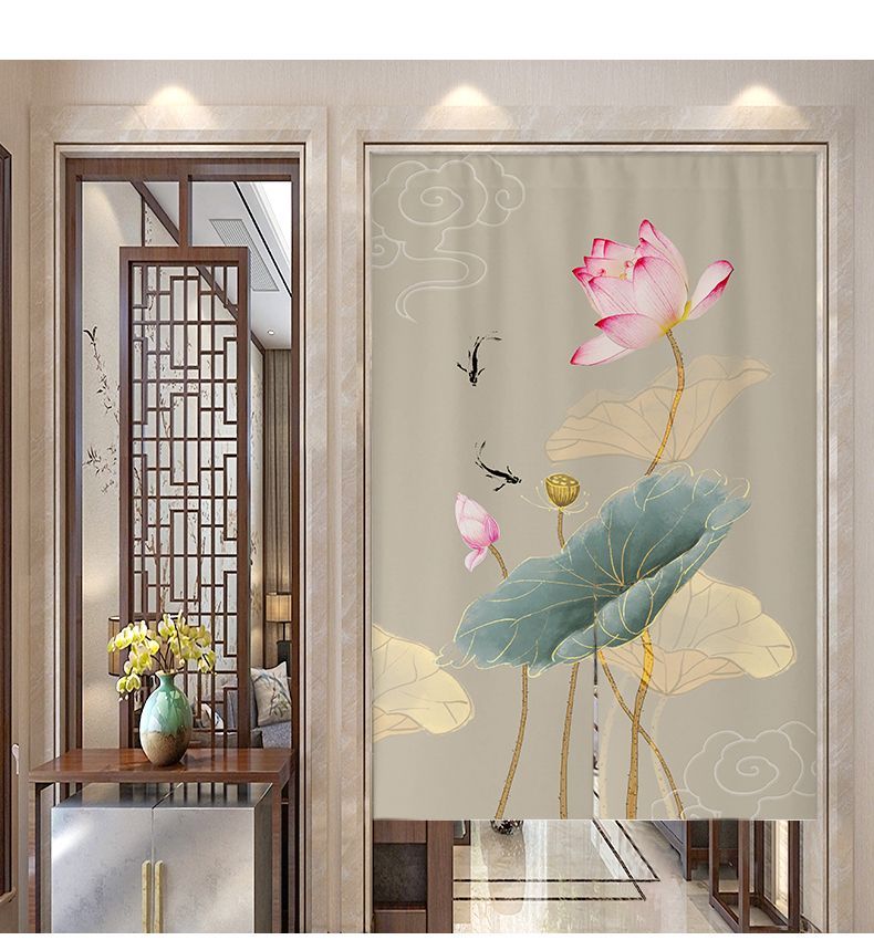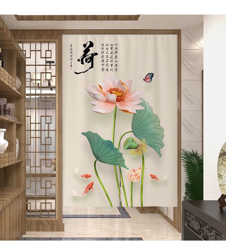 中式荷花门帘布帘卧室厕所门对门化解挂帘大门厨房卫生间隔断半帘