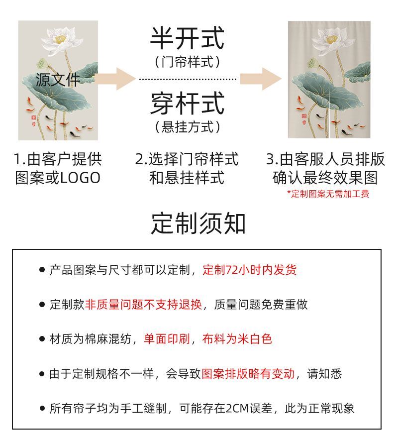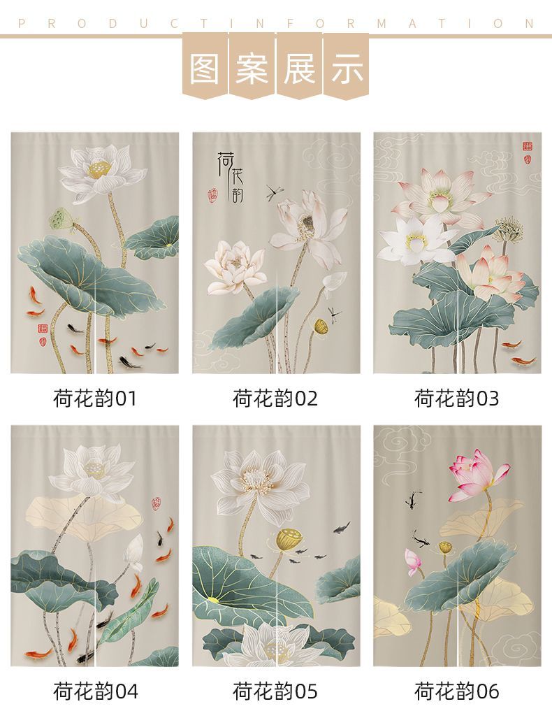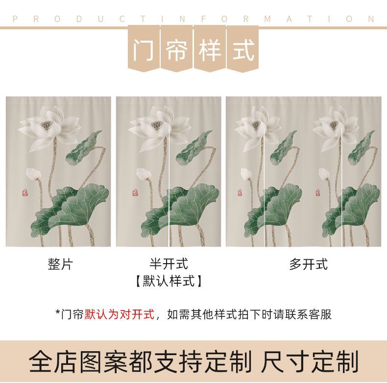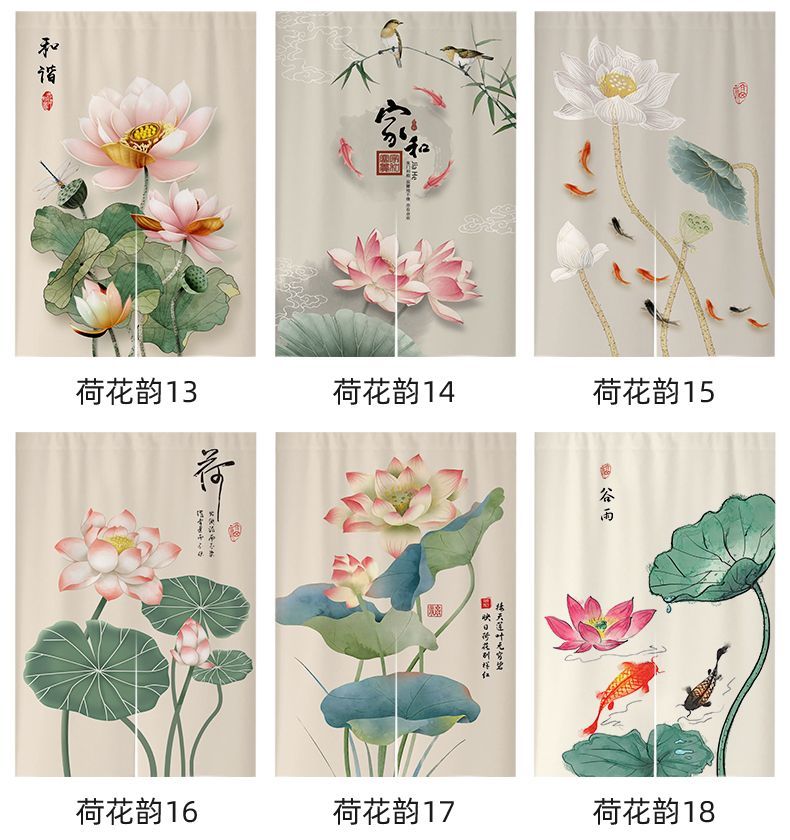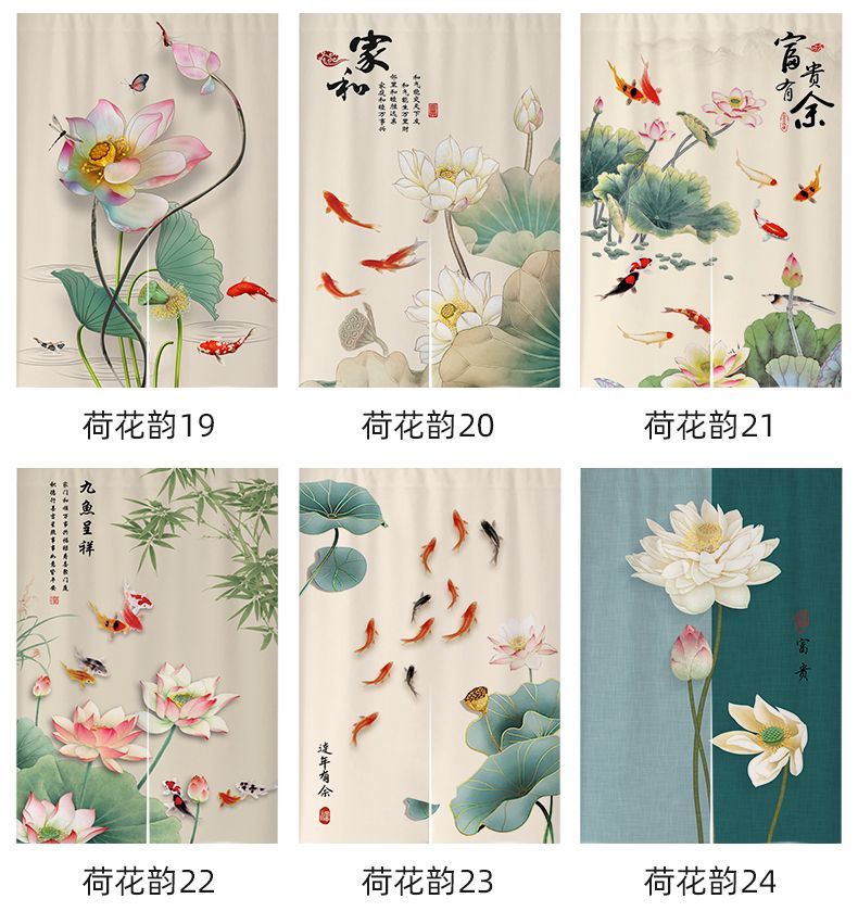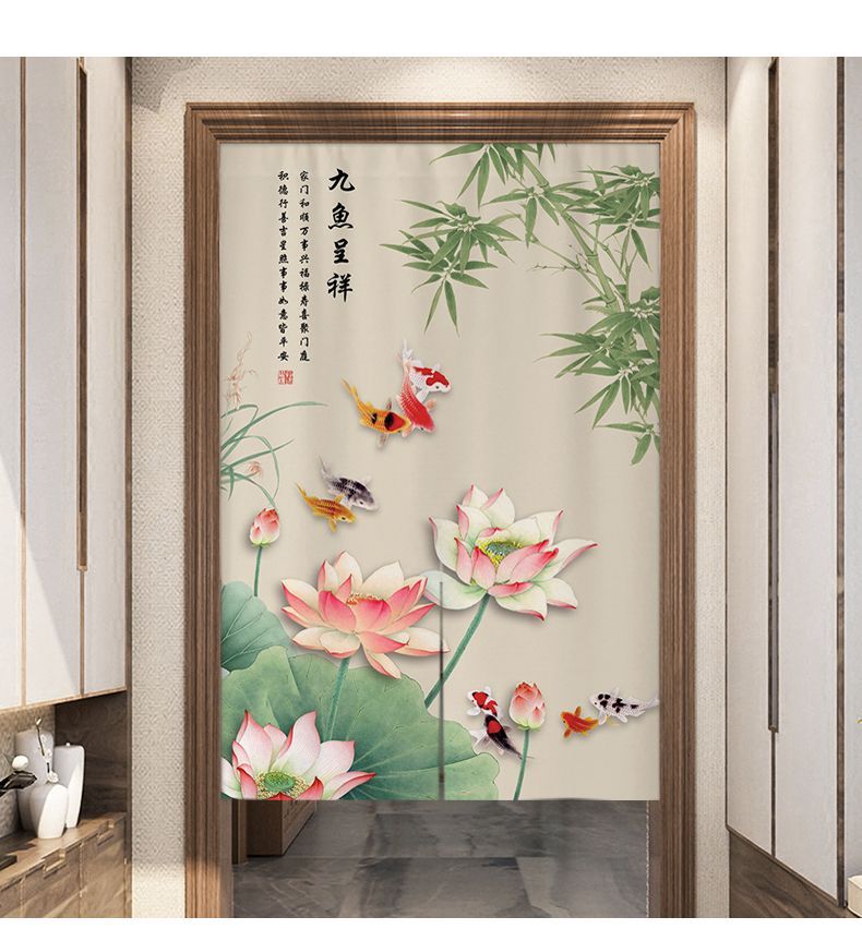 中式荷花门帘布帘卧室厕所门对门化解挂帘大门厨房卫生间隔断半帘