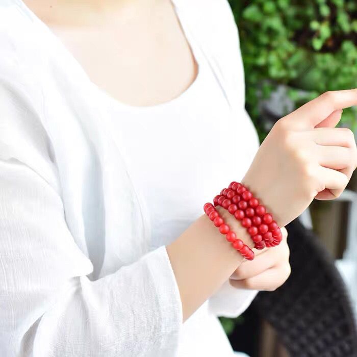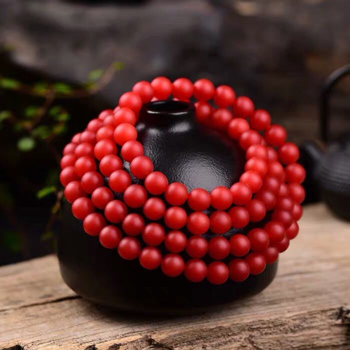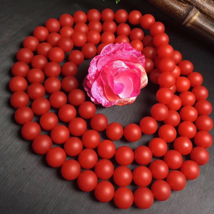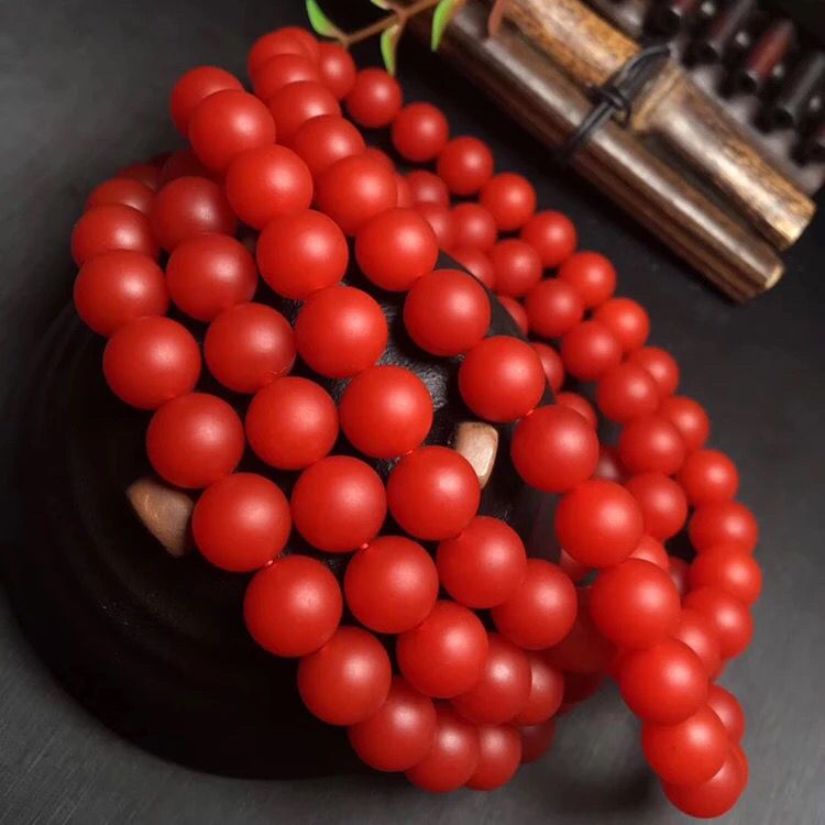 云南保山满红满色108颗手链多圈佛珠手串锦红男女通用圆珠