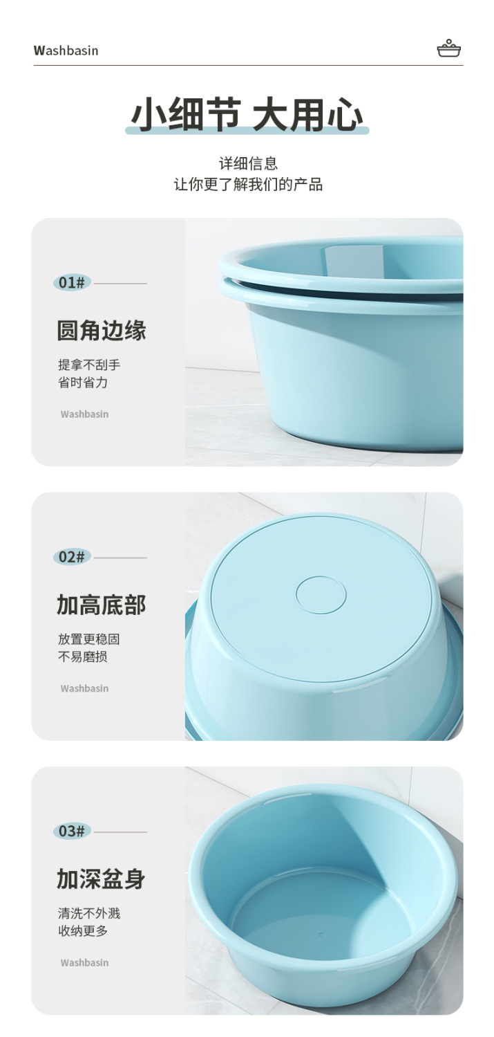 加厚加深三件套洗脸盆家用学生宿舍塑料大号洗衣洗脚盆圆形洗菜盆