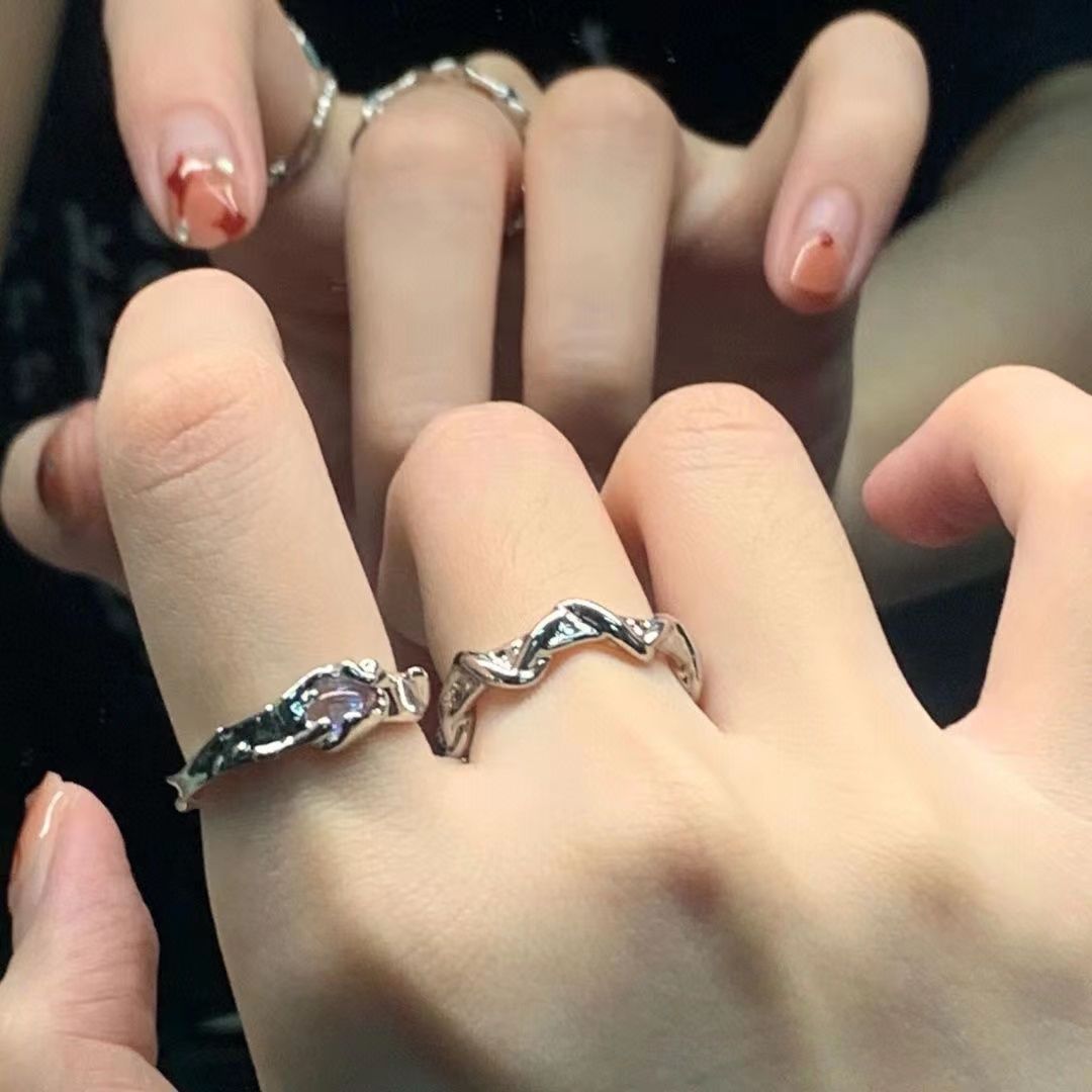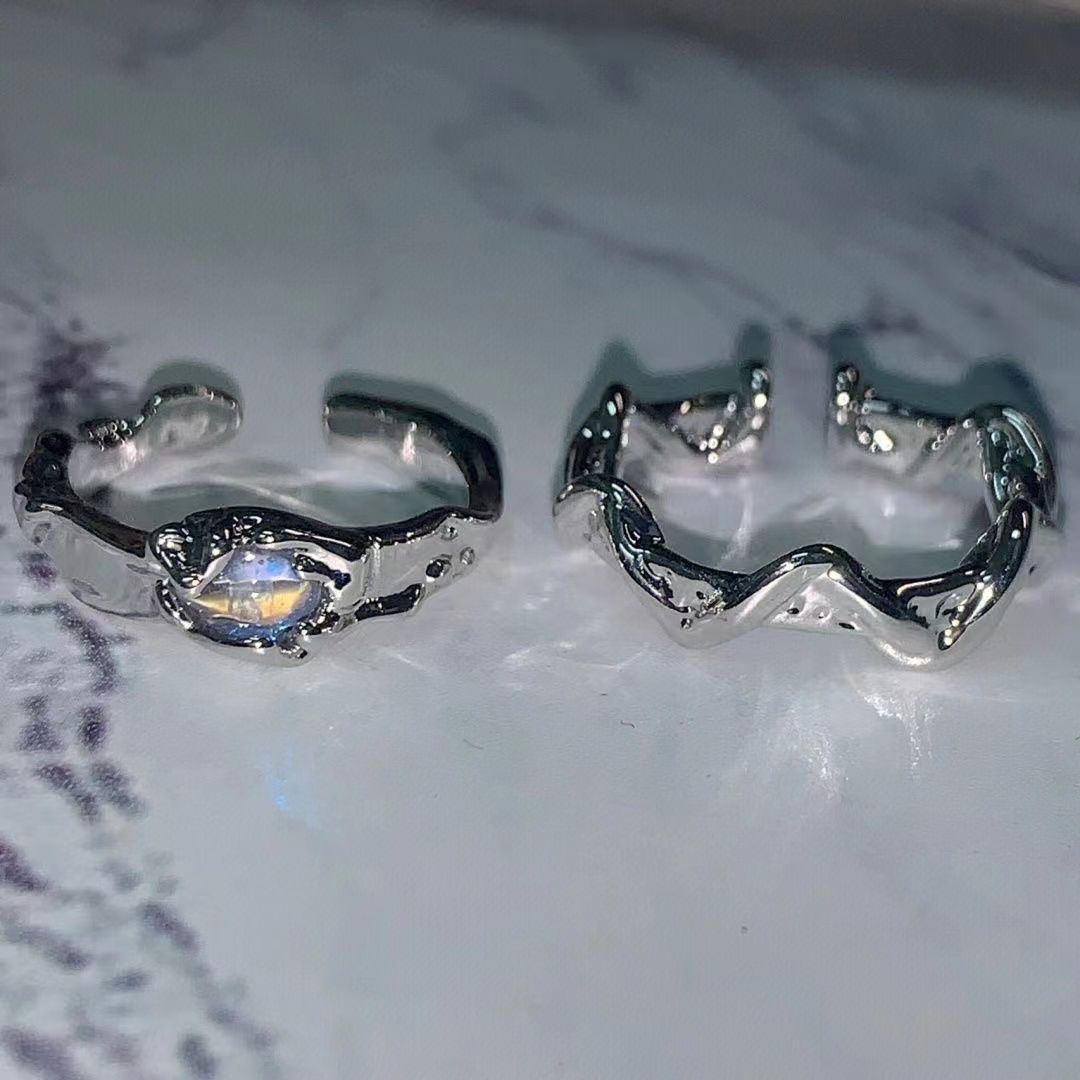 zoozmini两件套~月光石不规则戒指波浪几何指环百搭开口调节对戒