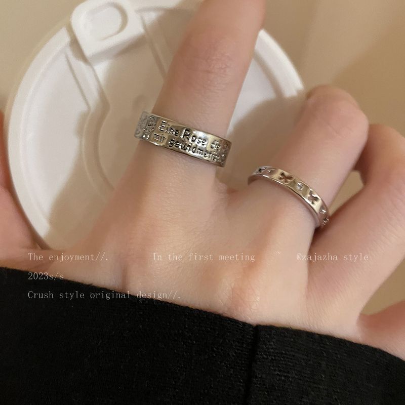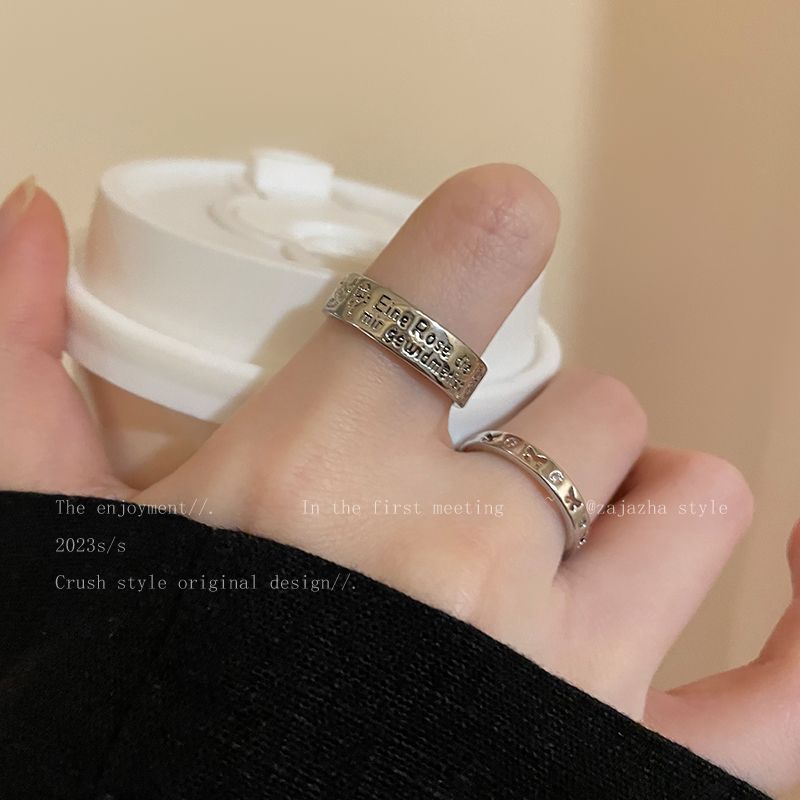 冷淡风蝴蝶素圈开口戒指女2023年新款情侣闺蜜指环时尚个性食指戒