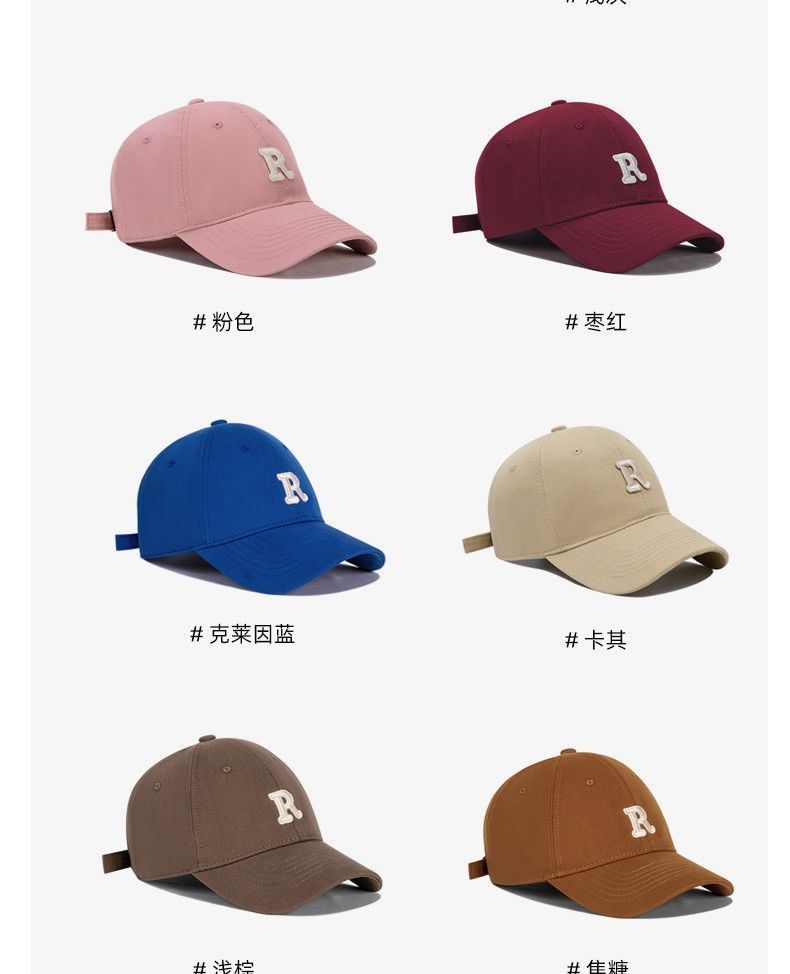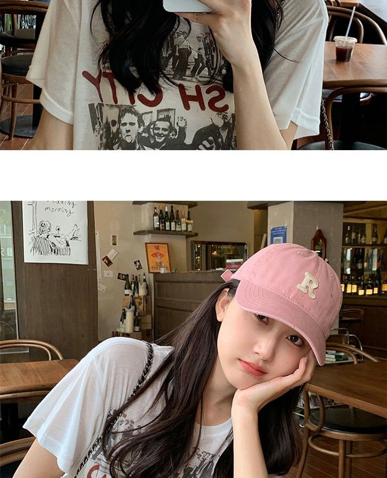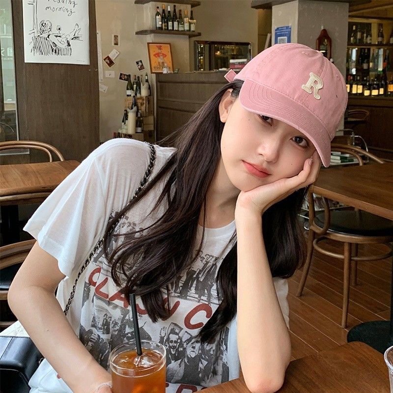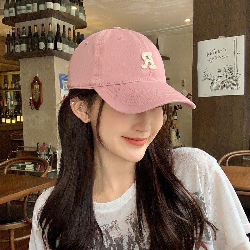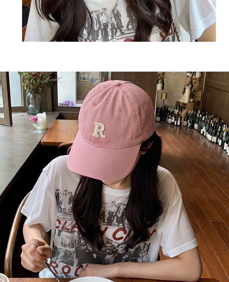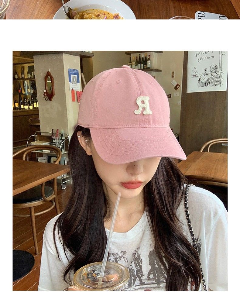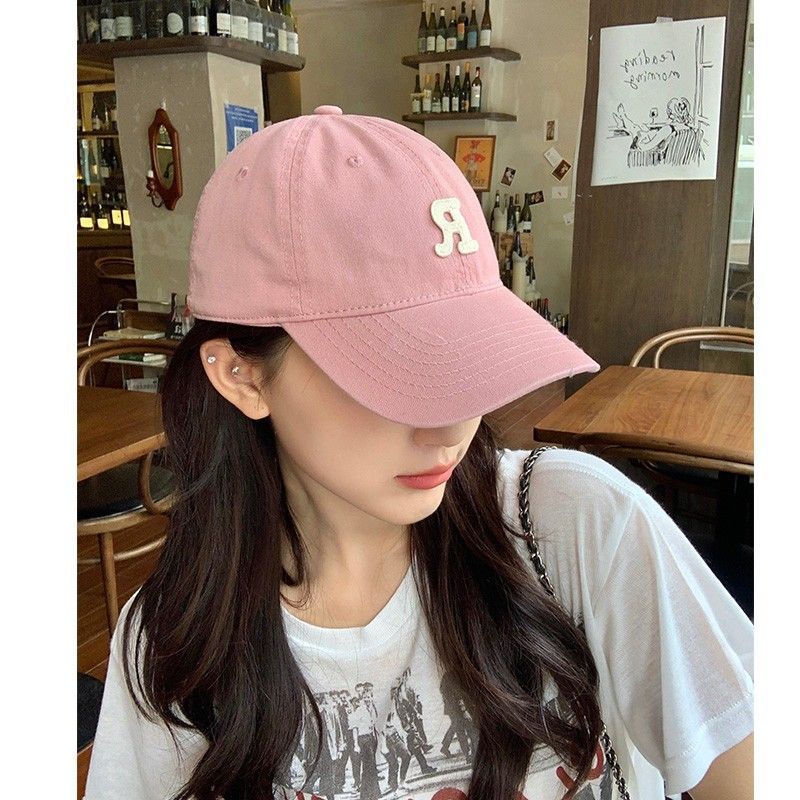 夏季时尚百搭字母R大头围粉色棒球帽子女2023显脸小软顶鸭舌帽潮