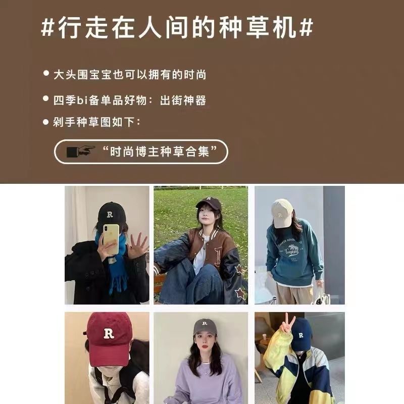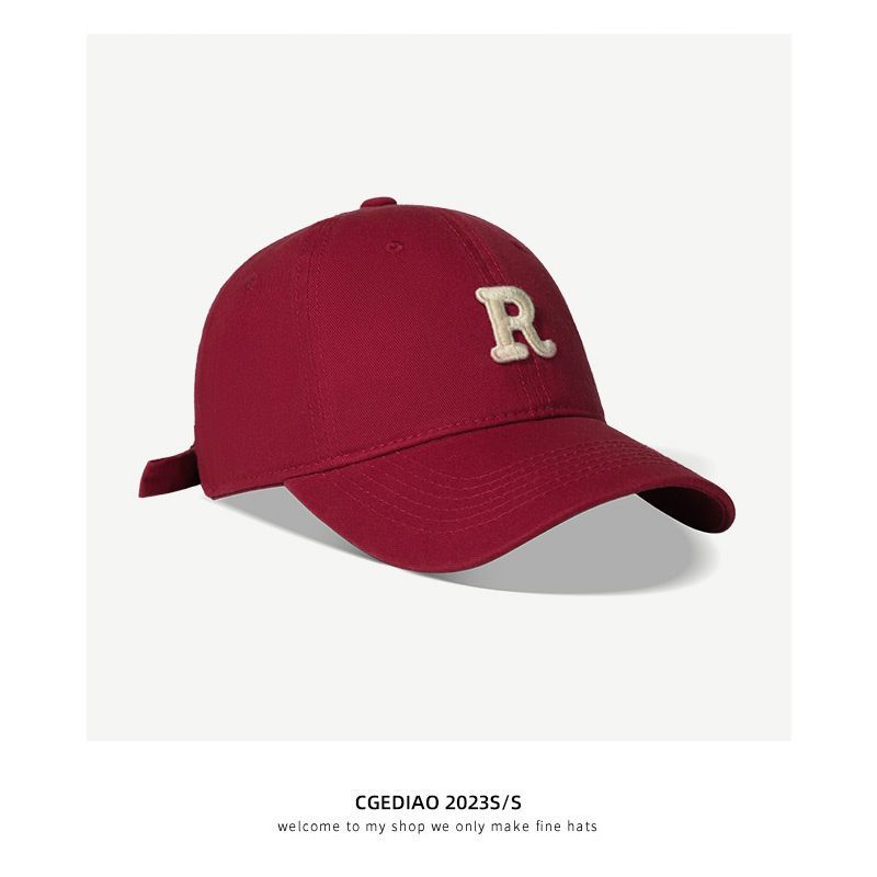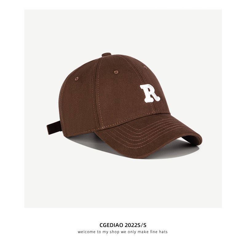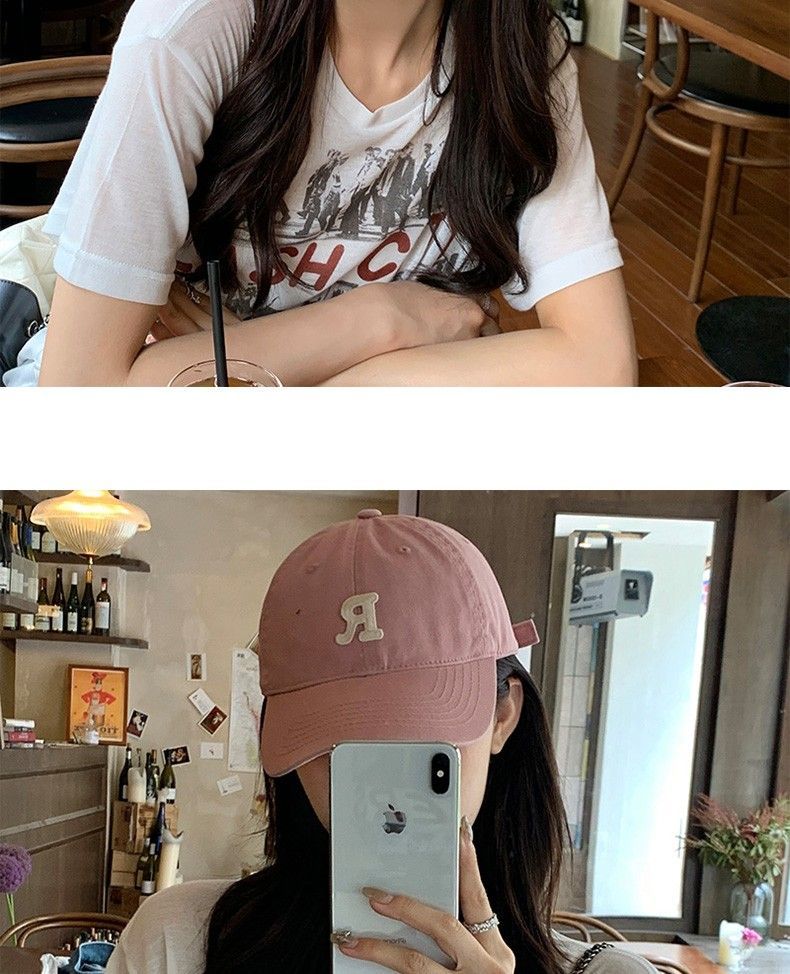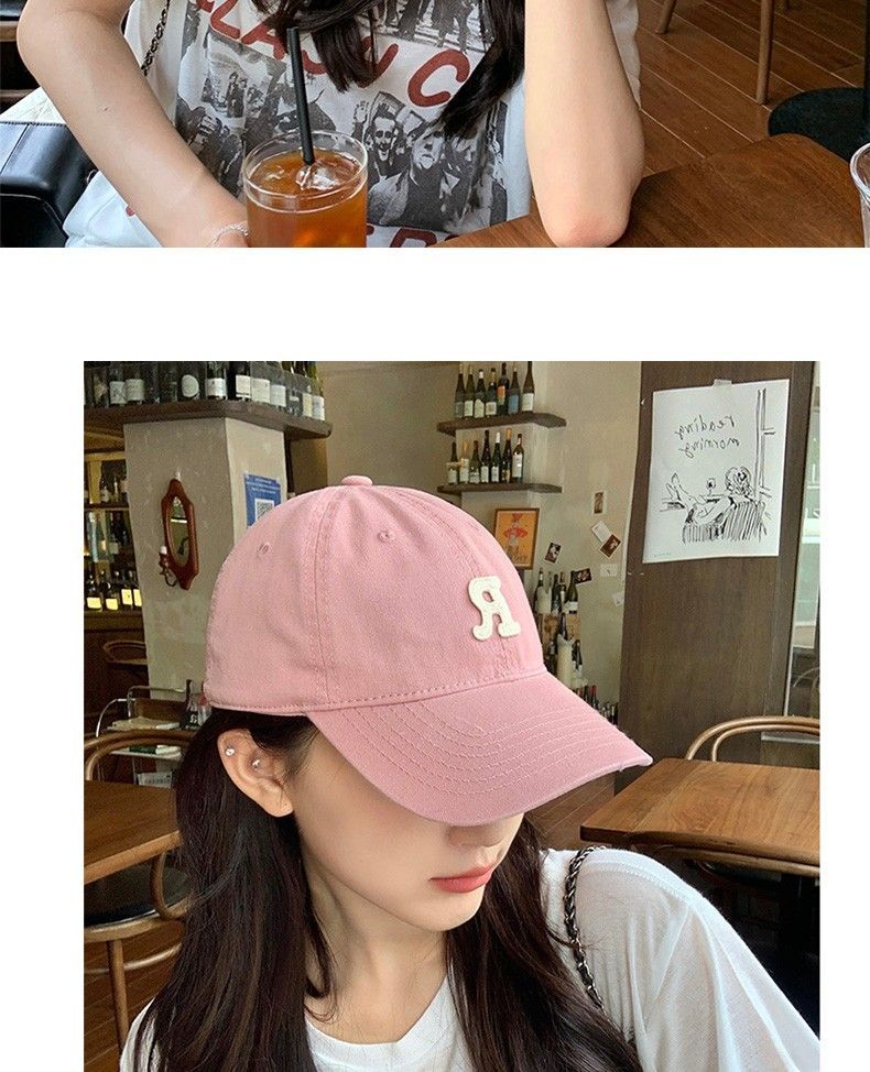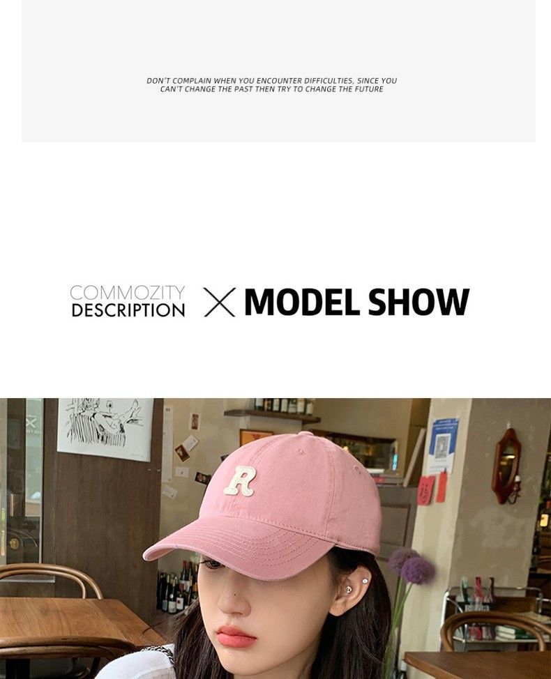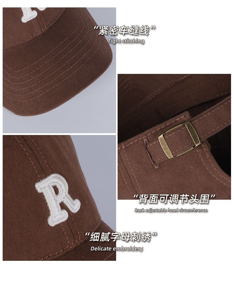 夏季时尚百搭字母R大头围粉色棒球帽子女2023显脸小软顶鸭舌帽潮