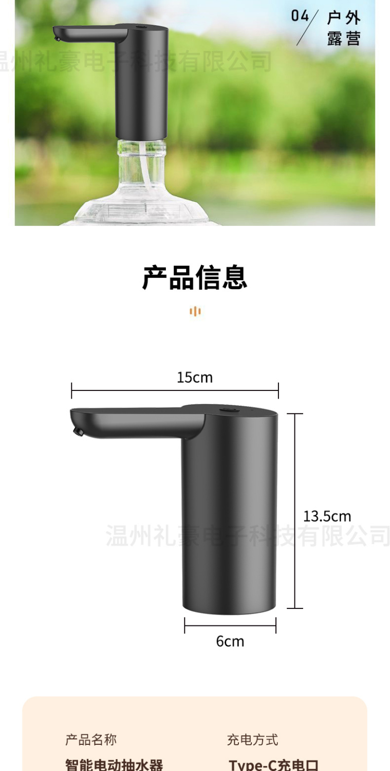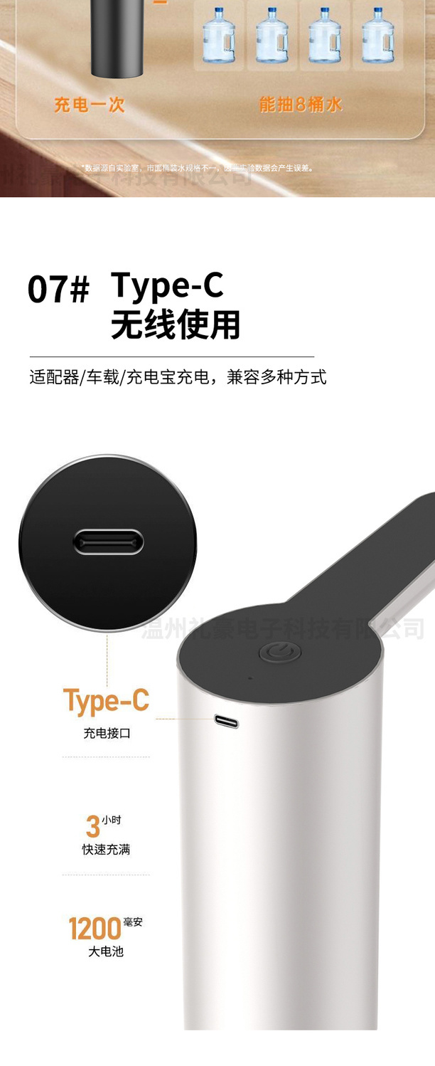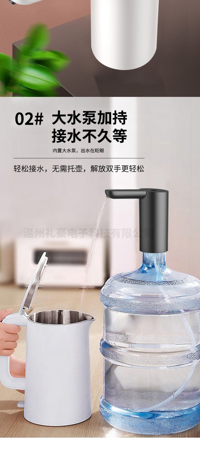 静音出水电动抽水器充电式桶装水大小桶通用自动抽水泵压水神器